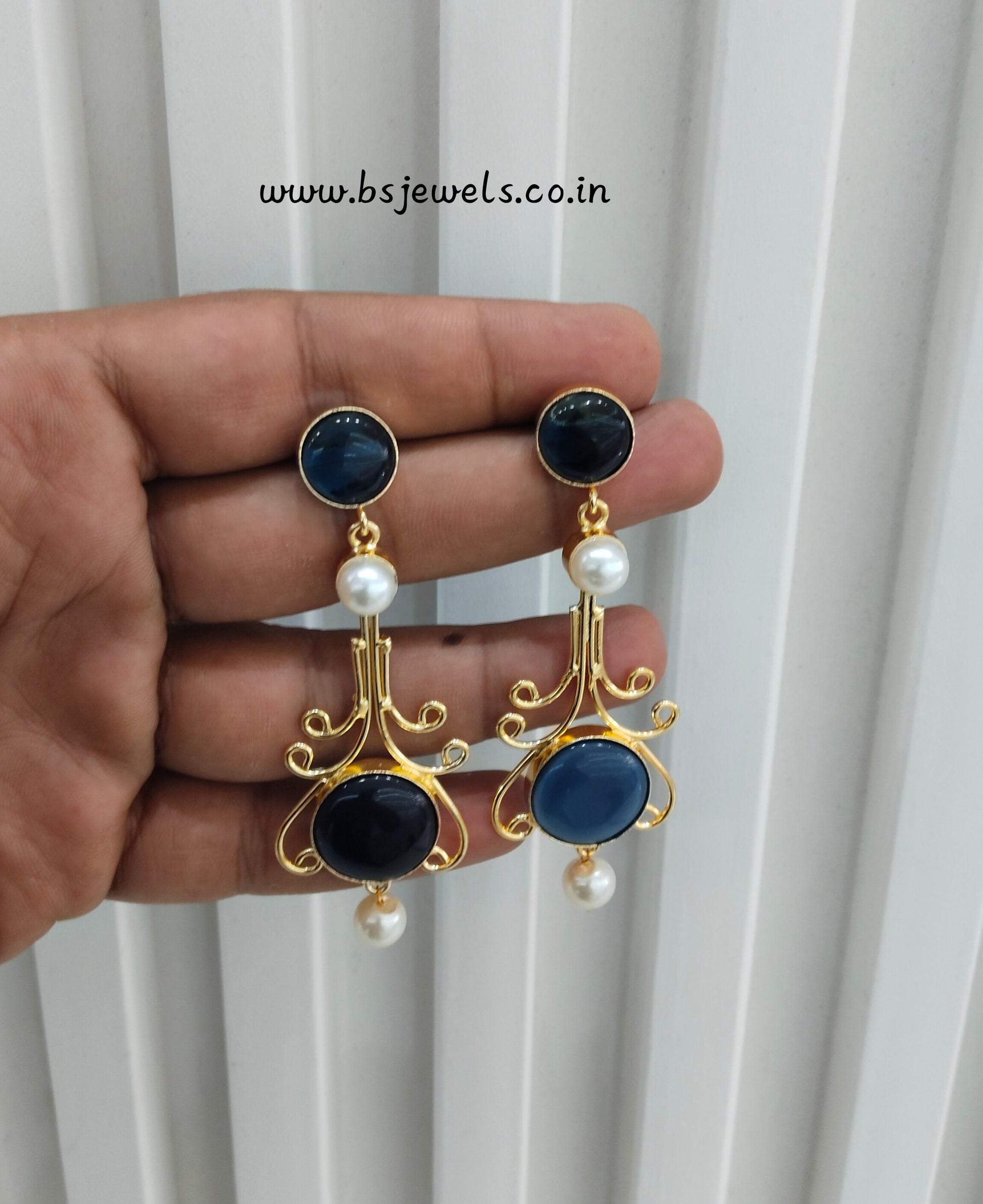 Blue Mother Of Pearl Bollywood Jombi Earrings