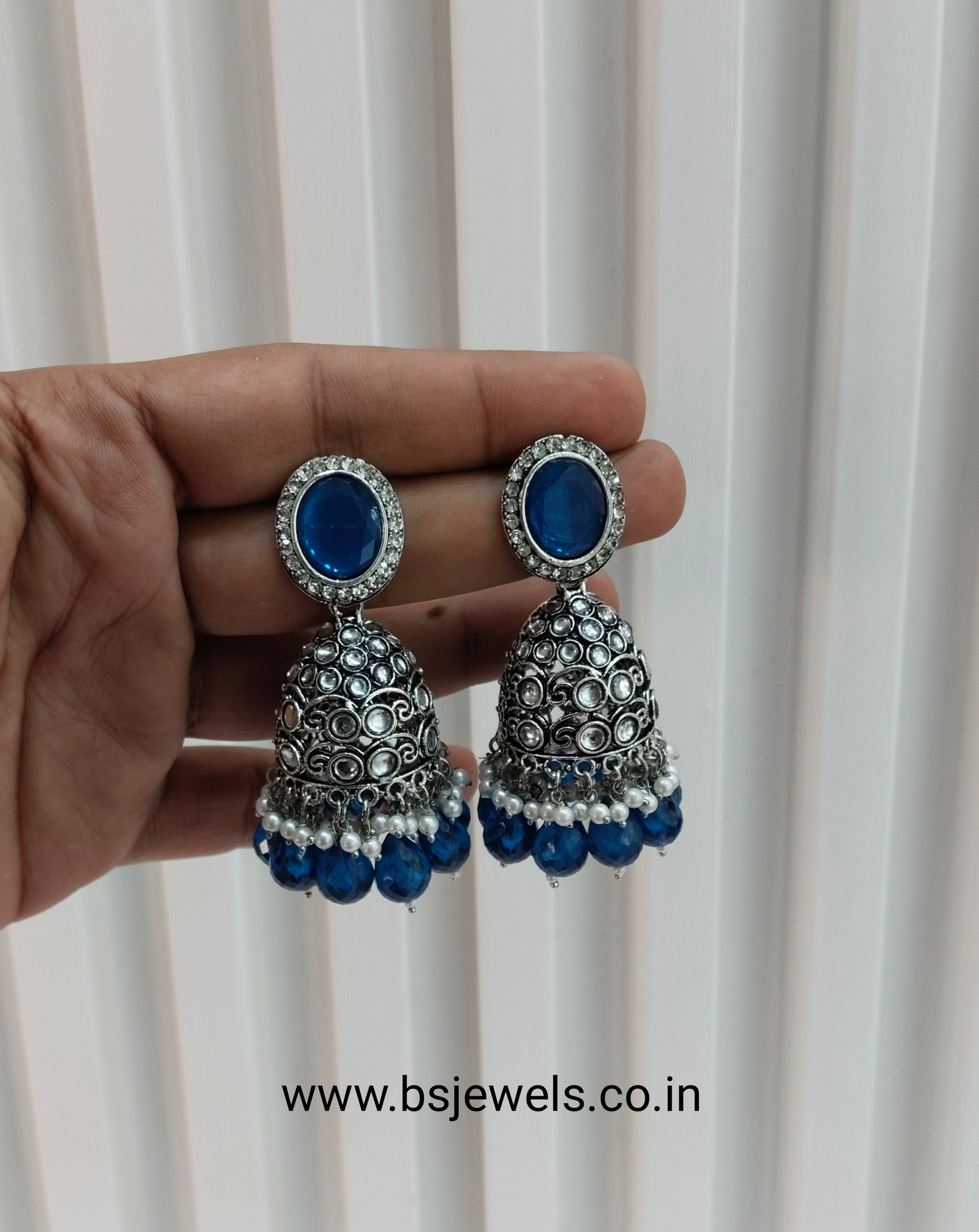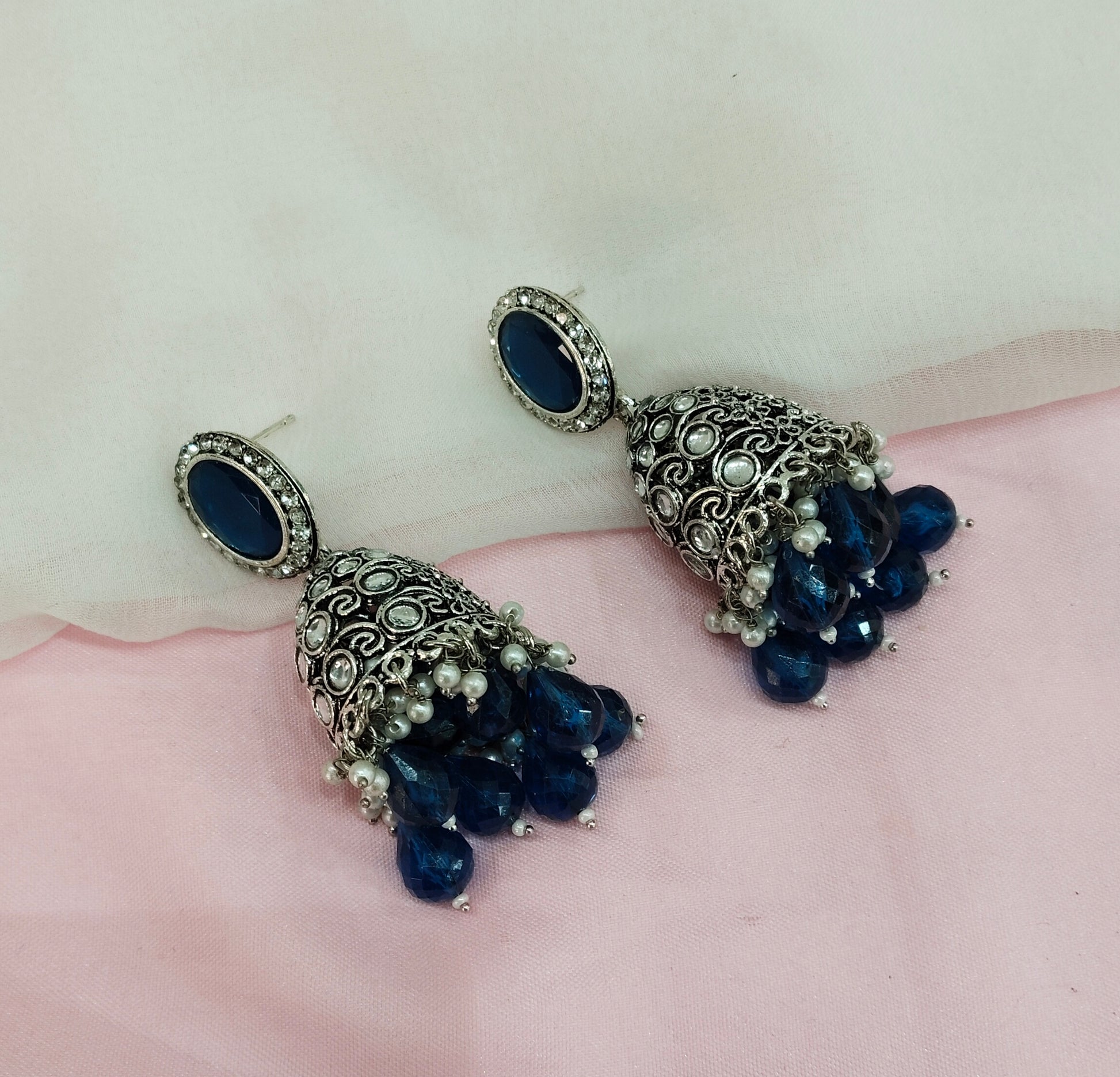 Blue Oxidized Metal Denber Jhumka Earrings Set
