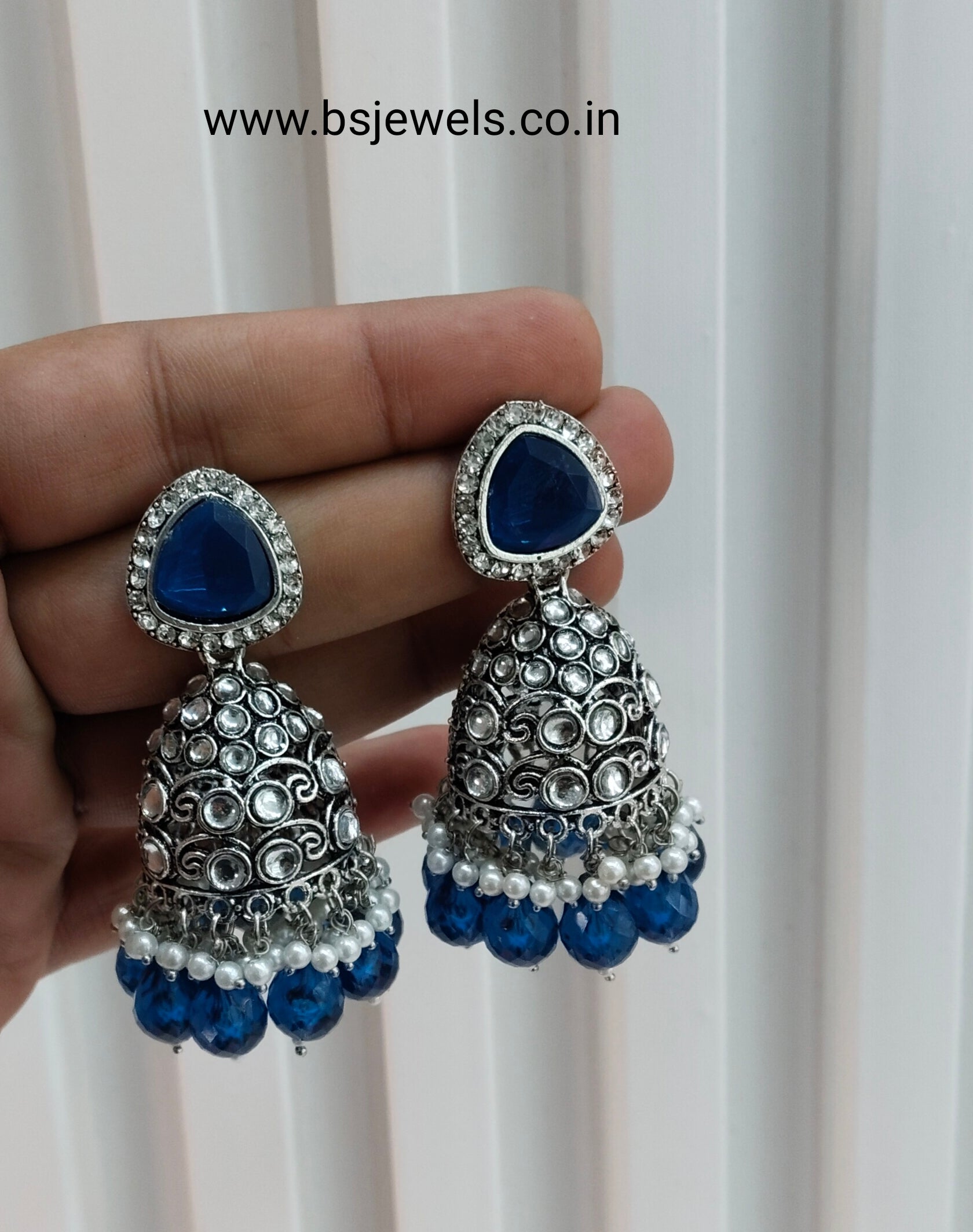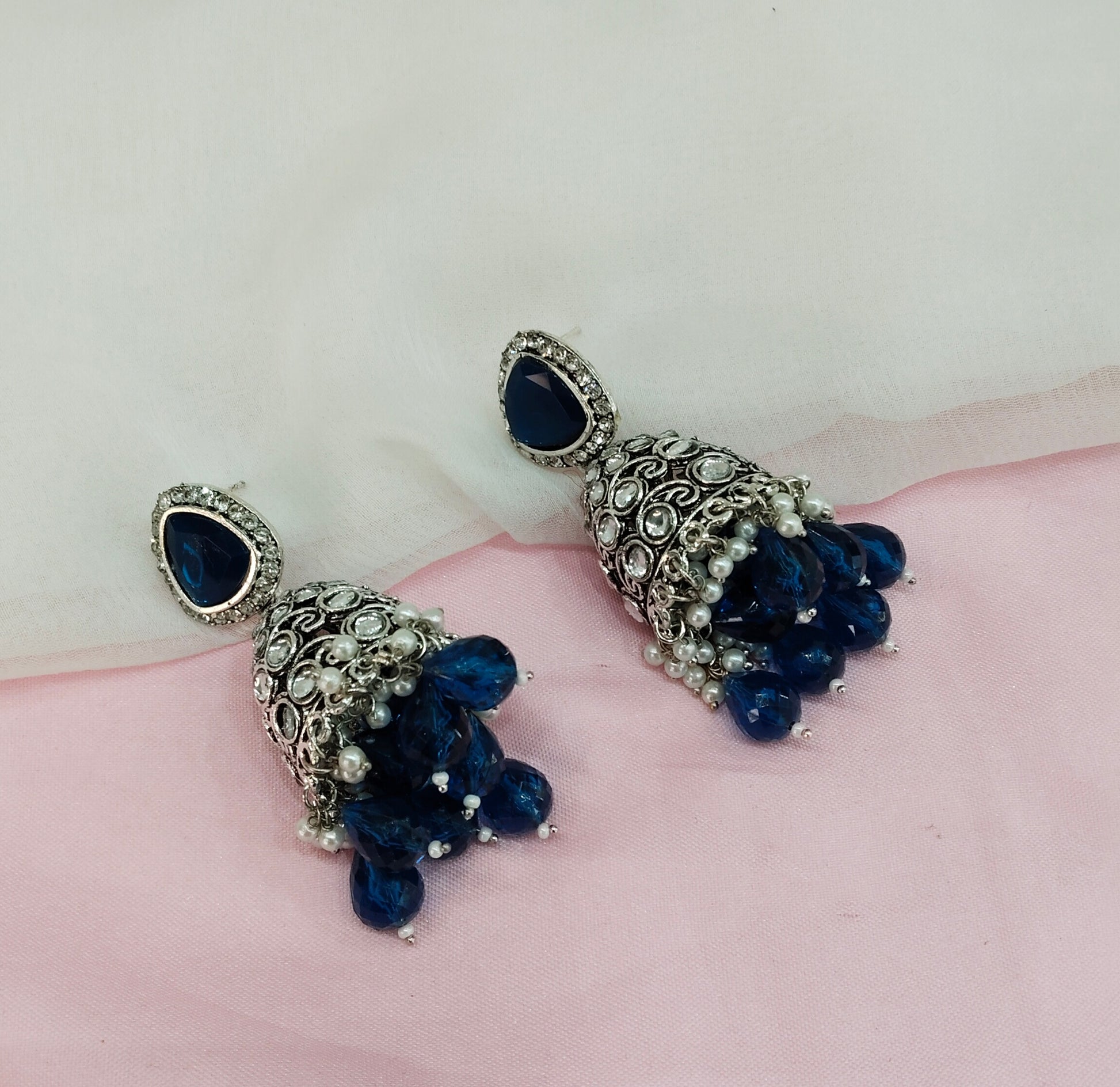 Blue Oxidized Metal Helsinki Jhumka Earrings Set