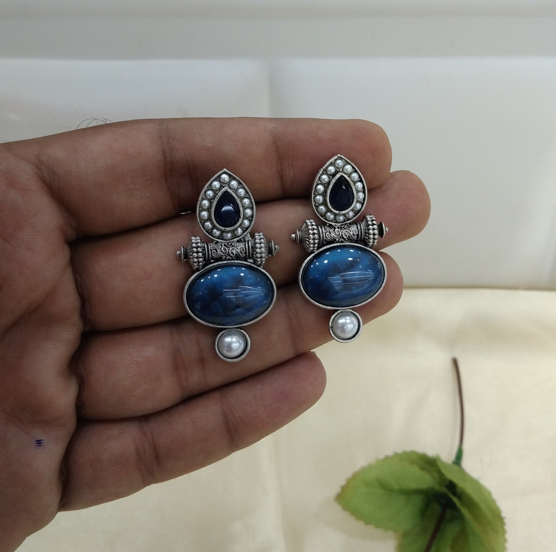 Blue Oxidized Metal Shalu Bollywood Earrings Jewellery