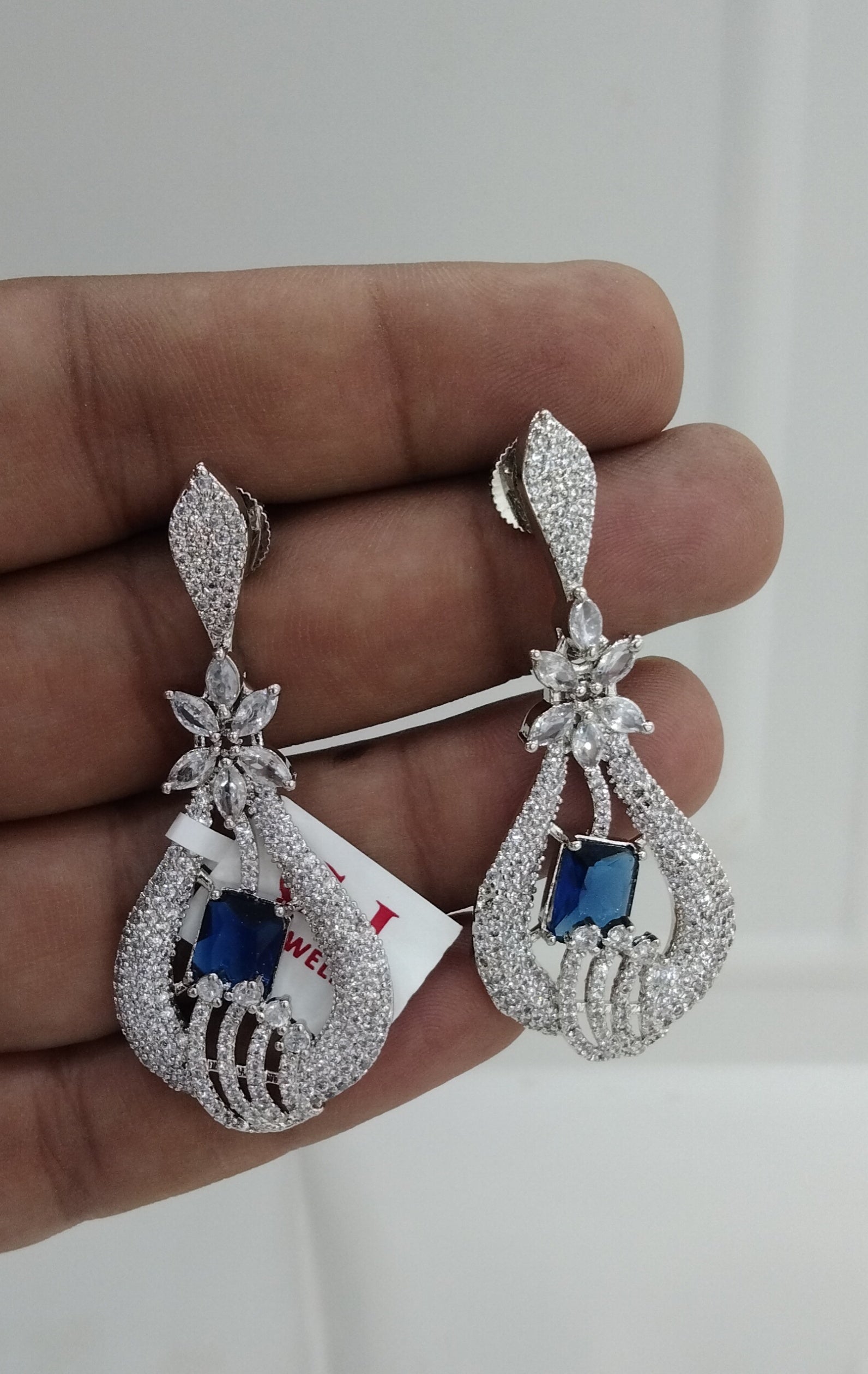 Blue Silver Cz American Diamond Earrings Kiran Jewellery Online
