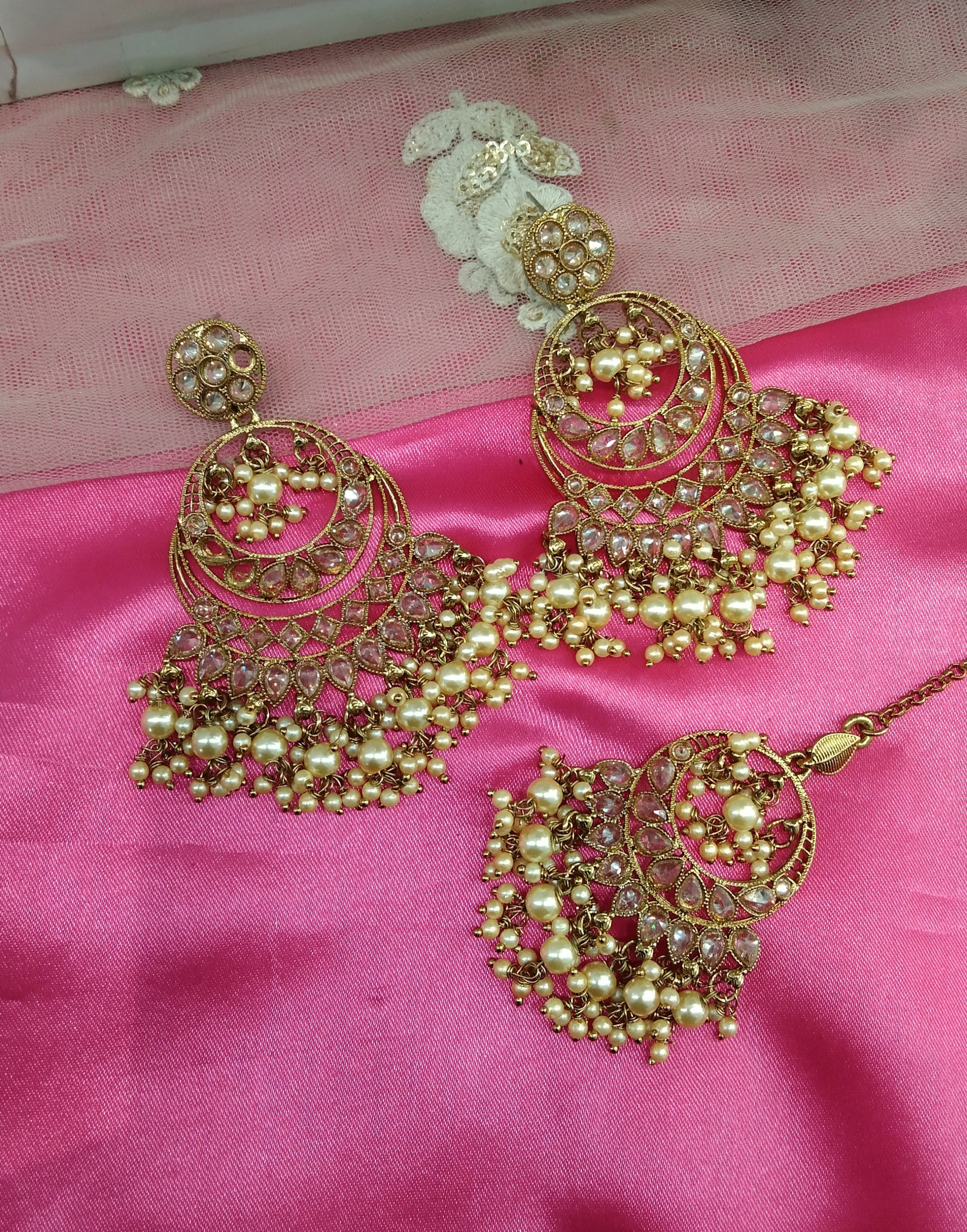 Champagne Gold Stone Chandbali Meena Bollywood Earrings Tikka Set