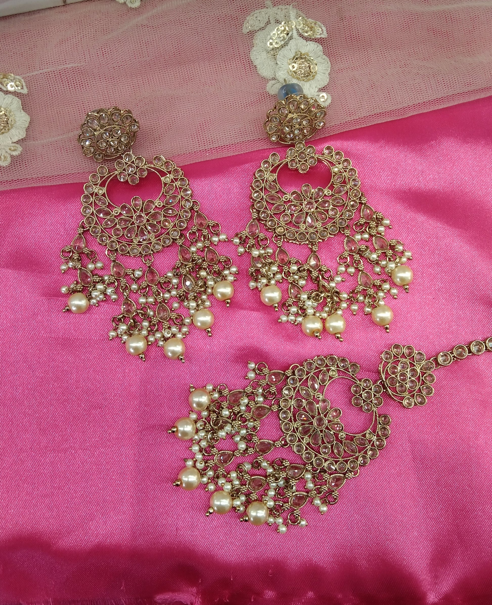 Champagne Gold Stone Chandbali Meena Bollywood Earrings Tikka Set