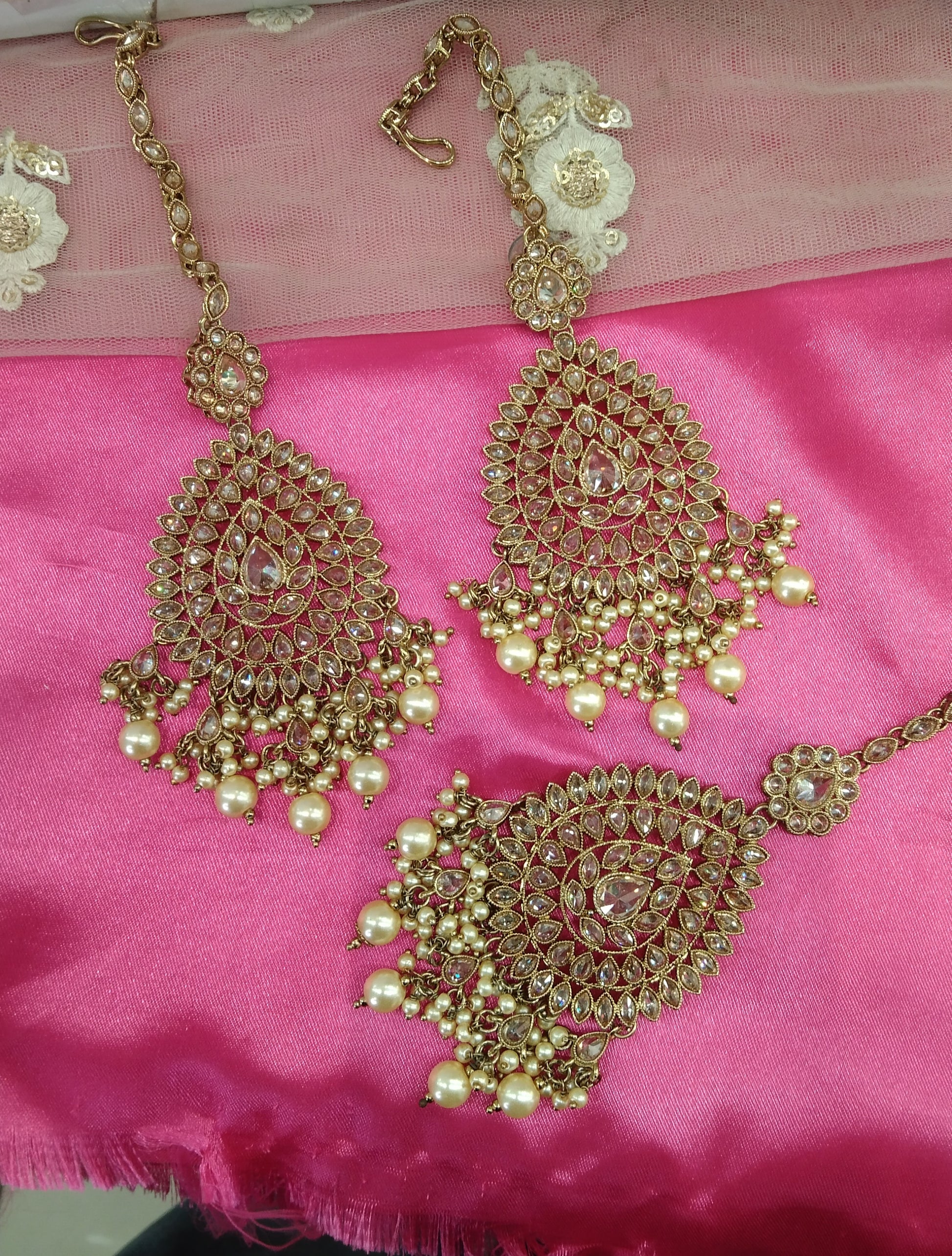Champagne Gold Stone Meena Bollywood Earrings Tikka Set