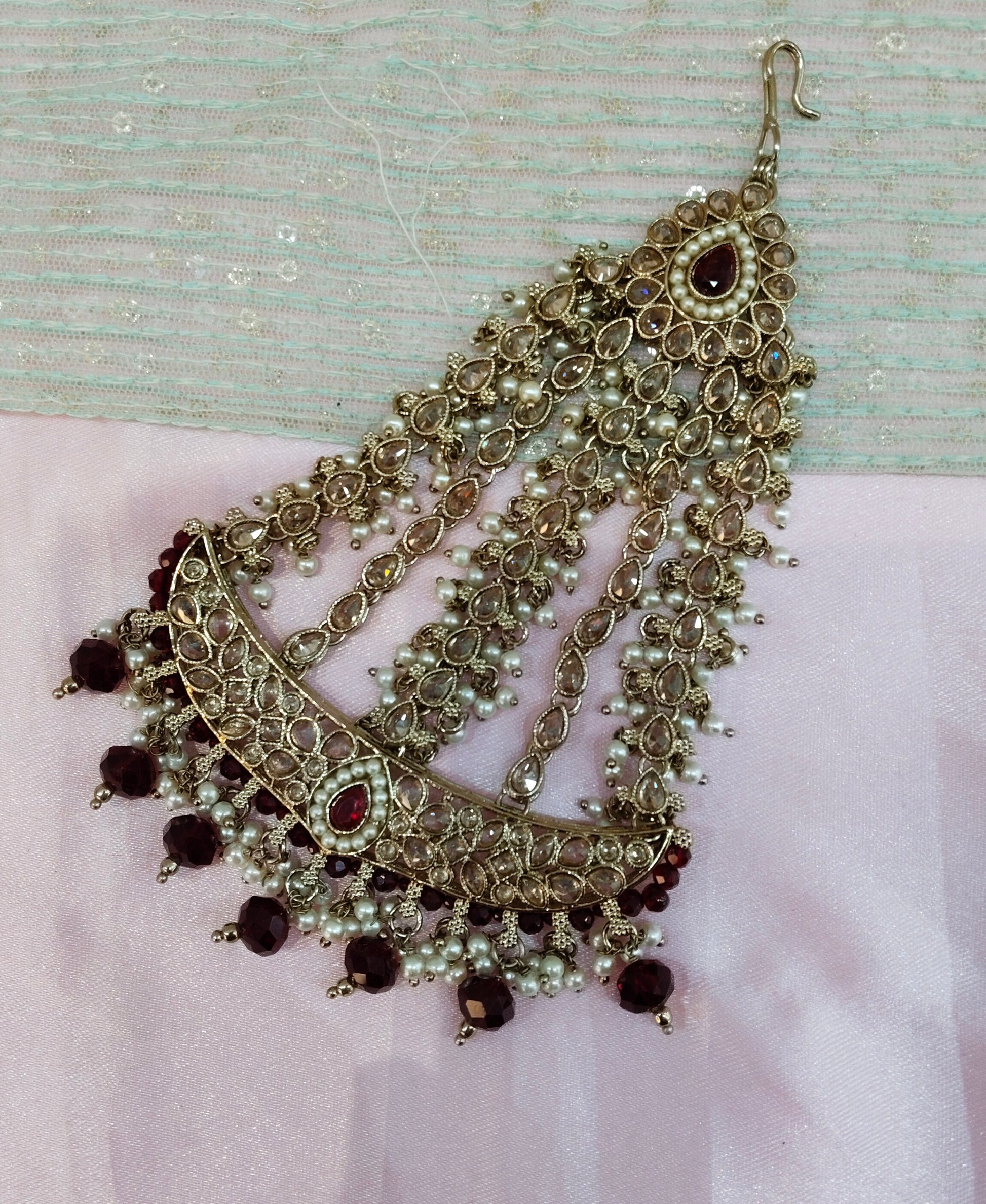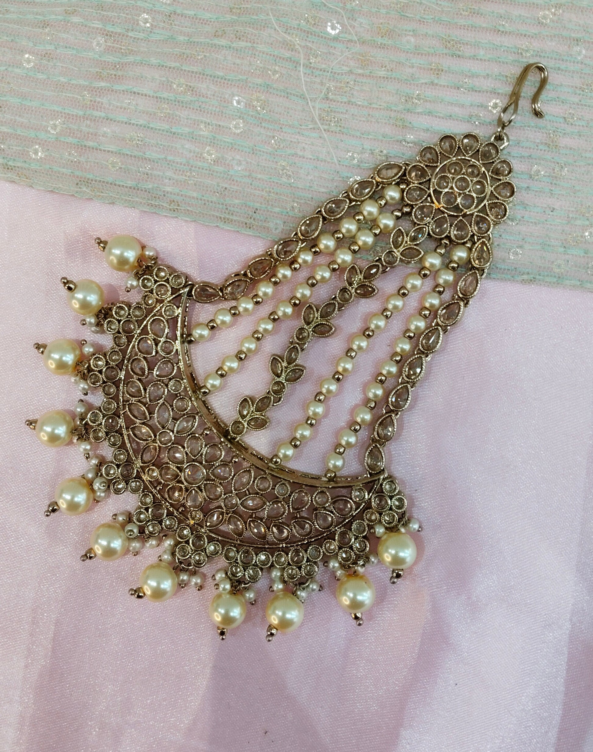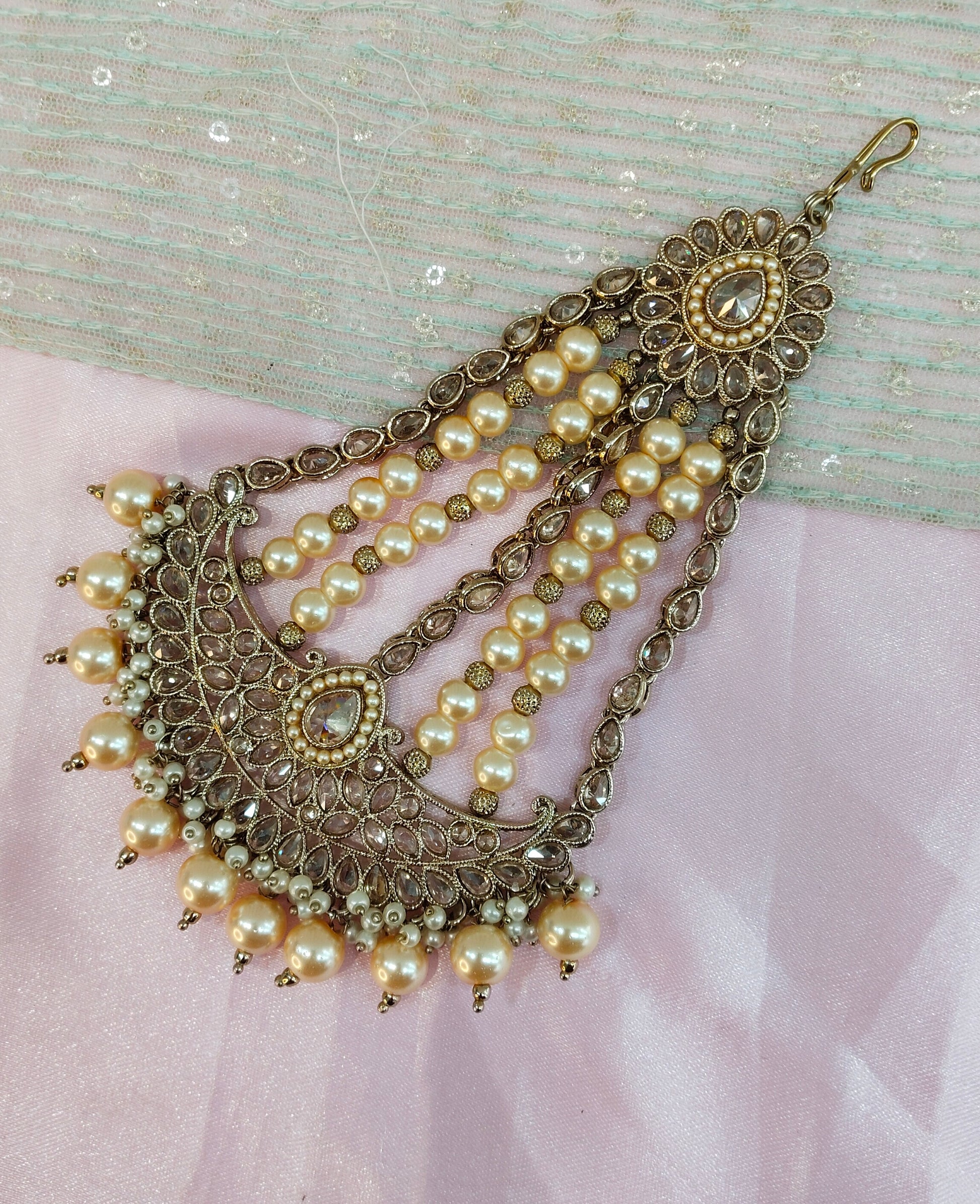 Champagne Stone Jhumar Headpassa Bridal Passa/Pakistani side Headpiece
