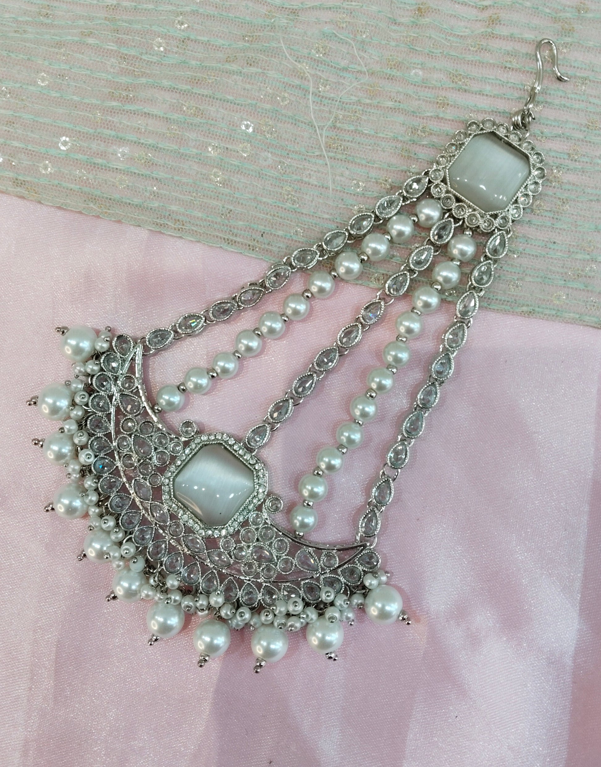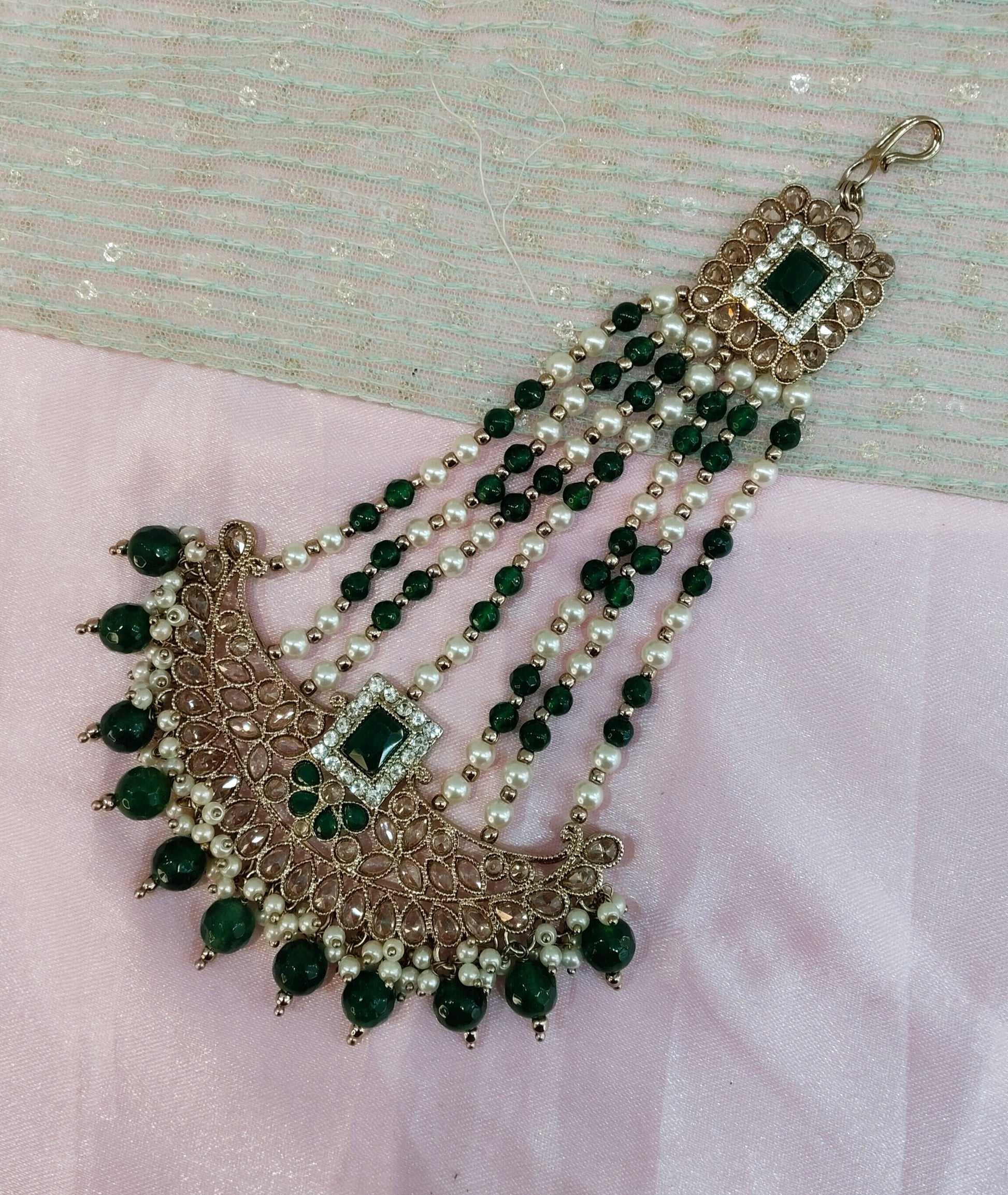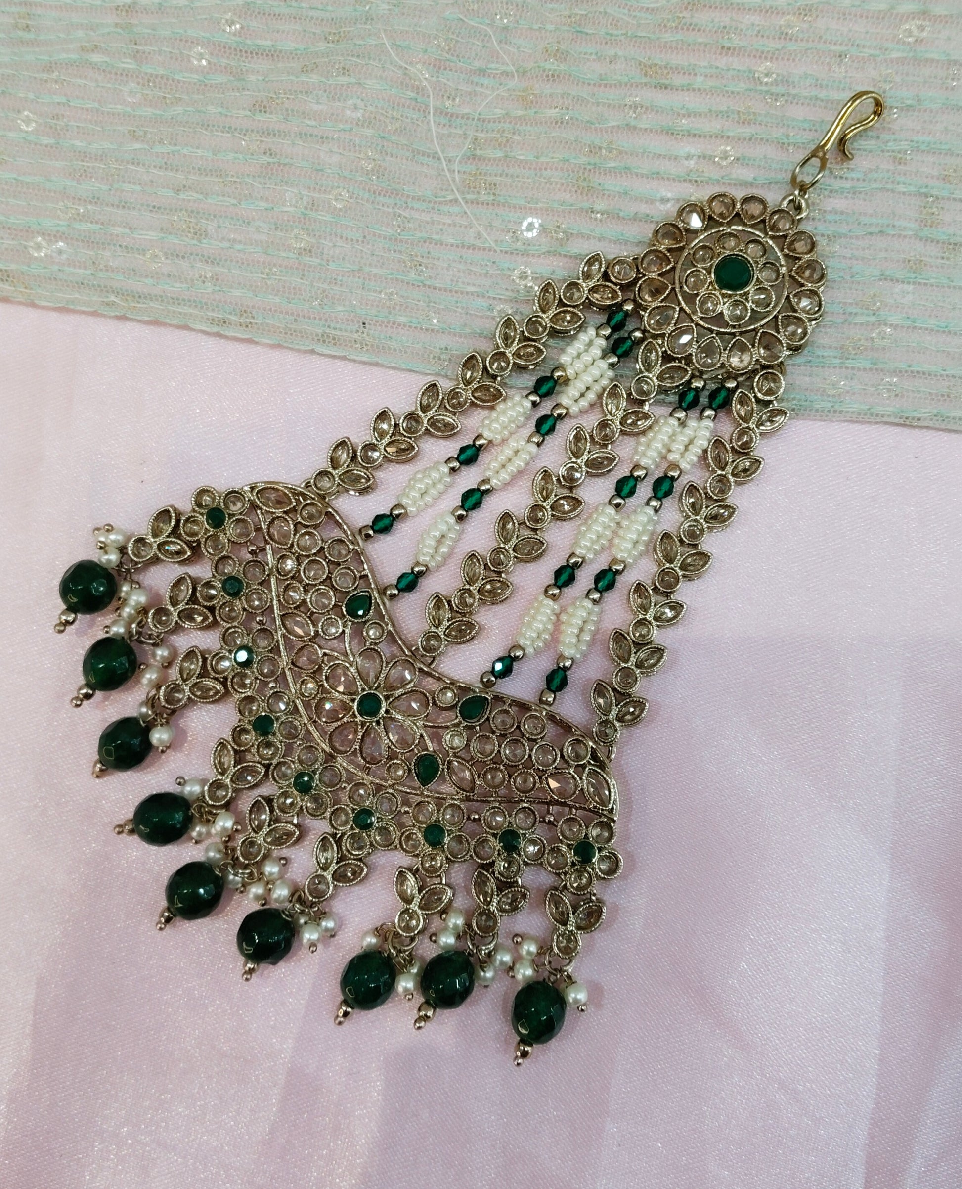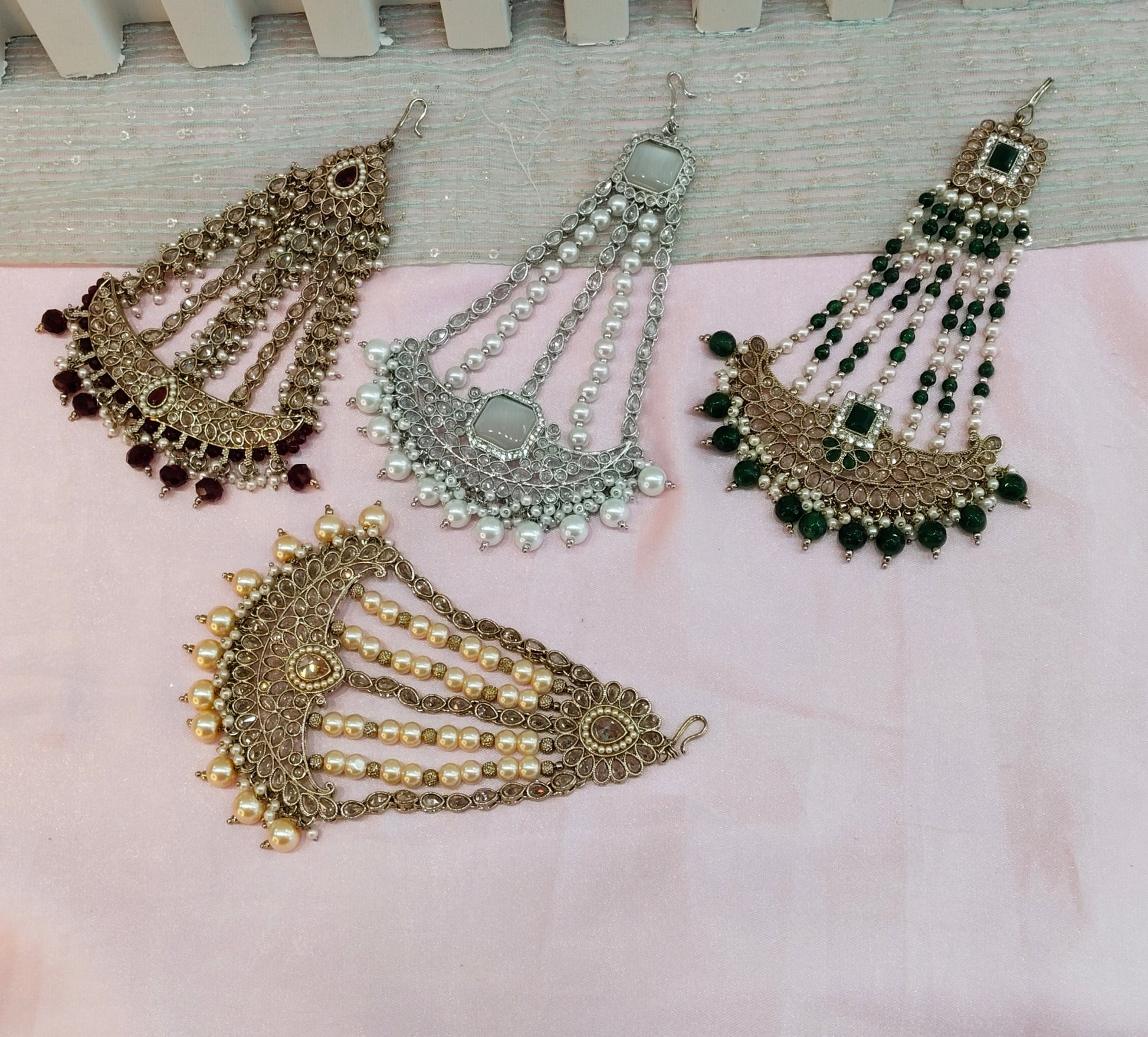 Champagne Stone Jhumar Headpassa Bridal Passa/Pakistani side Headpiece