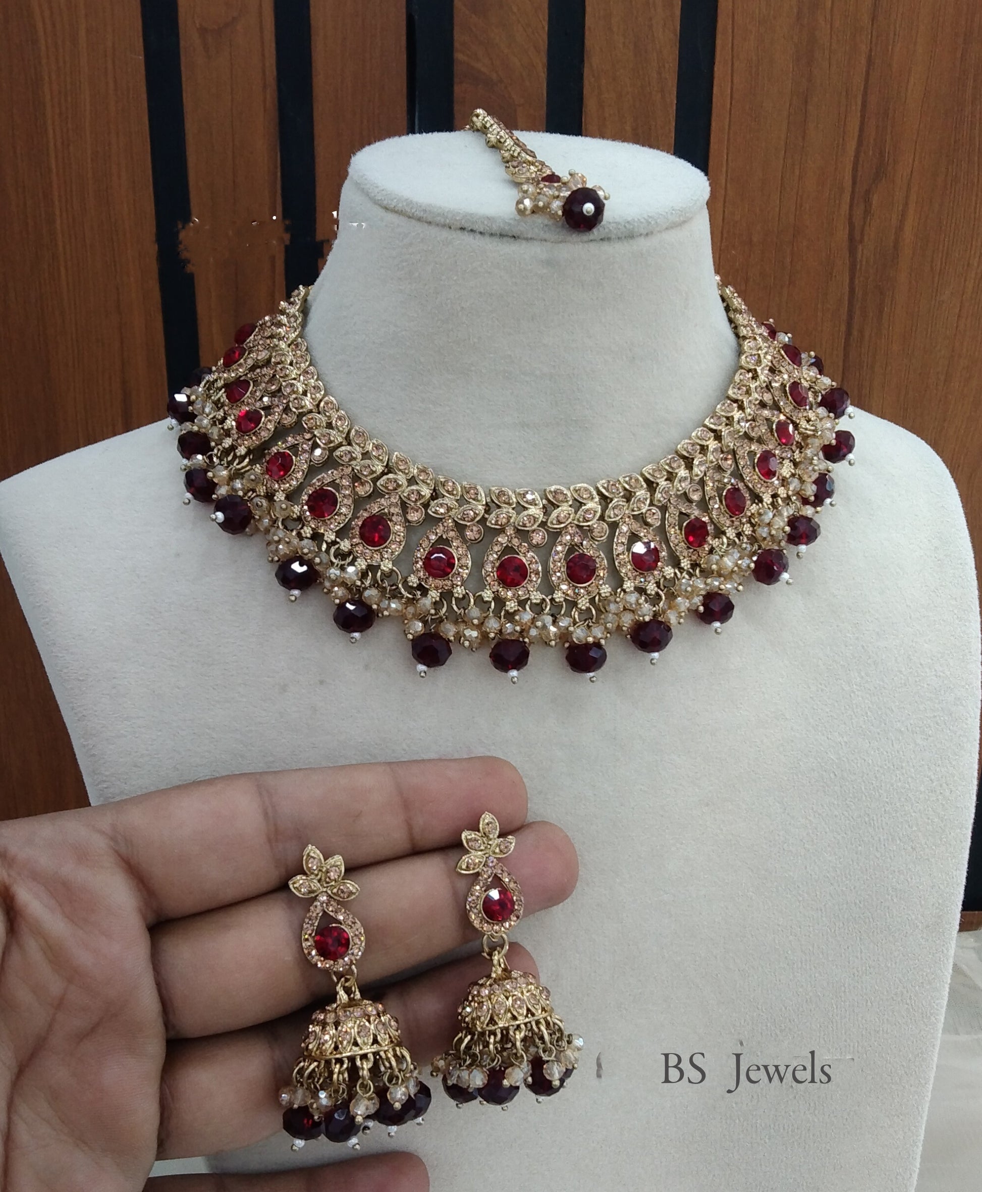 Choker Set Indian Maroon Choker Siraj Jewellery