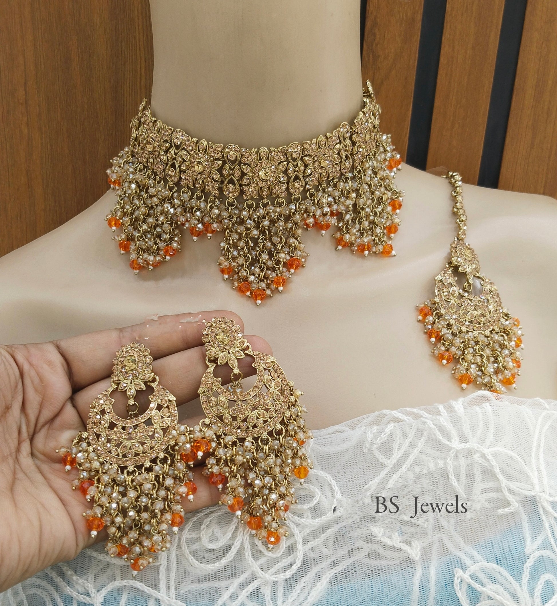Choker Set Indian Orange Choker Siraj Jewellery