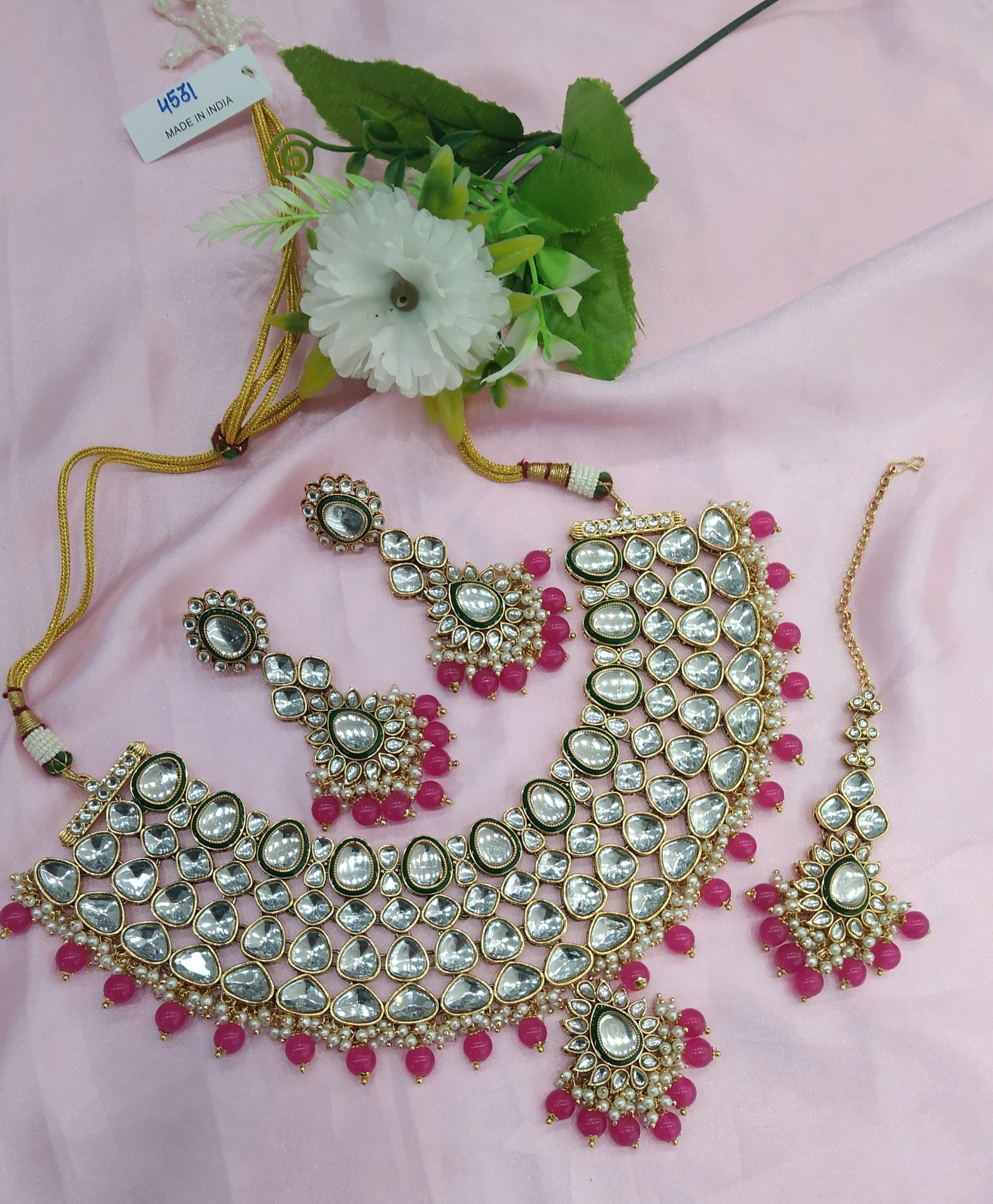 Dark pink Kundan Necklace Jewellery Lite Set