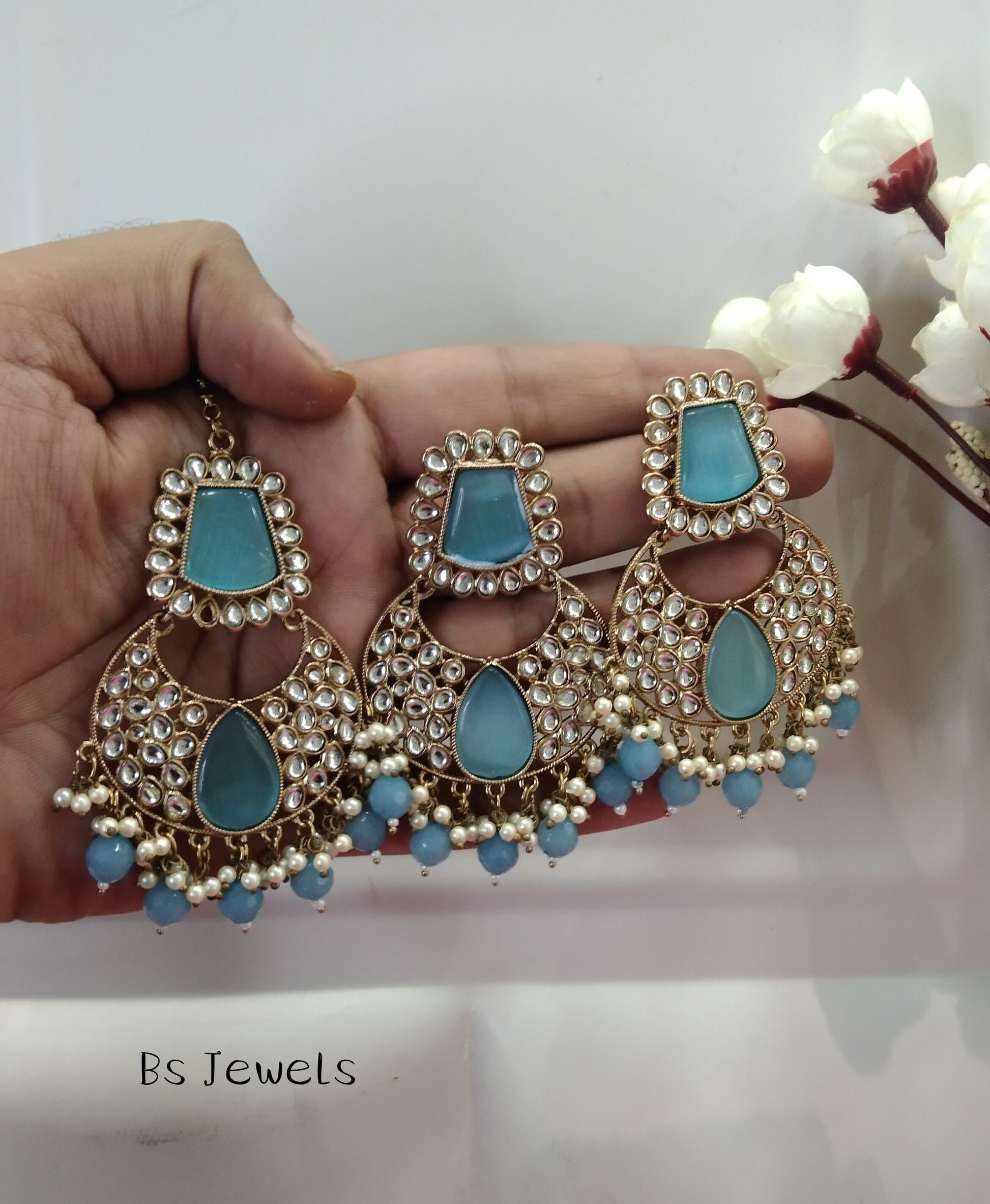 Firoja Kundan Chandbali Pulsar Bollywood Earrings Tikka Set