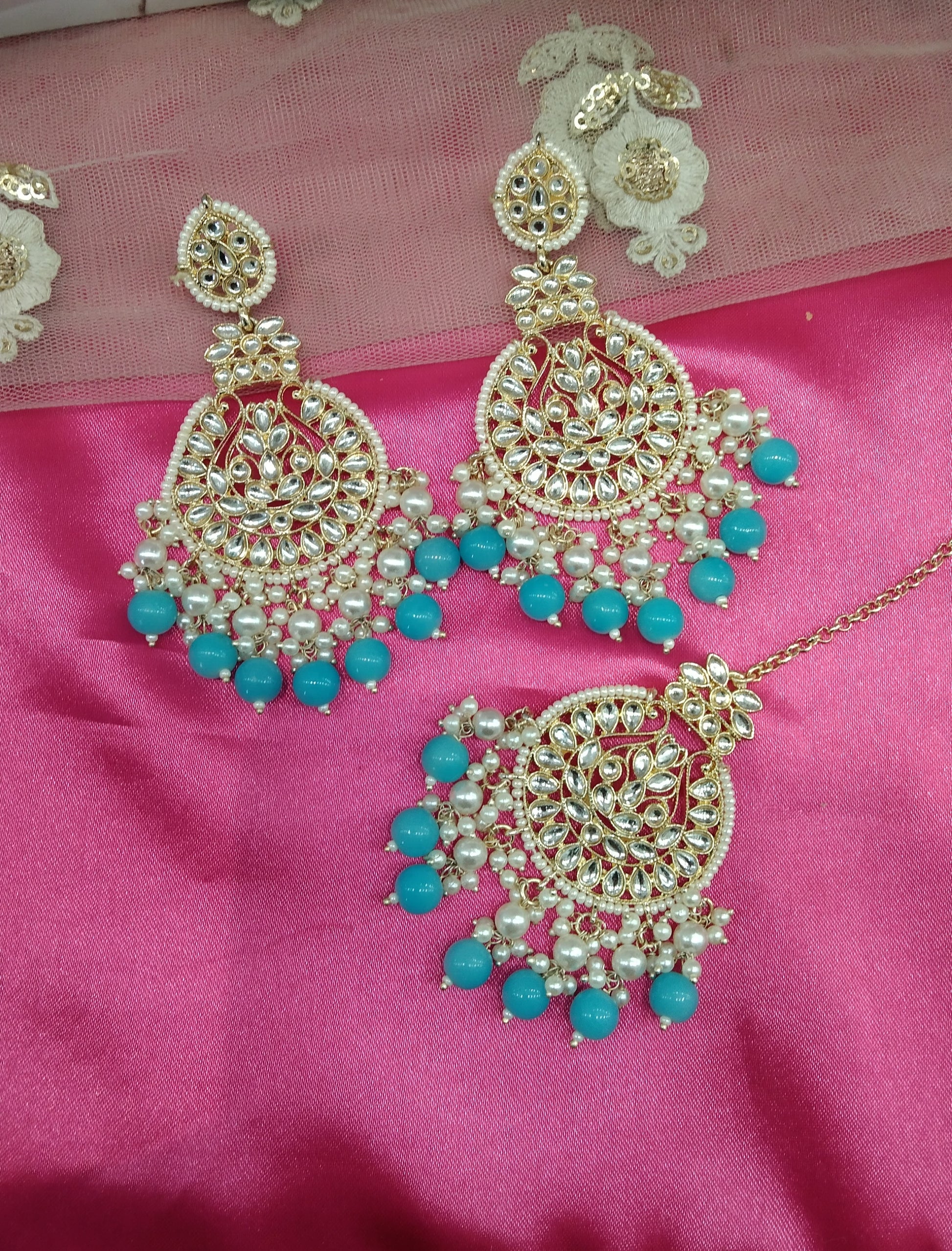Firoja Kundan Tape Bollywood Earrings Tikka Set