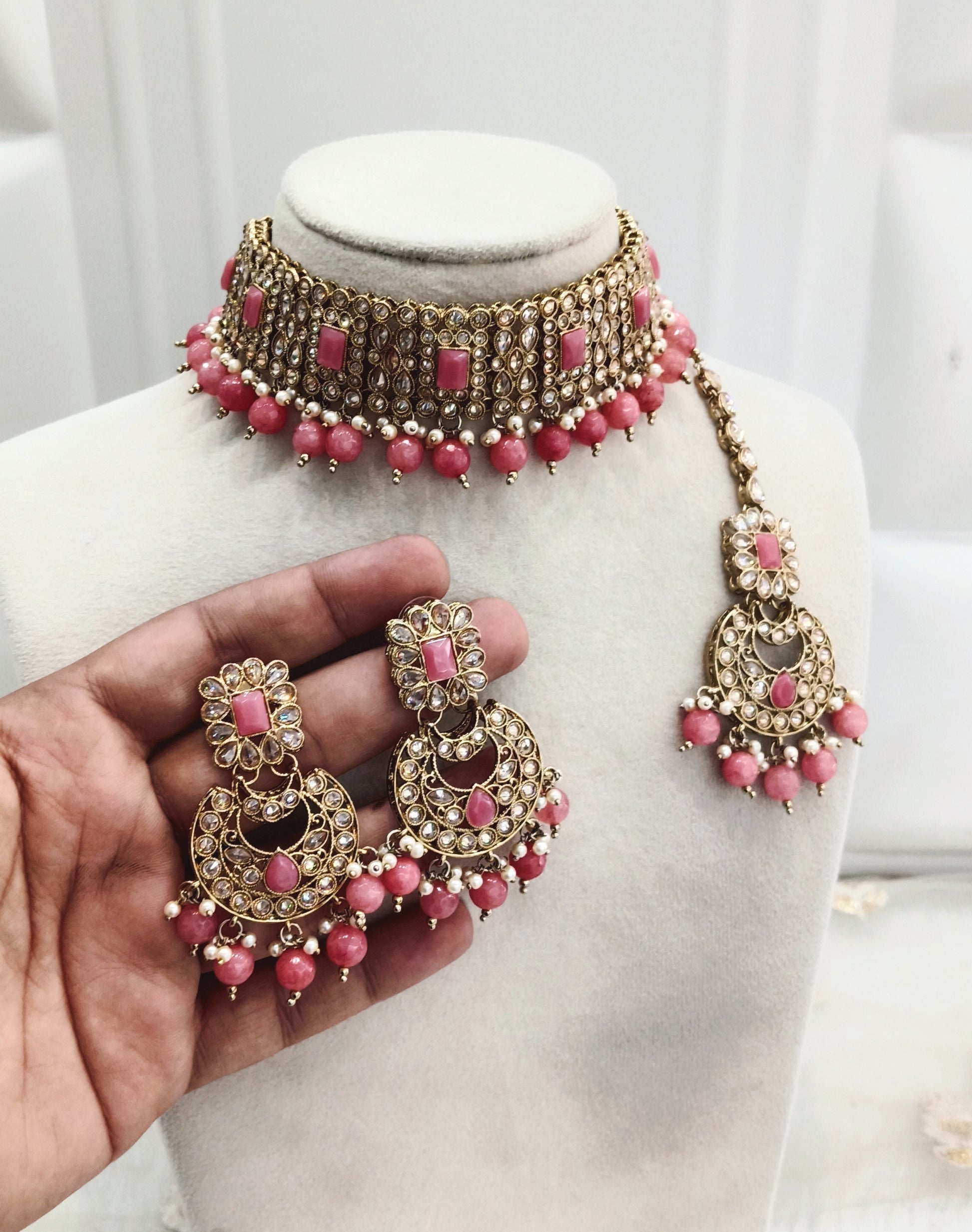*Choker set with earrings and tikka.
