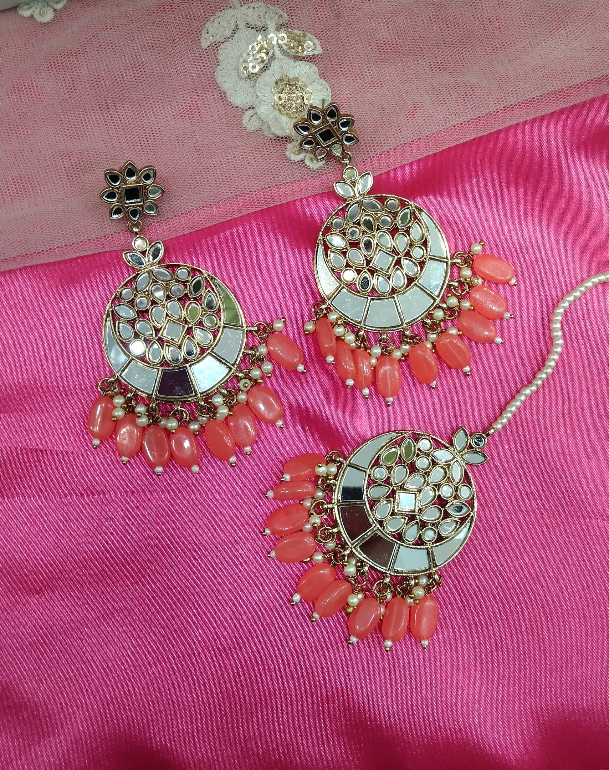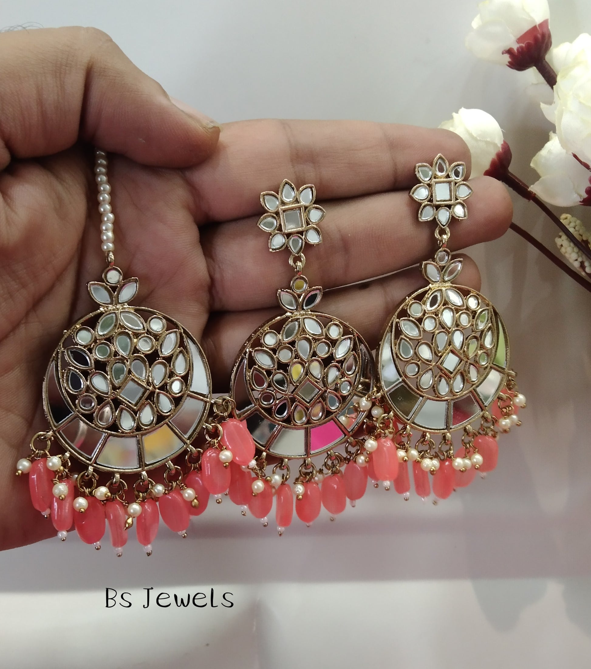 Gaajri Mirror Kundan Chandbali Right Bollywood Earrings Tikka Set