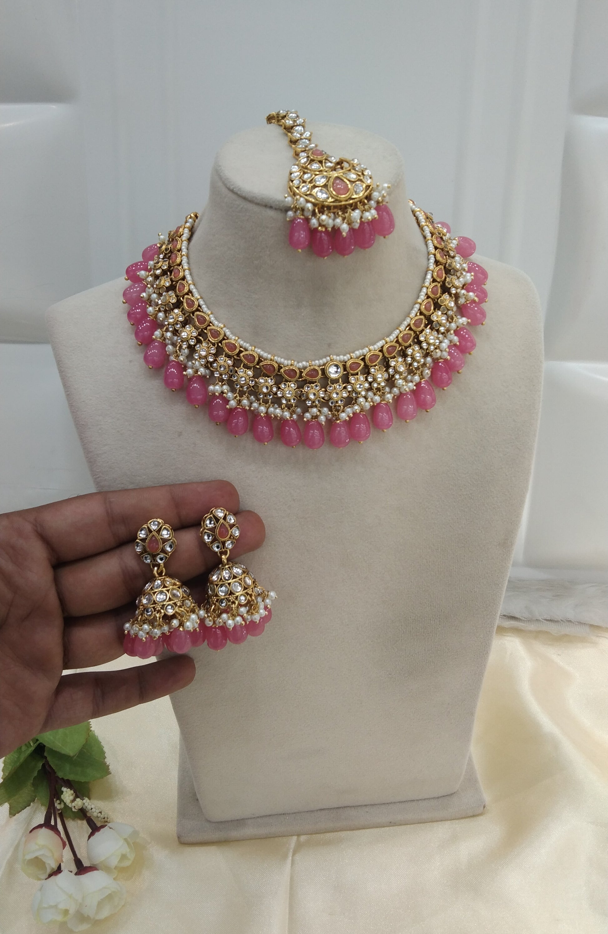 *Kundan necklace set with earrings and tikka.