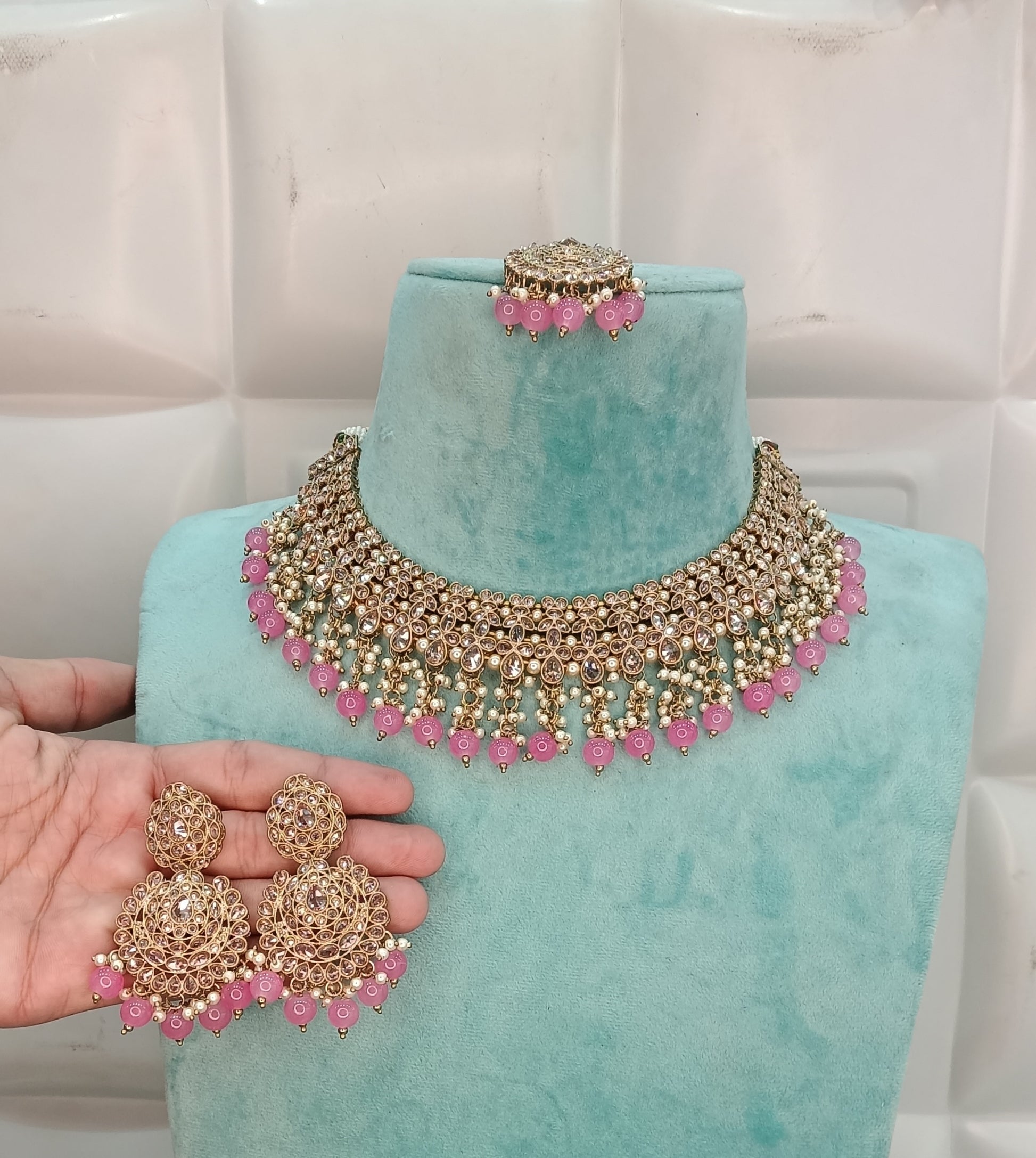 *Necklace set with earrings and tikka.