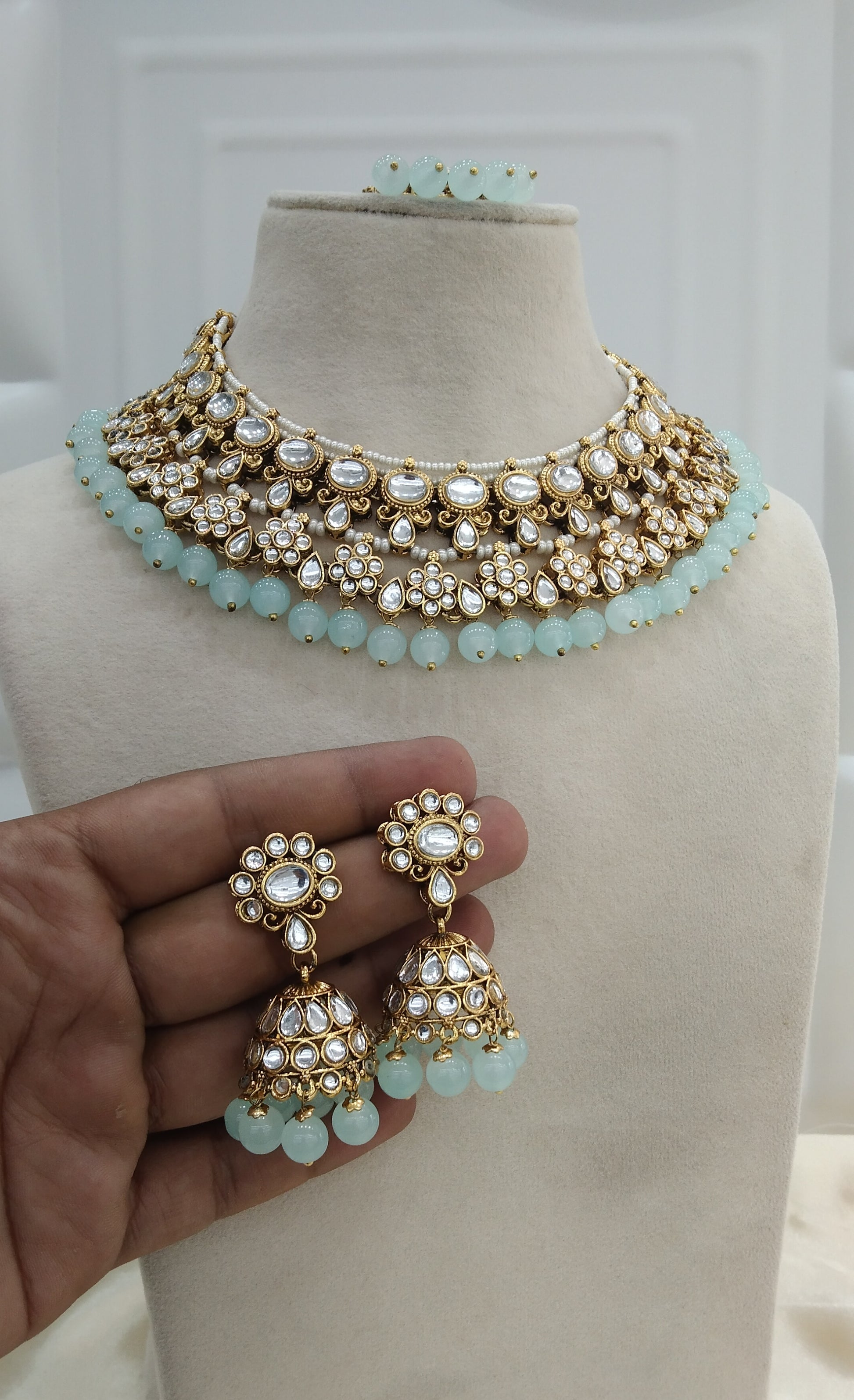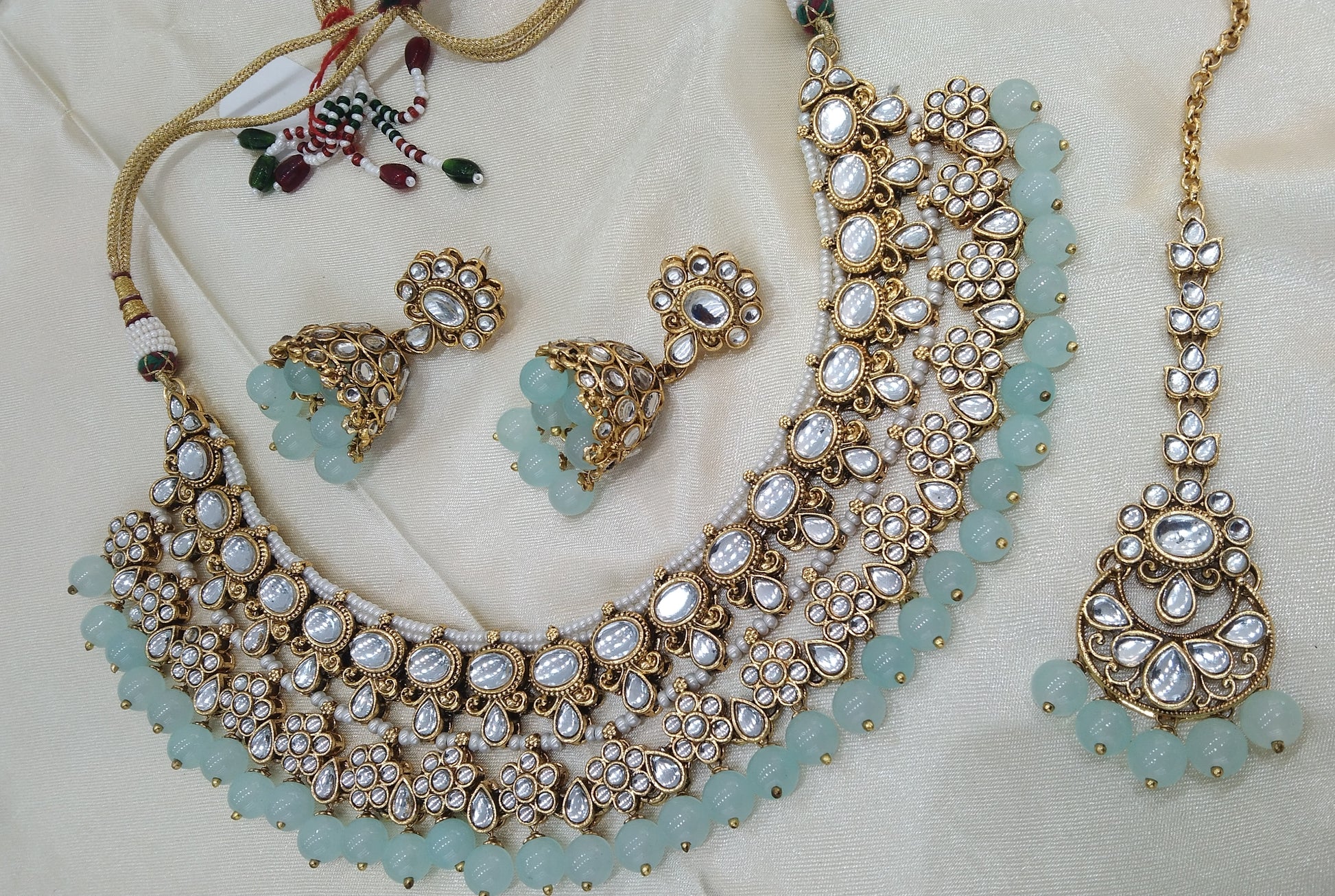 Garry Sea Green kundan Indian Necklace Jewellery Set