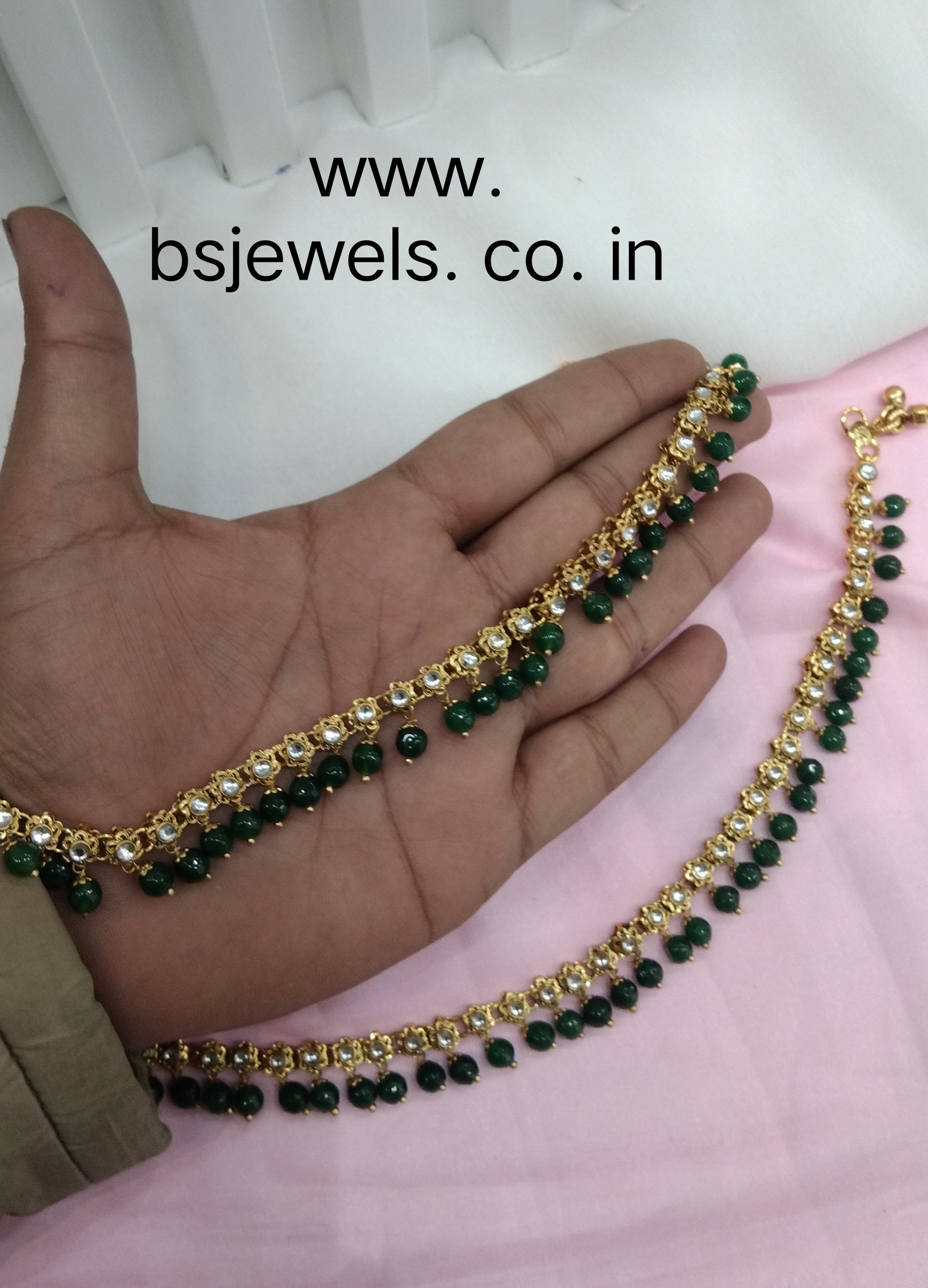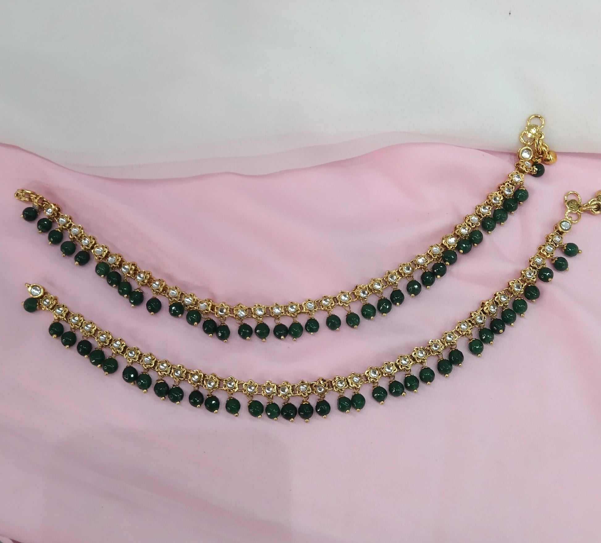 Gold Green Kundan Anklets Jhanjar Payal Jewellery opti Set