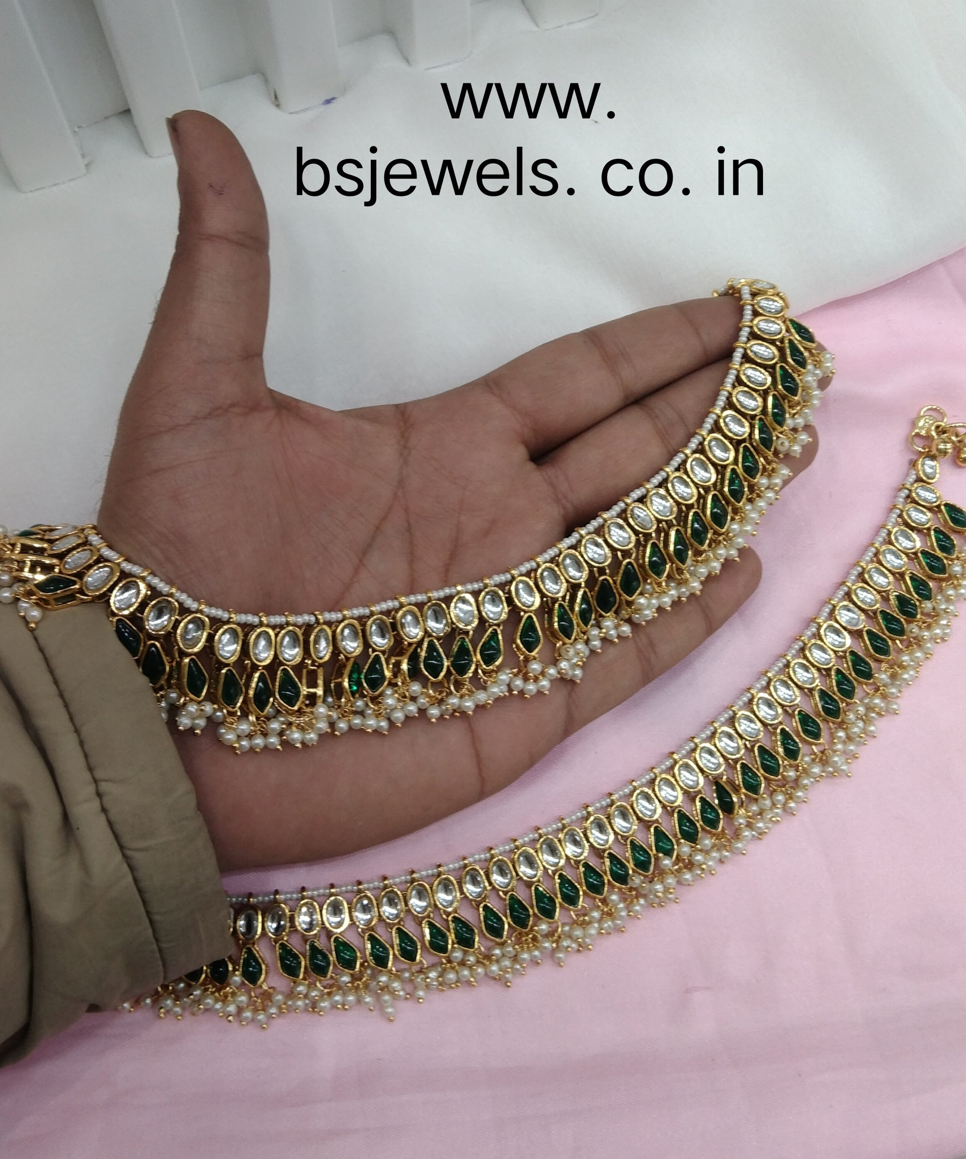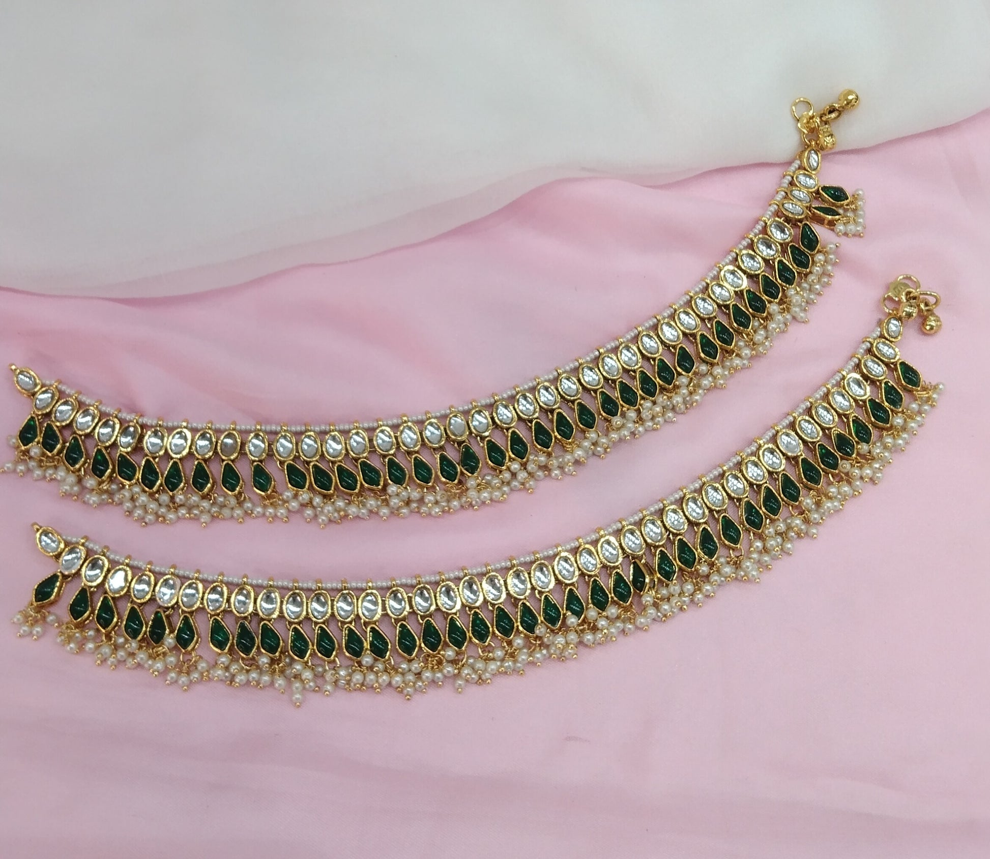 Gold Green Kundan Anklets Jhanjar Payal Jewellery opti Set
