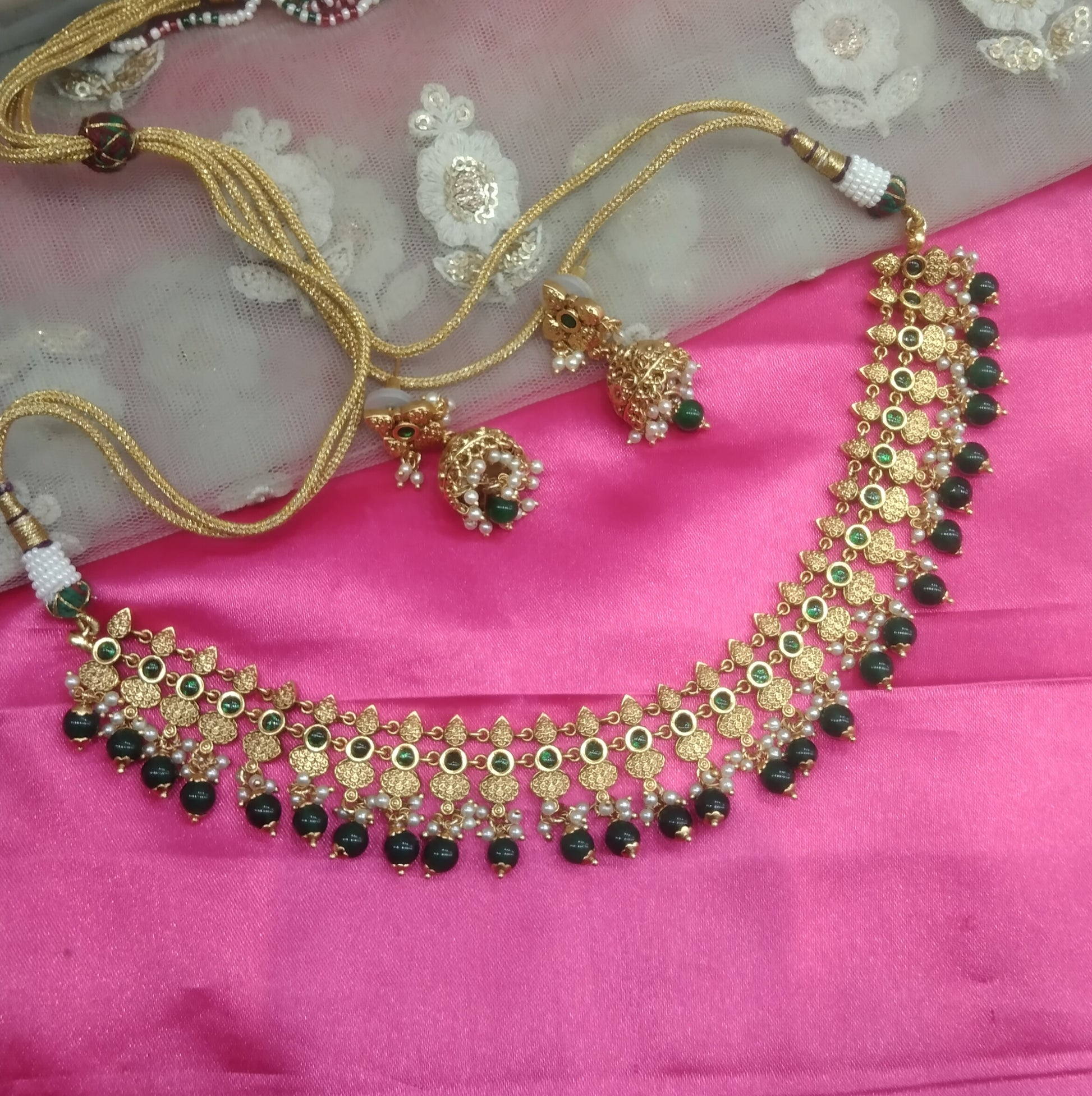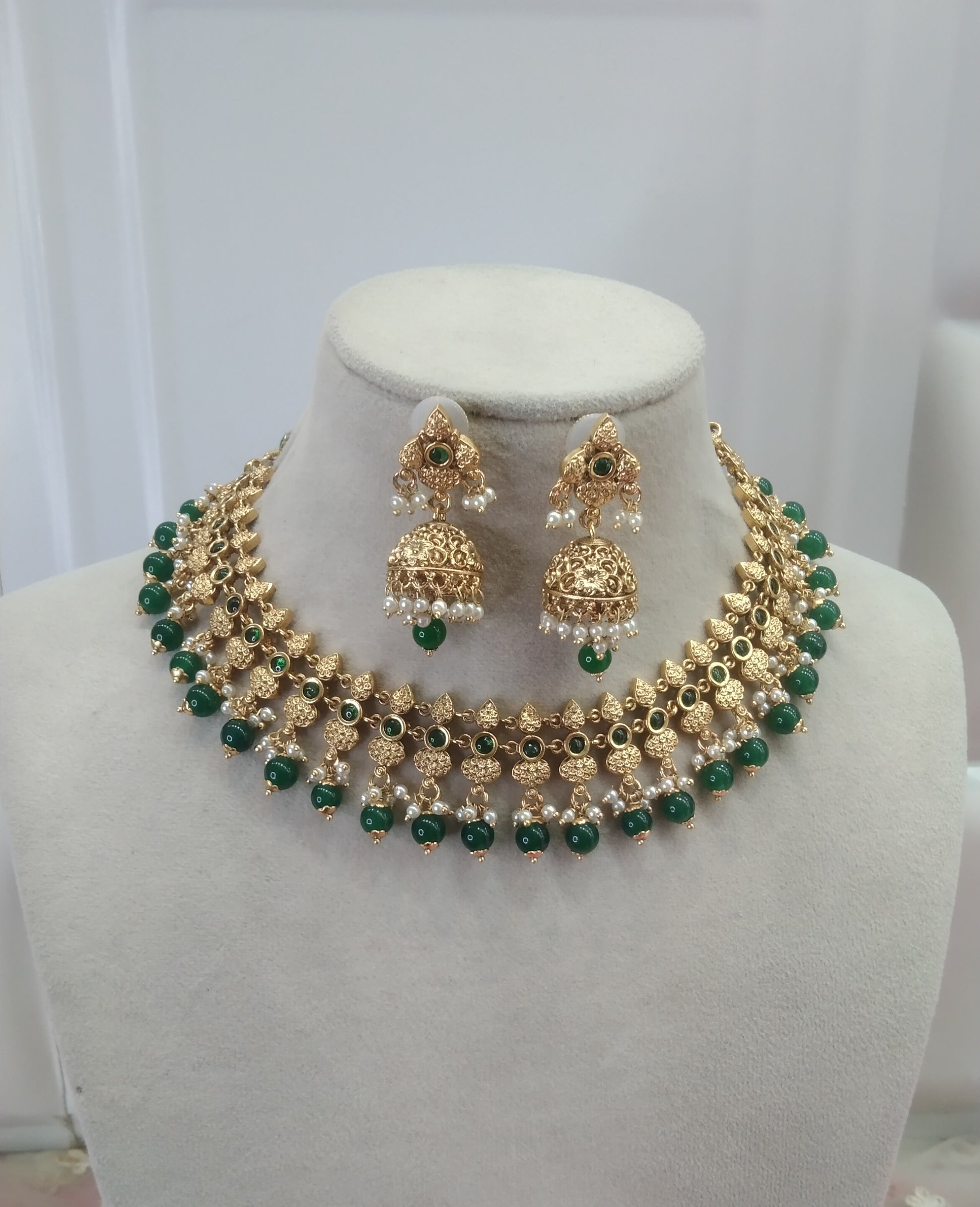 Gold Green Polki Jhumki Necklace Jewellery Global Set
