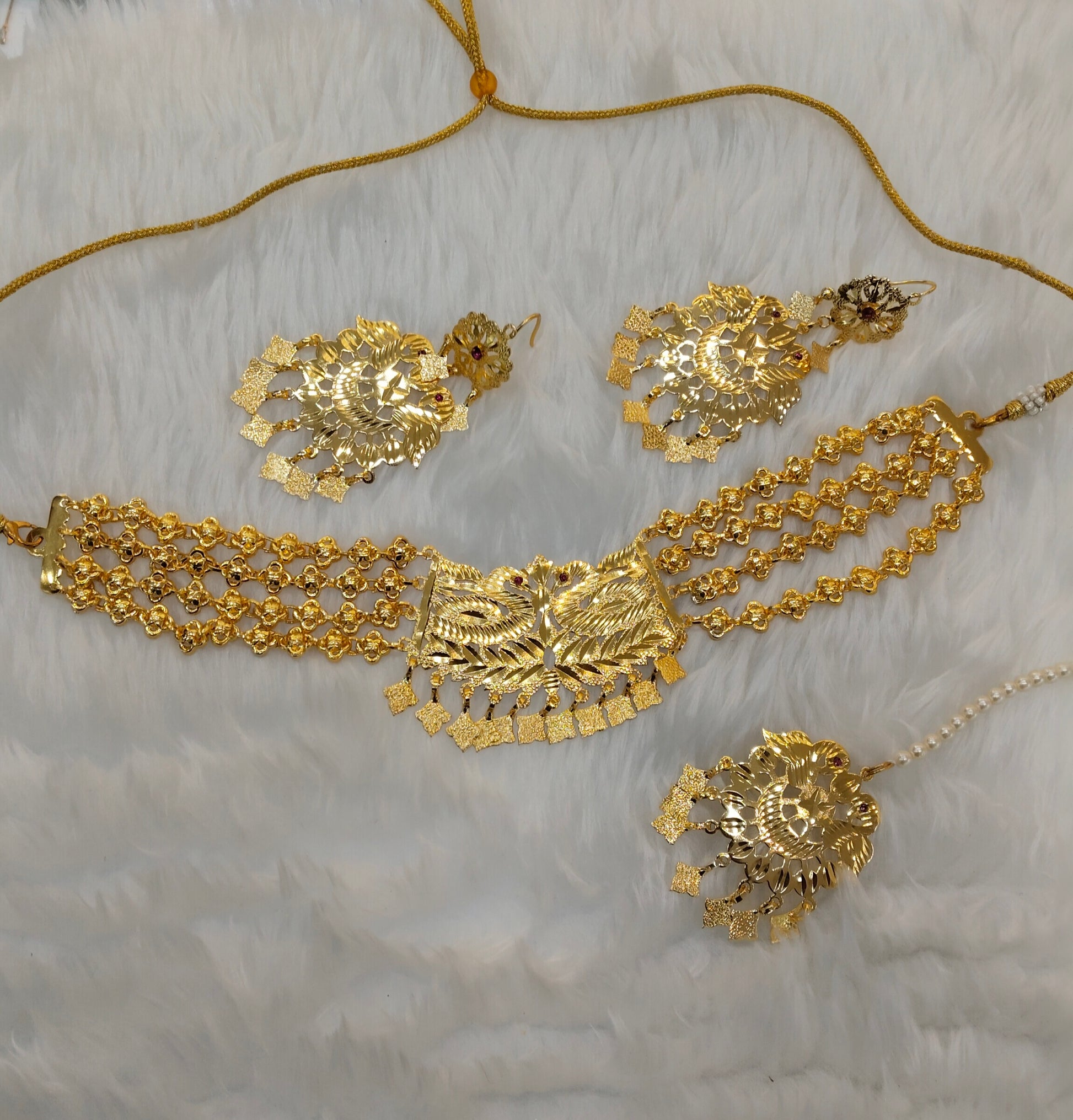 Gold Jadau Punjabi Style Patra Choker Jewellery Sultan Set