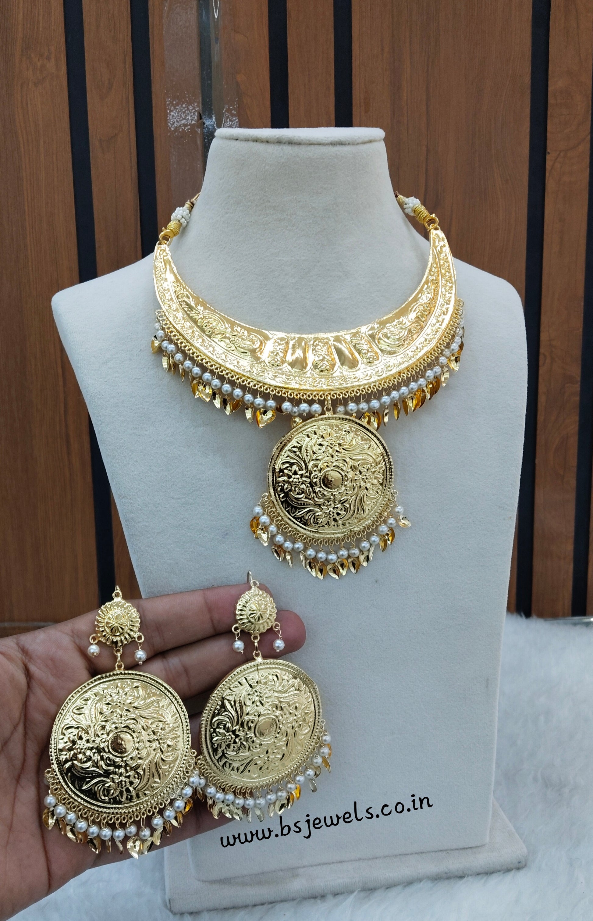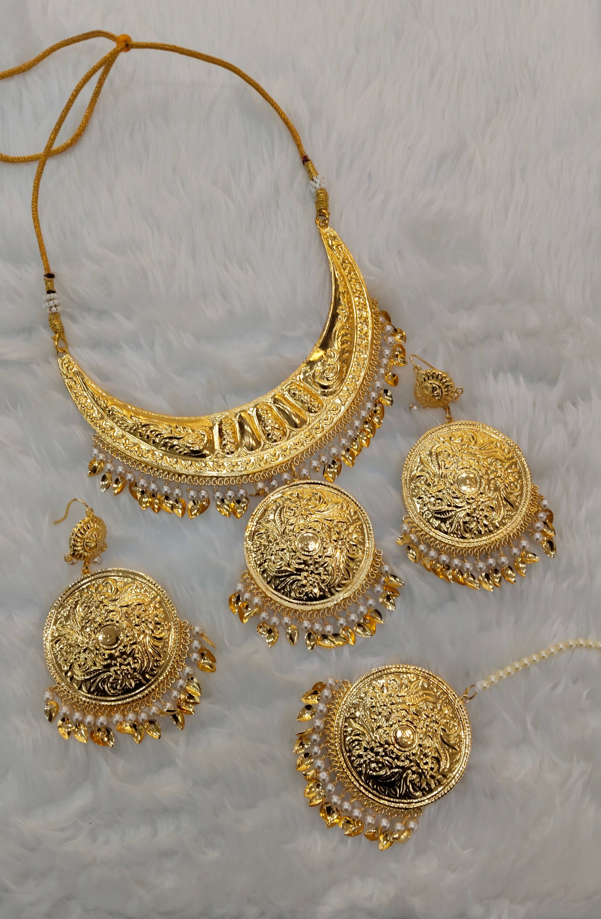 Gold Jadau Punjabi Style Necklace Jewellery Sultan Set