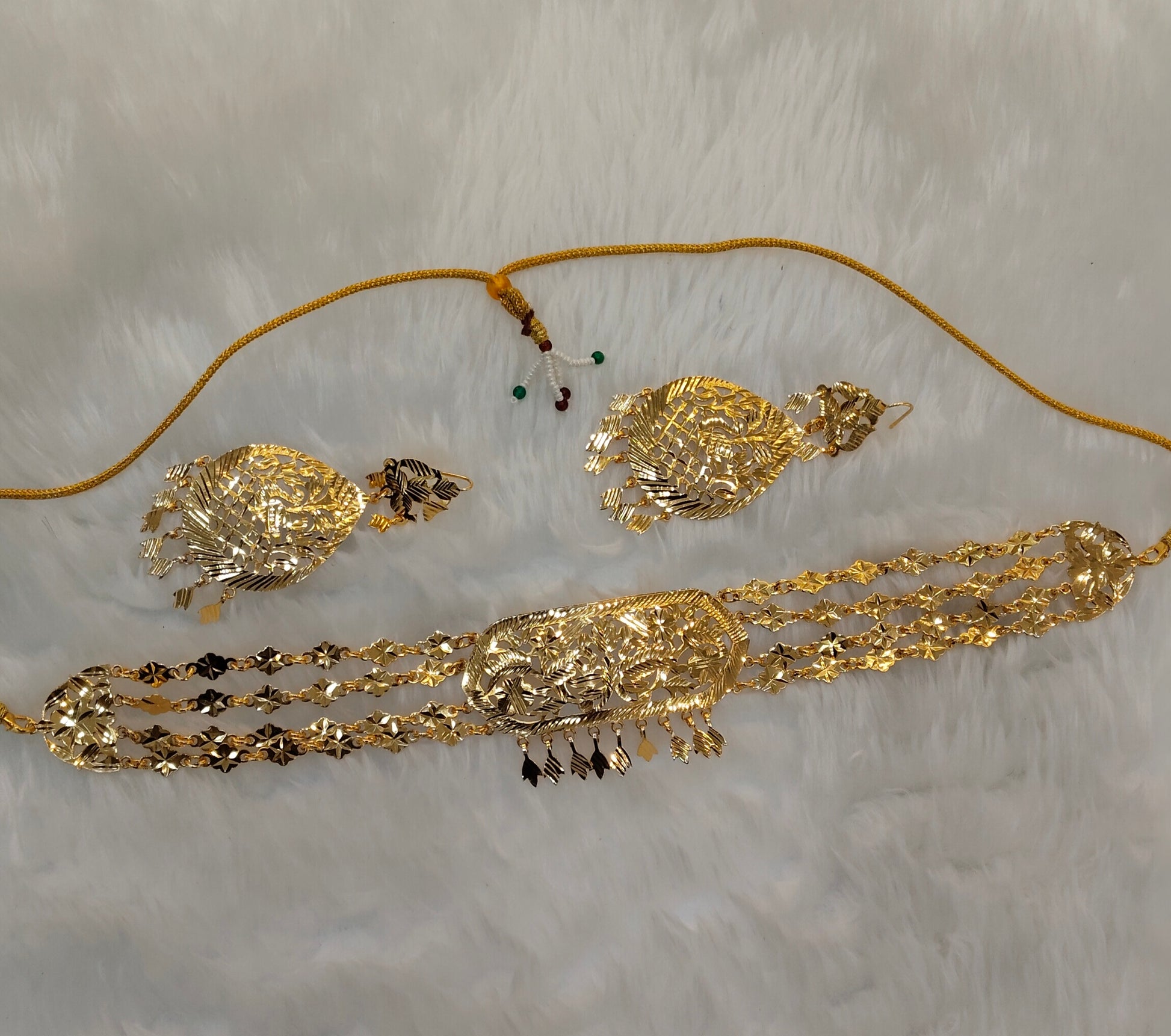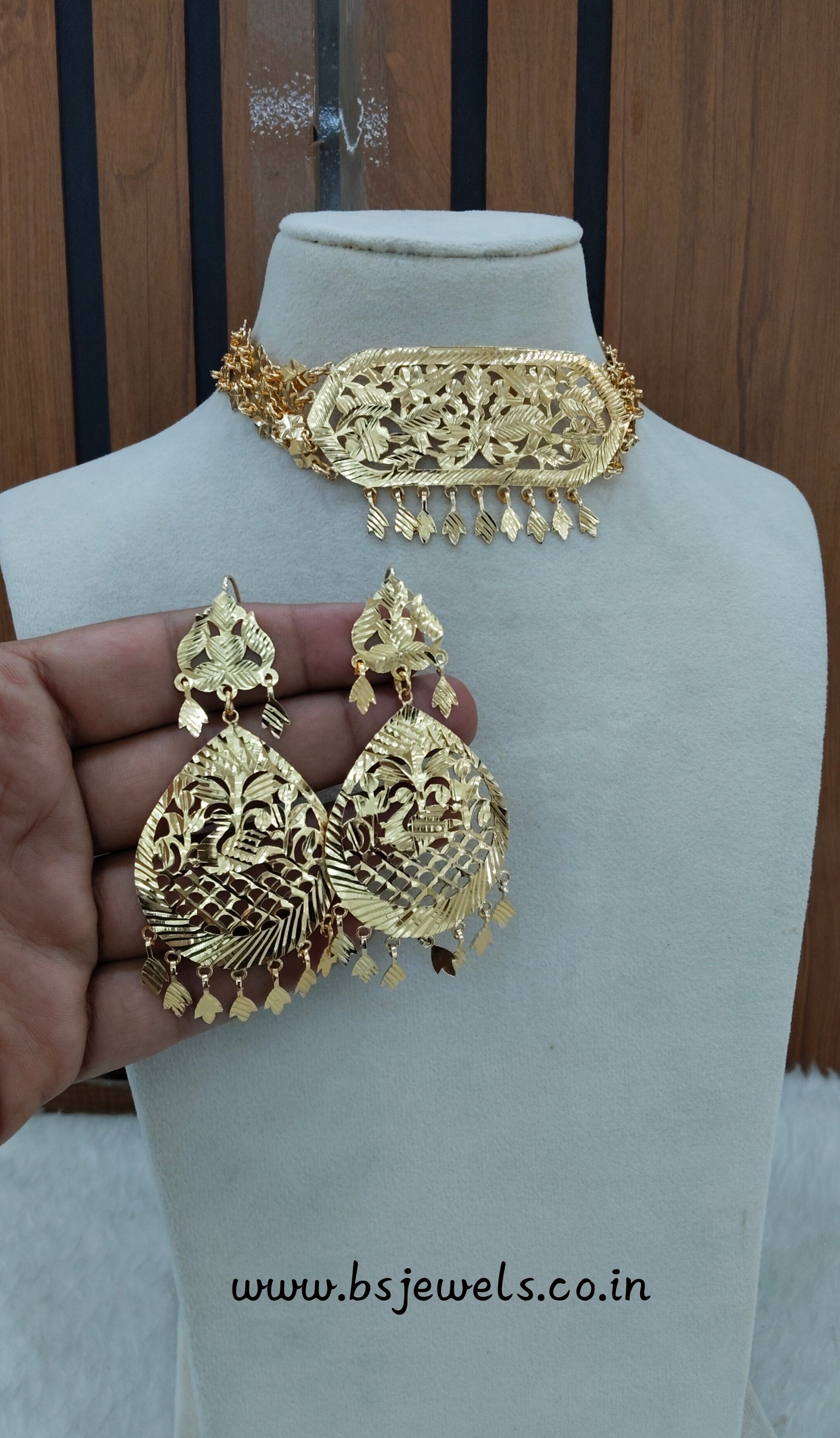 Gold Jadau Punjabi Style Patra Choker Jewellery Sultan Set