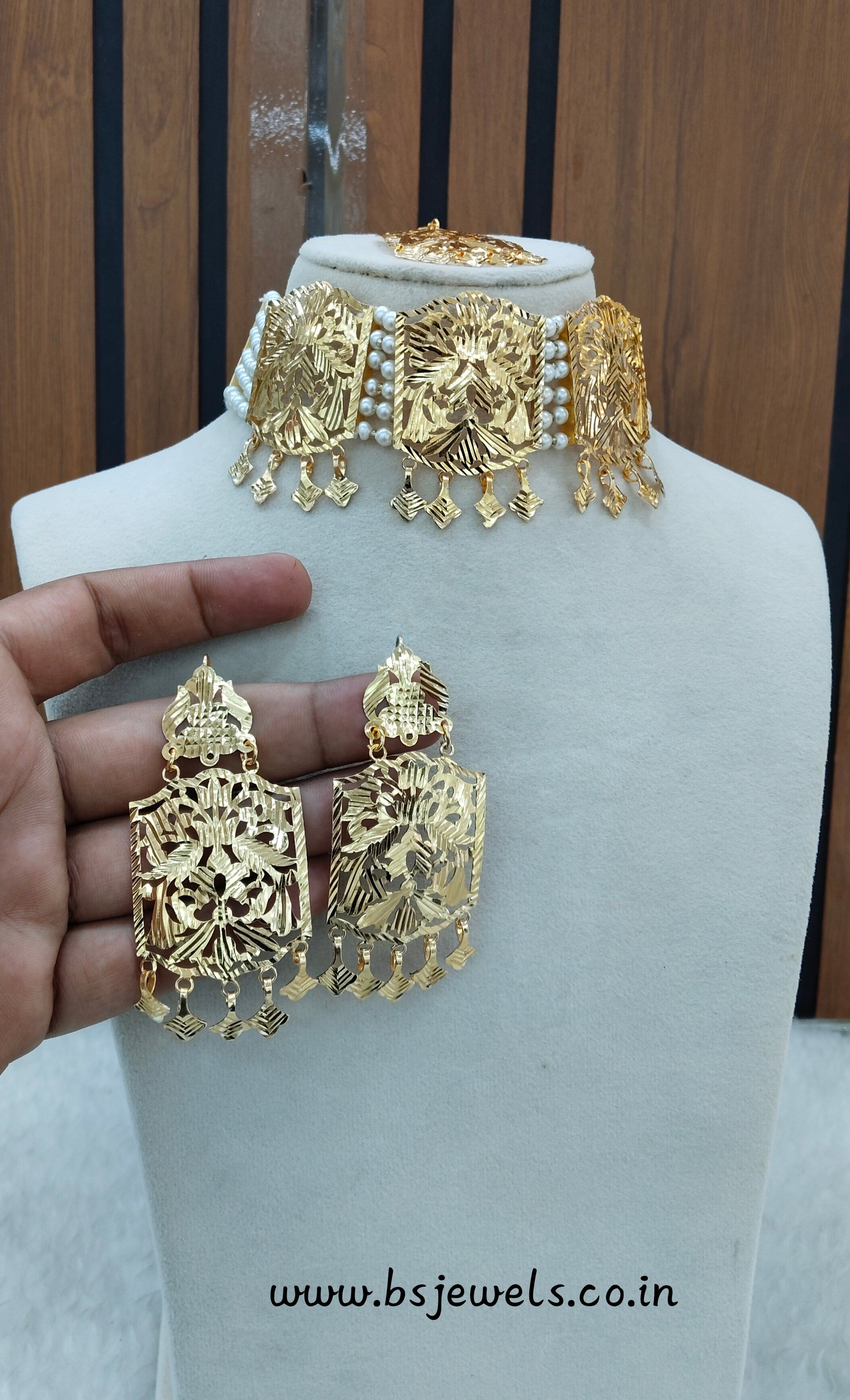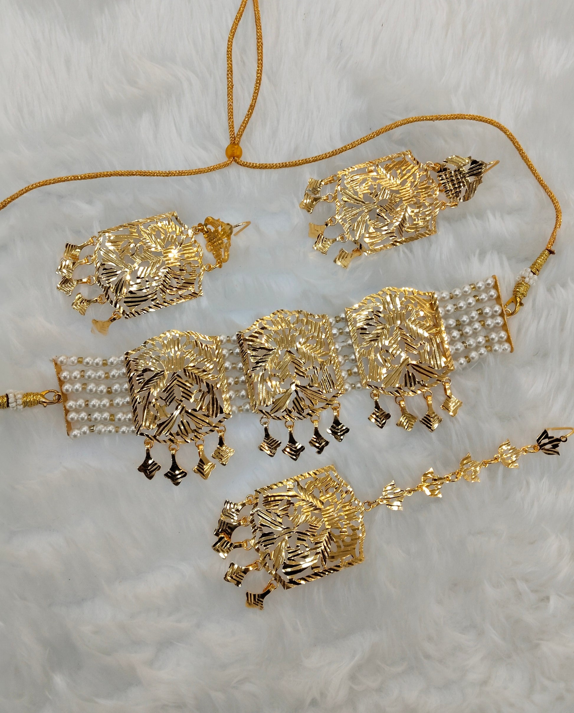 Gold Jadau Punjabi Style Patra Choker Jewellery Sultan Set