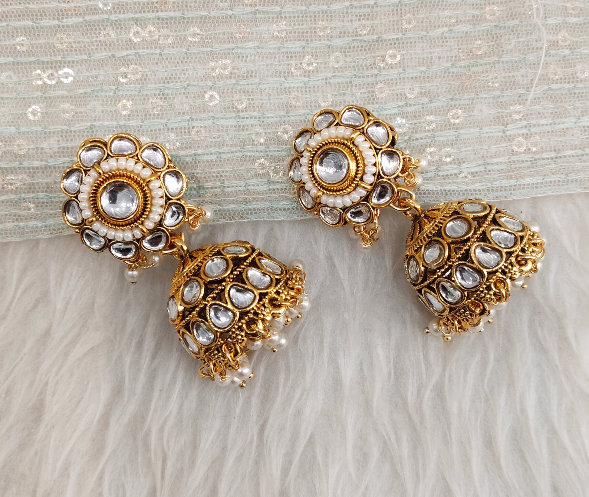 Gold Kundan Jhumki Bollywood Dev Earrings