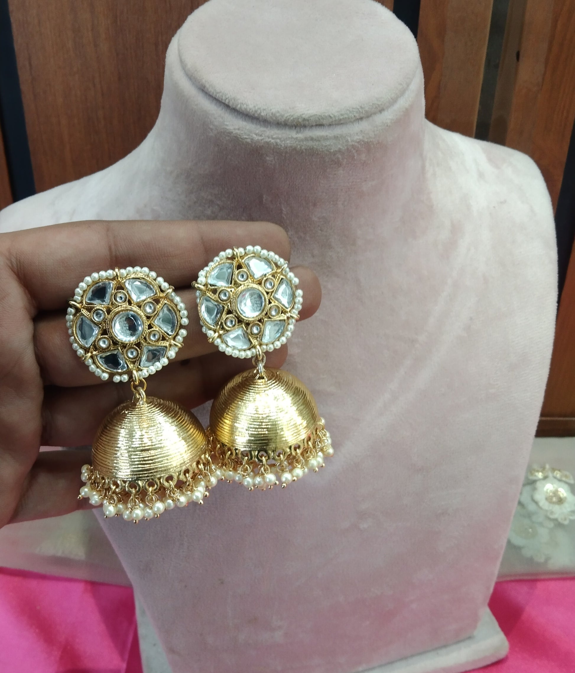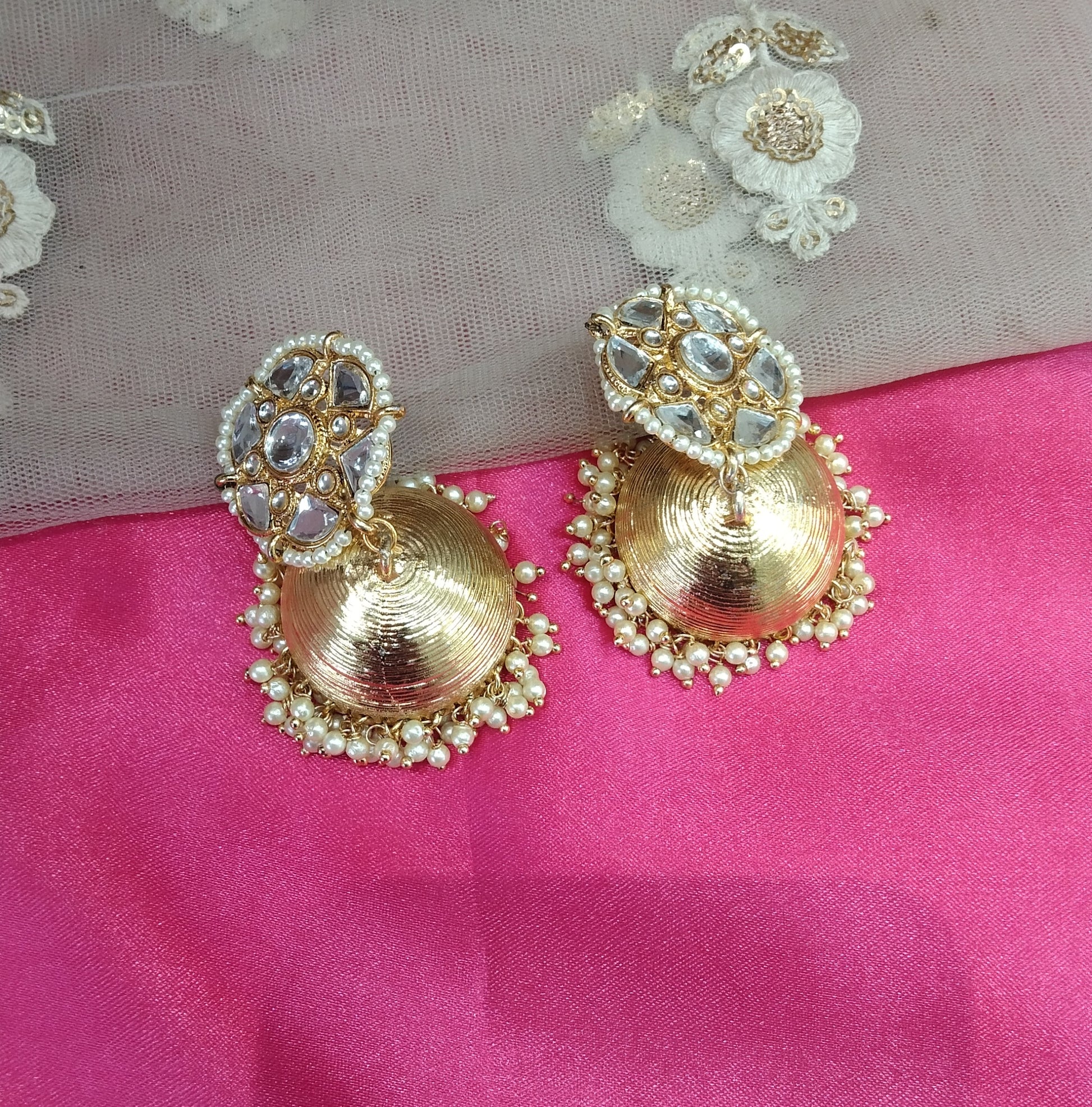 Gold Kundan Meenakari Jhumka Golden Bollywood Earrings