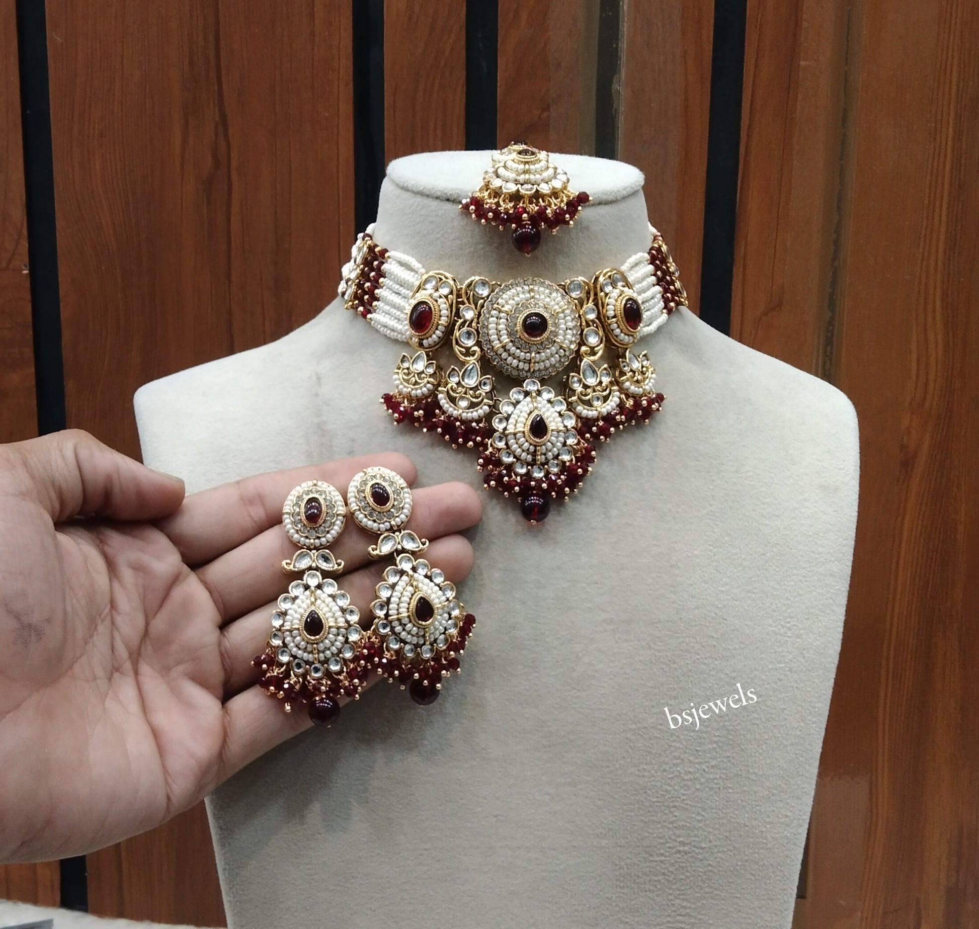 Gold Maroon Kundan necklace Set/ kundan Indian Rylan jewellery sets