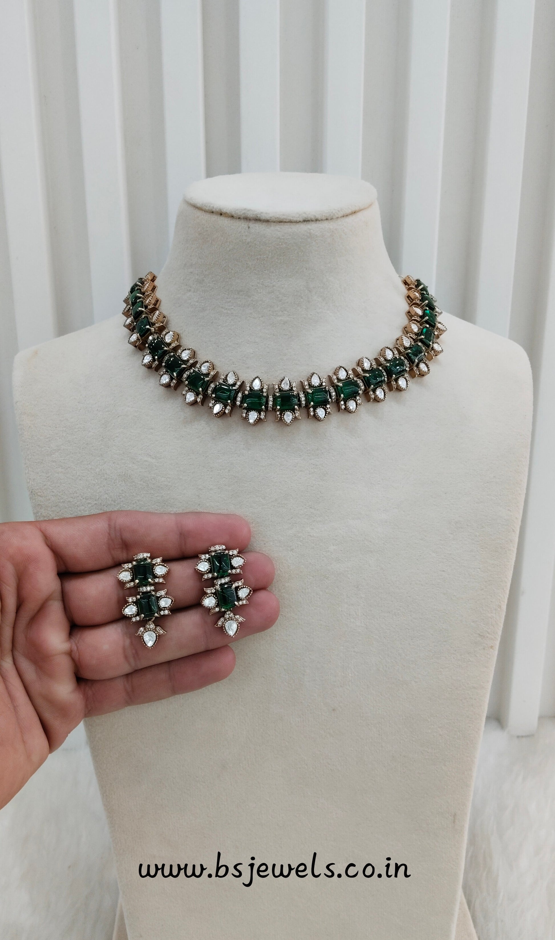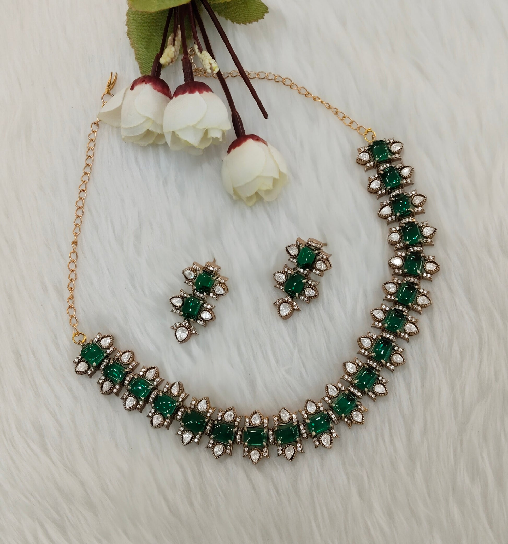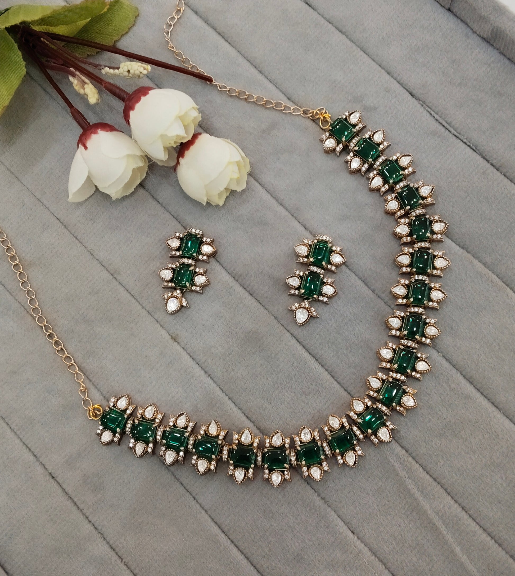 Green Gold Moissanite Kundan Necklace Jewellery Indofarm Set