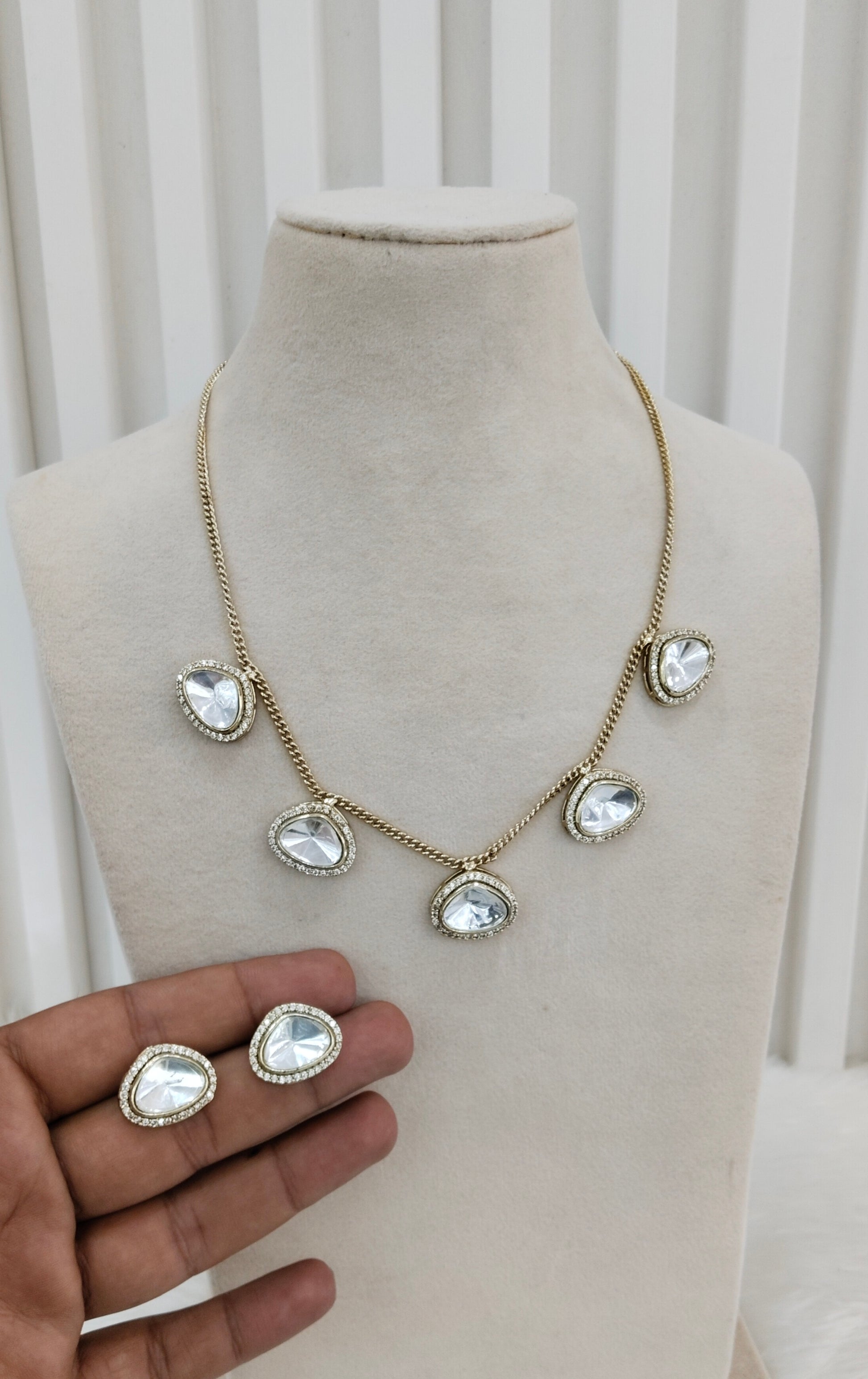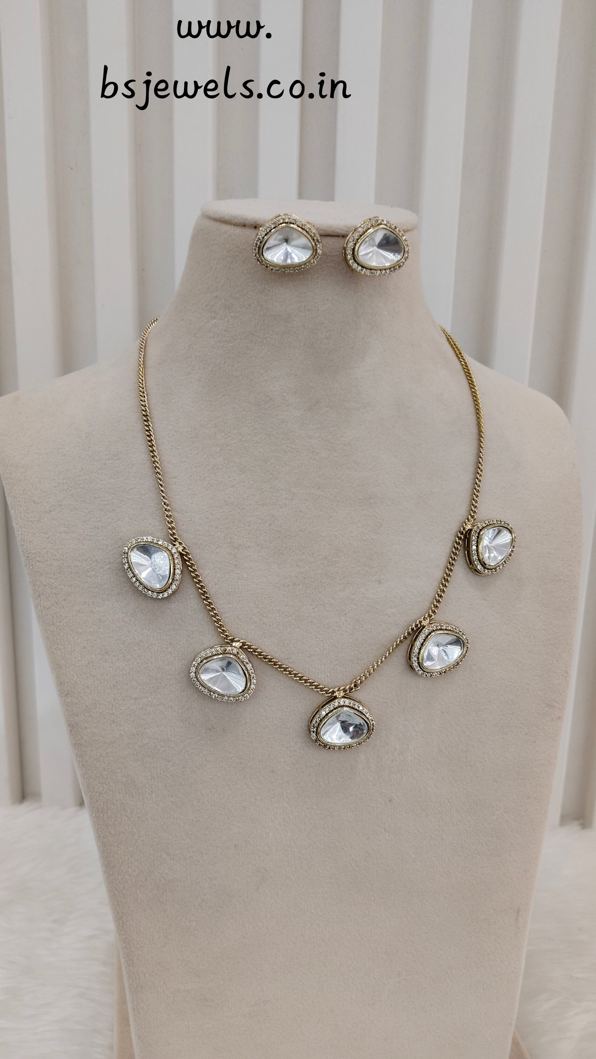 Gold Moissanite Kundan Necklace Jewellery Solis Set