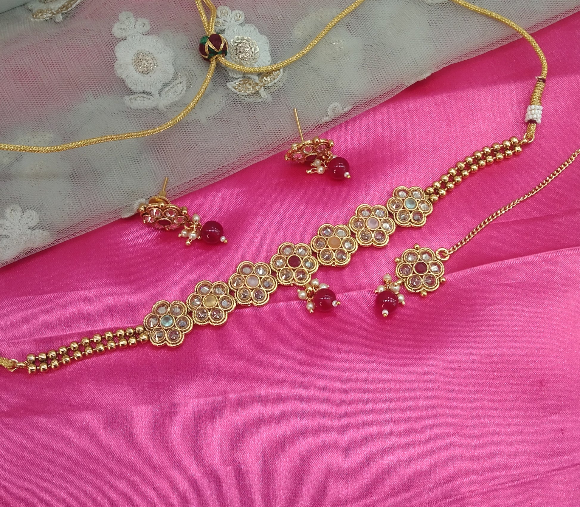 * Gold Finish Polki Choker Set with earrings as shown in the pic.