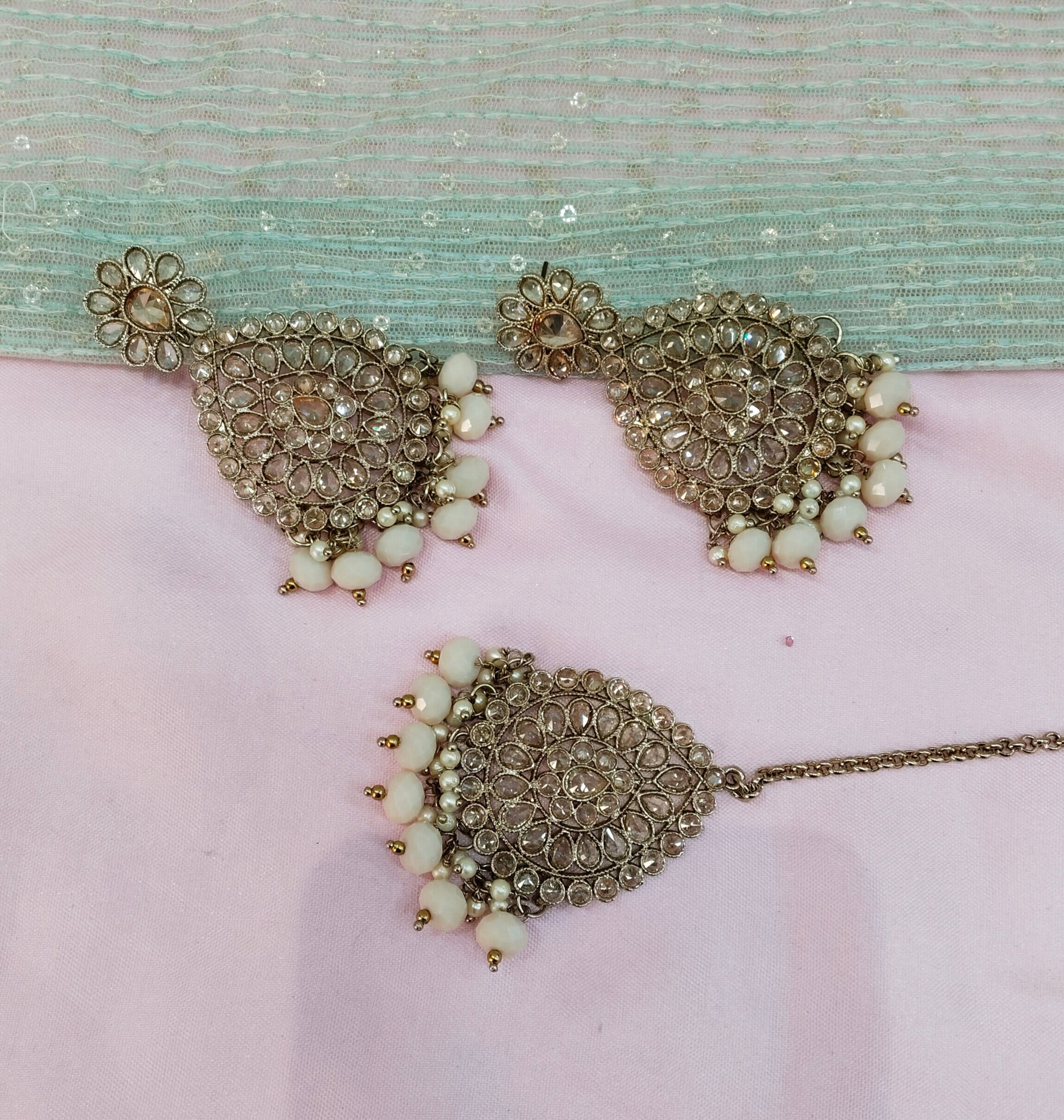 Gold Pink Bollywood Rohit Earrings Tikka Set