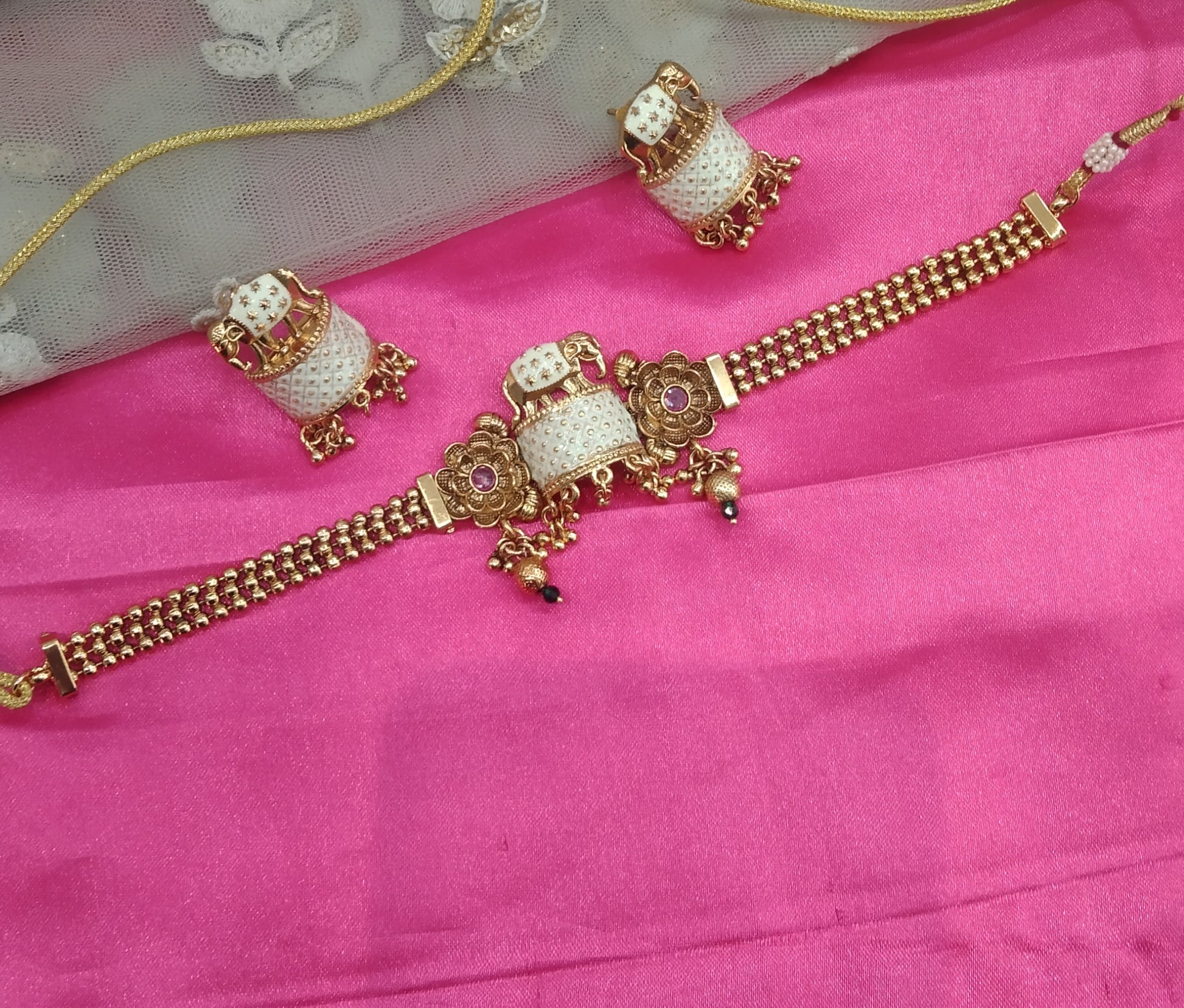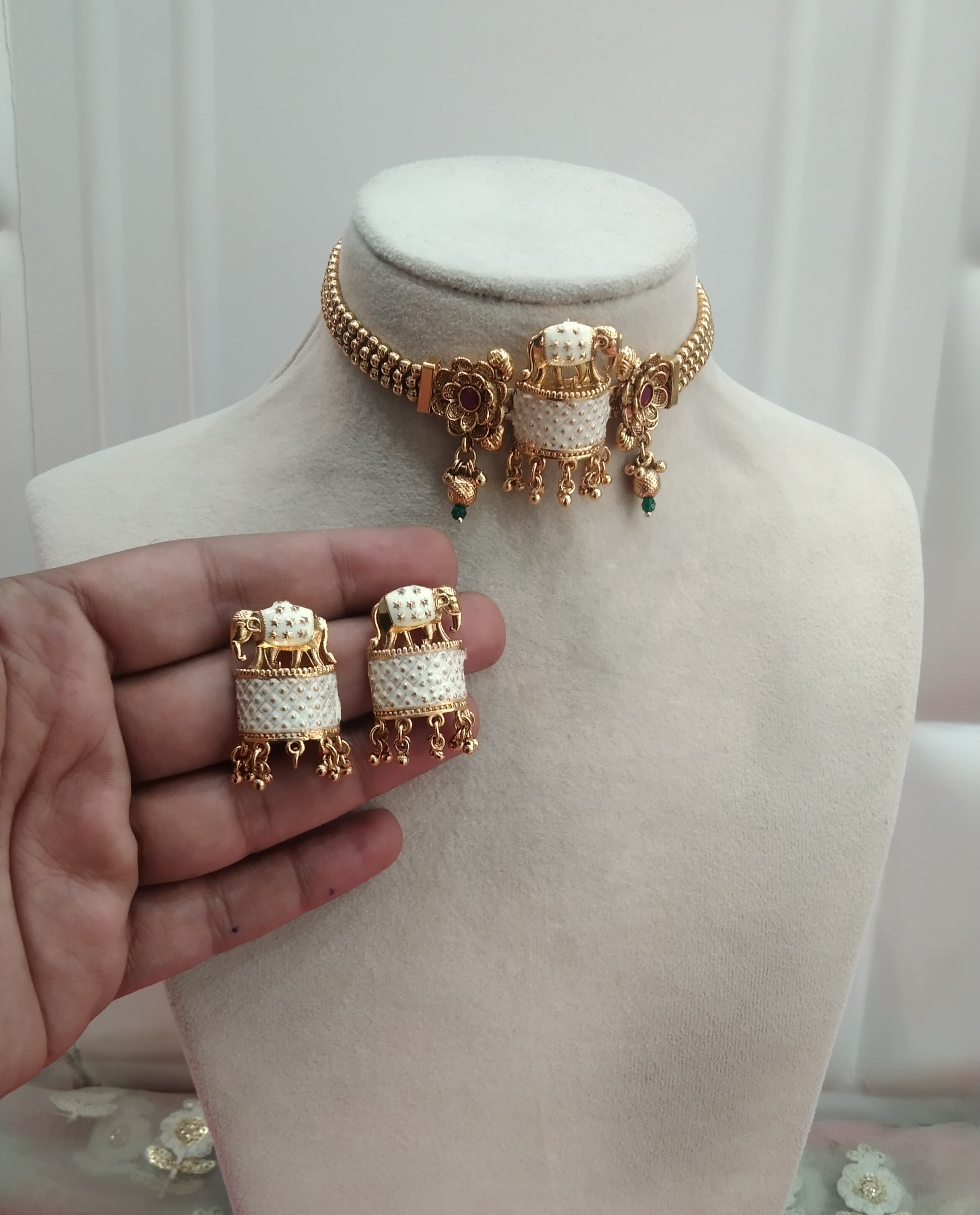 * Gold Finish Polki Choker Set with earrings as shown in the pic.