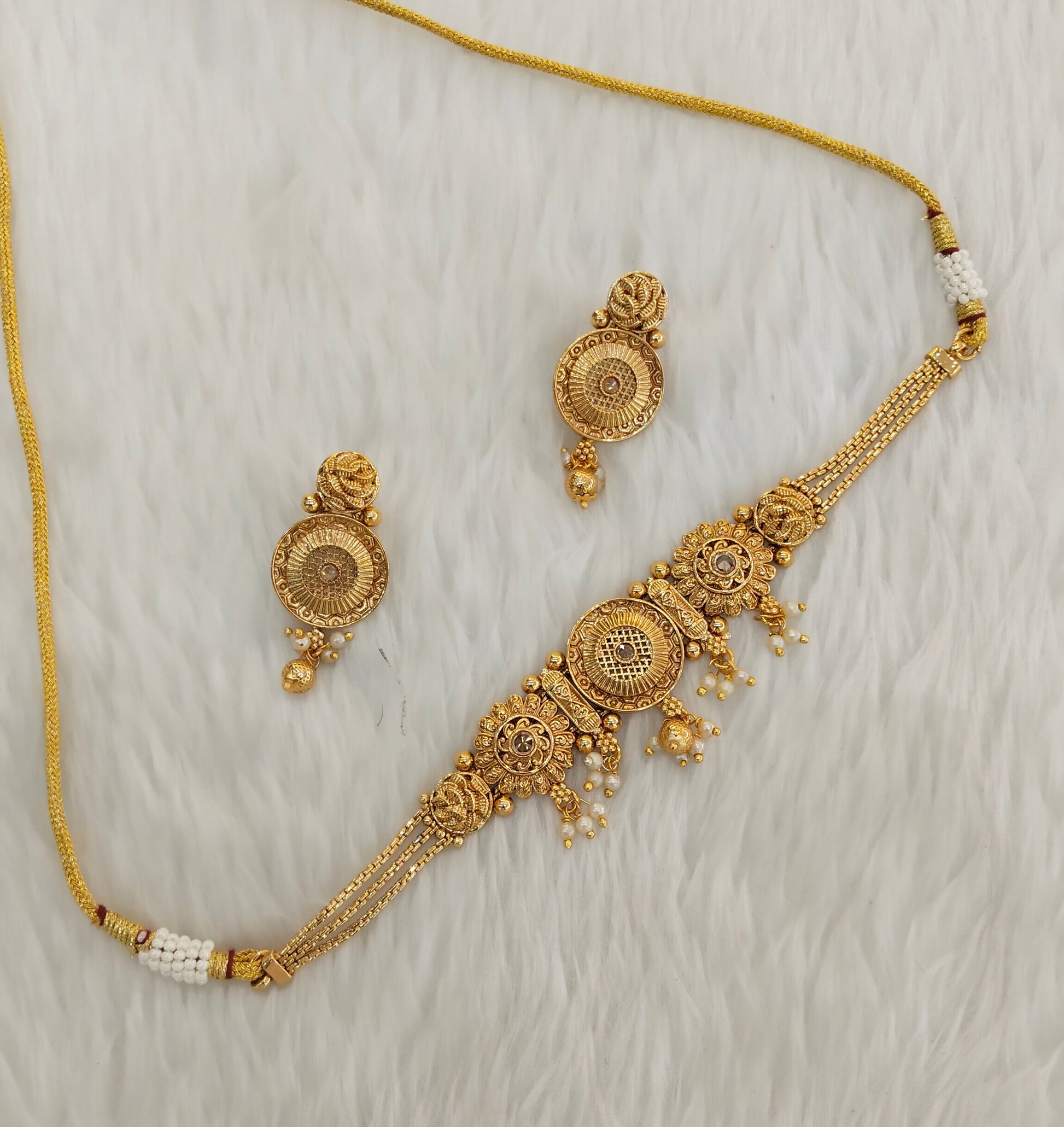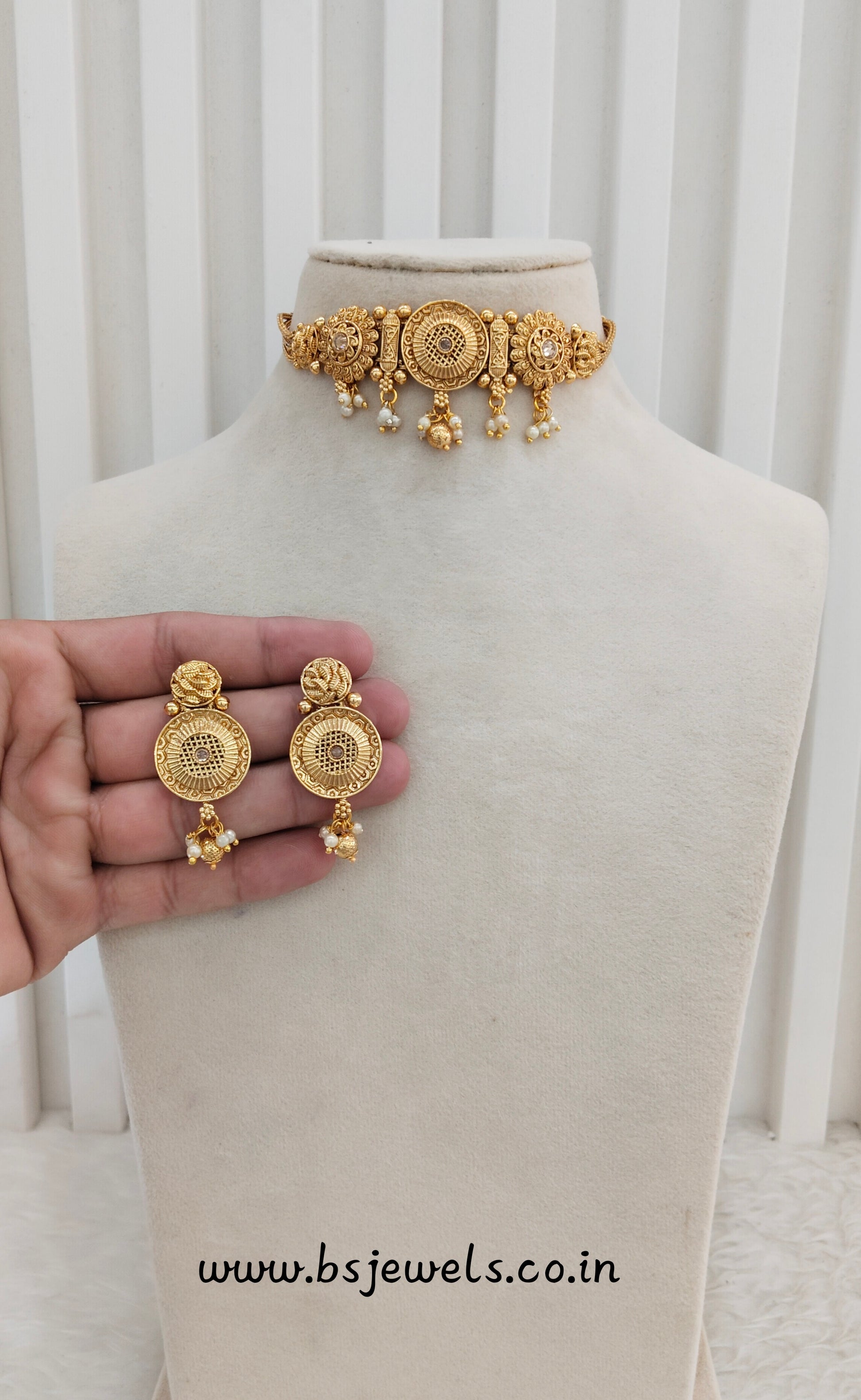 * Gold Finish Polki Choker Set with earrings as shown in the pic.