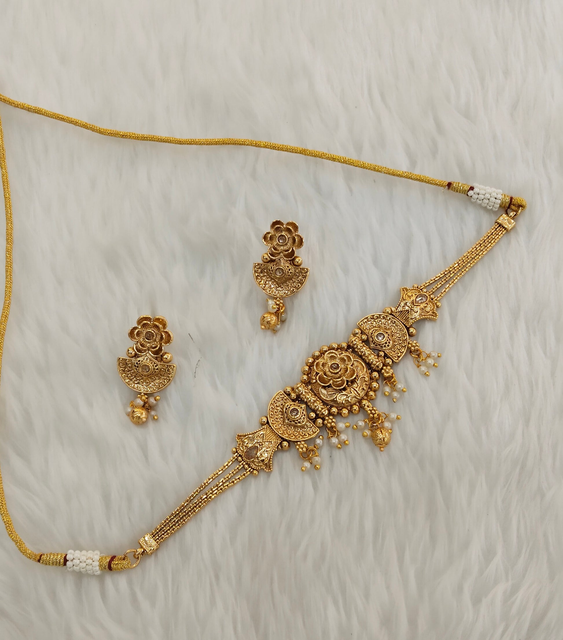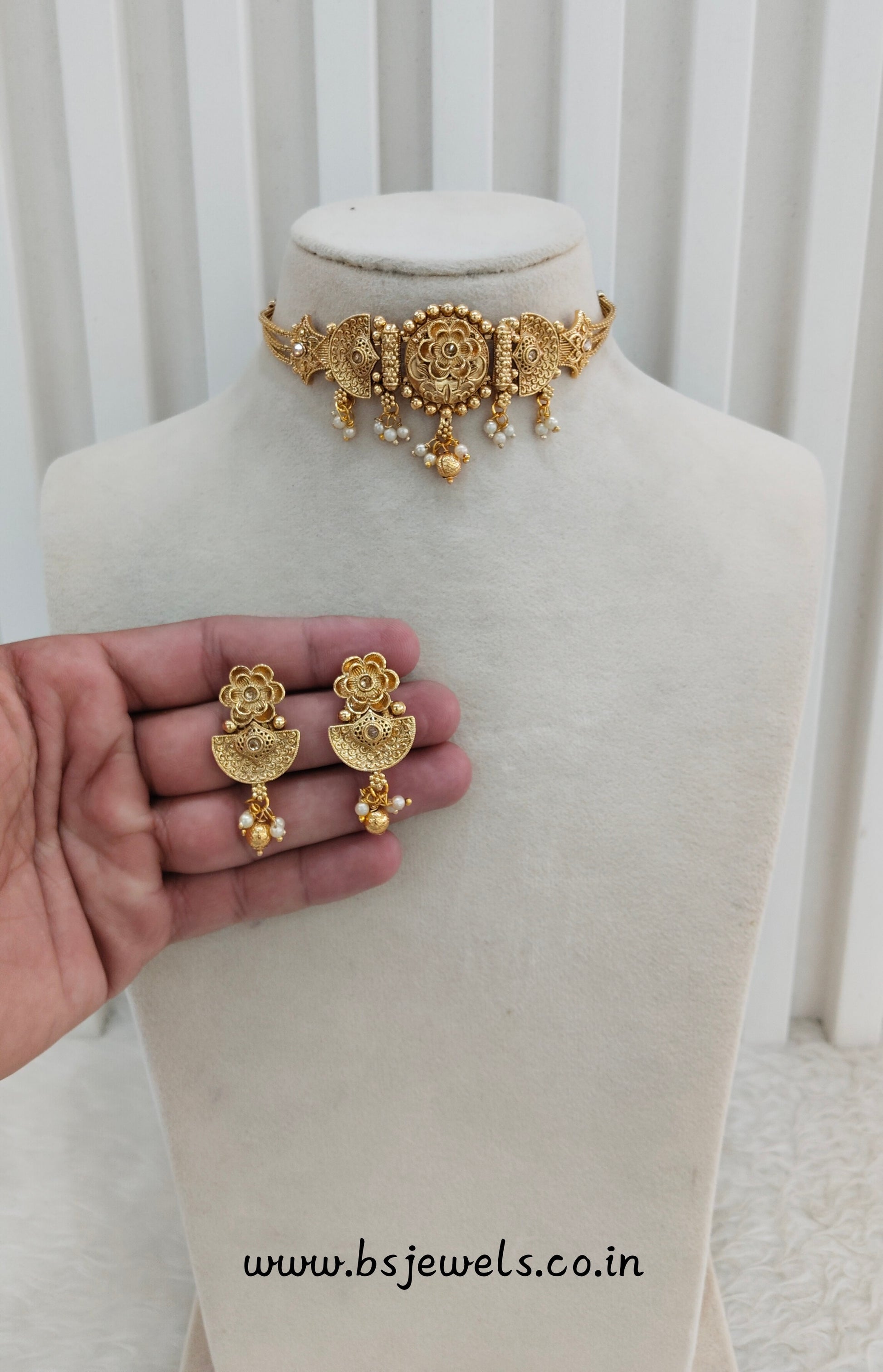 * Gold Finish Polki Choker Set with earrings as shown in the pic.