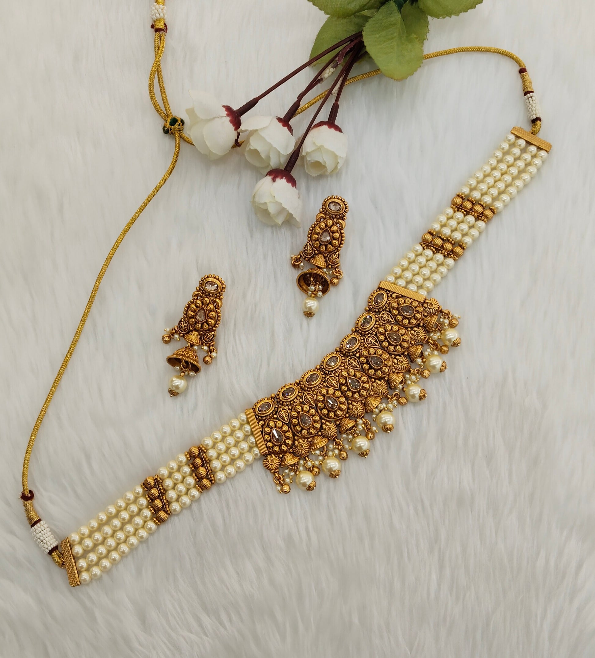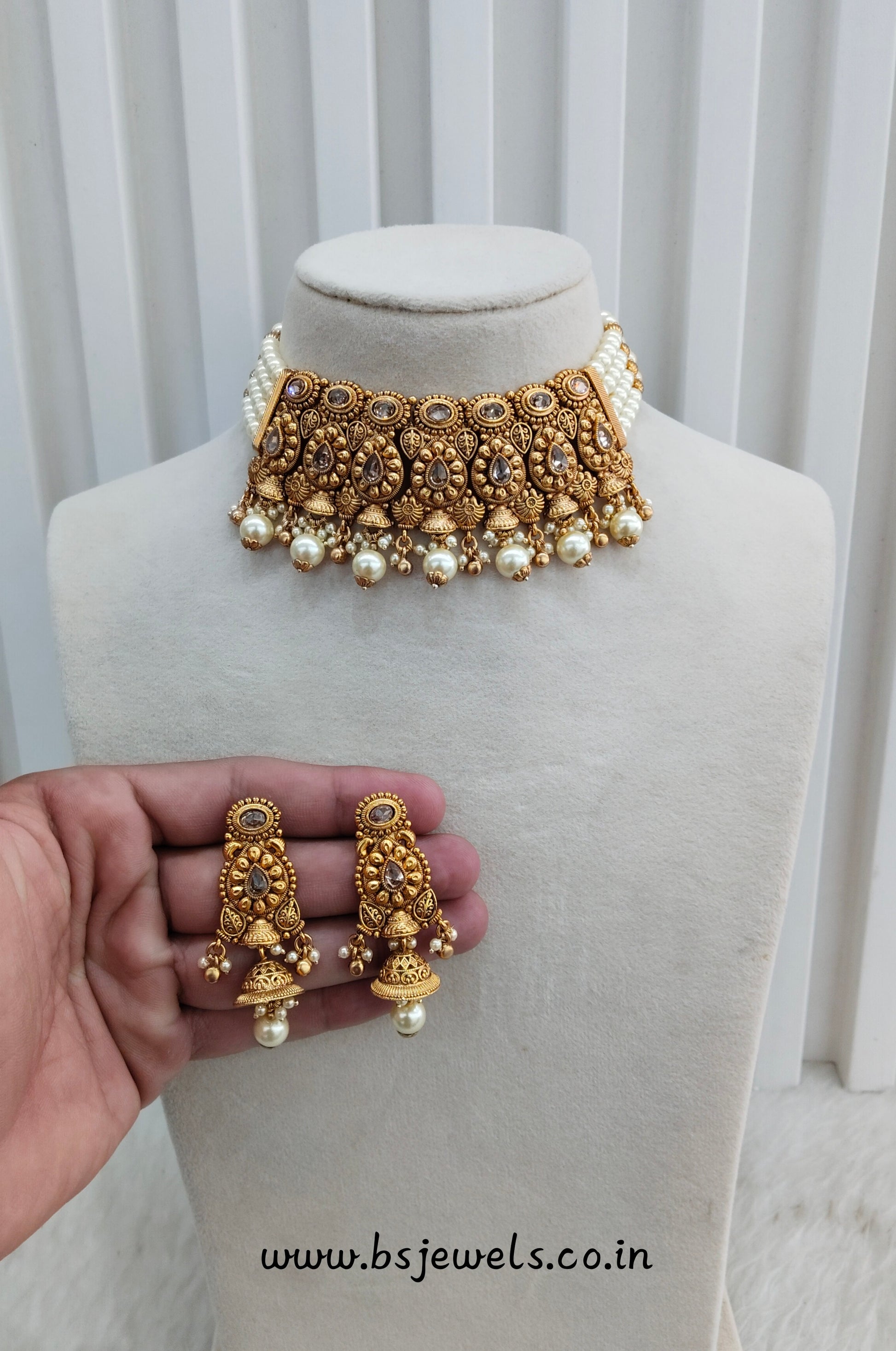 * Gold Finish Polki Choker Set with earrings as shown in the pic.