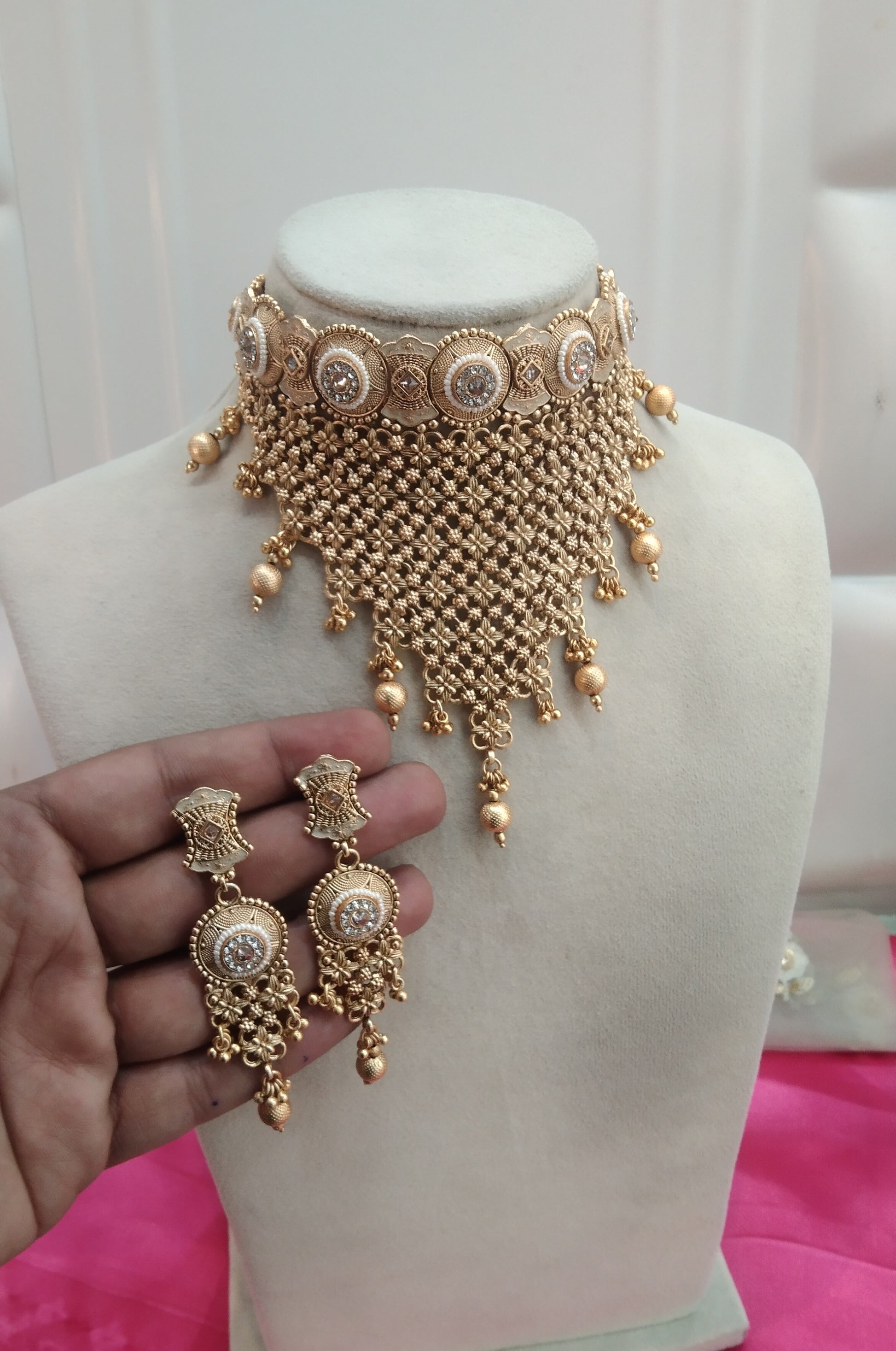 * Gold Finish Polki Choker Set with earrings as shown in the pic.