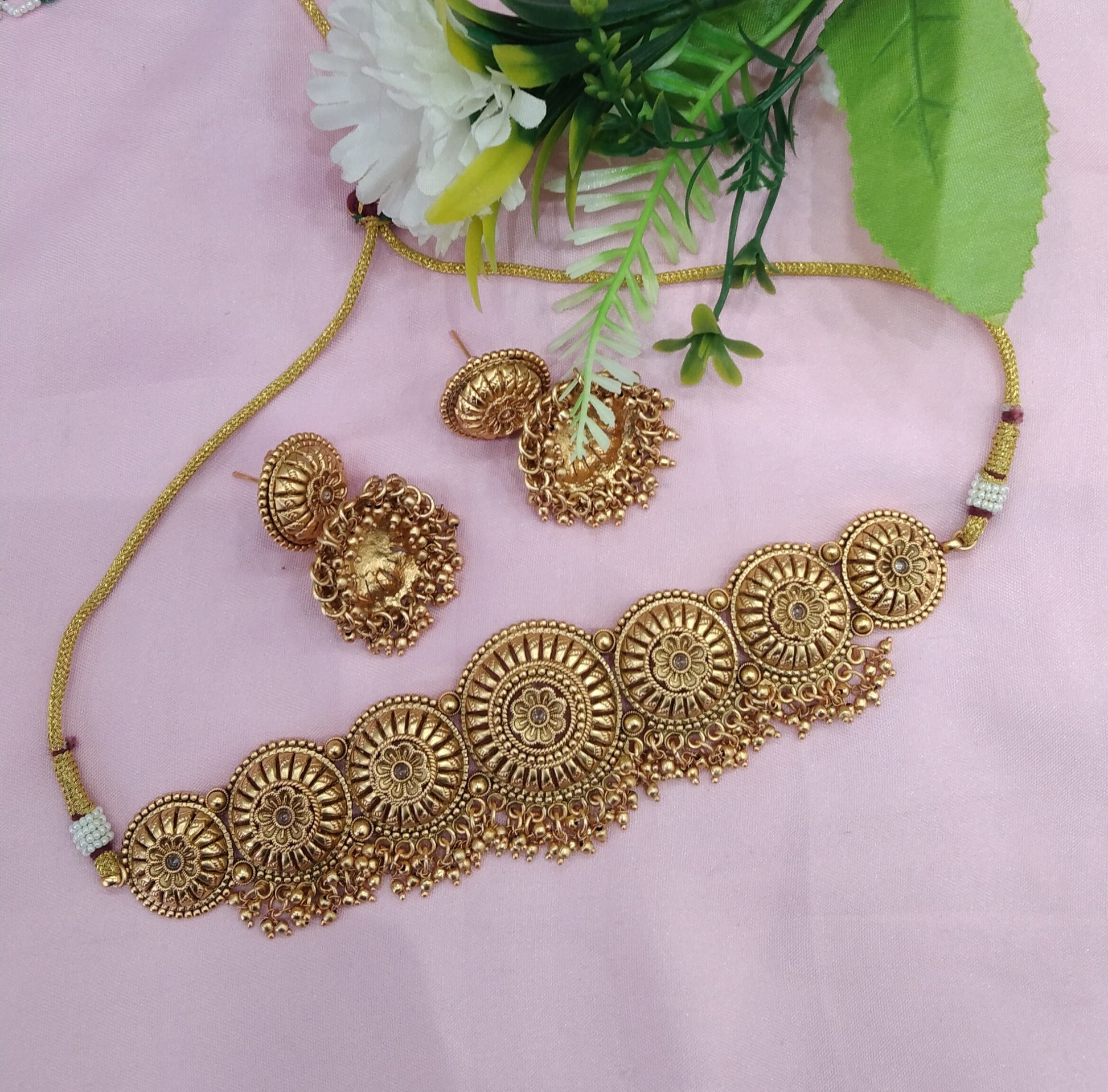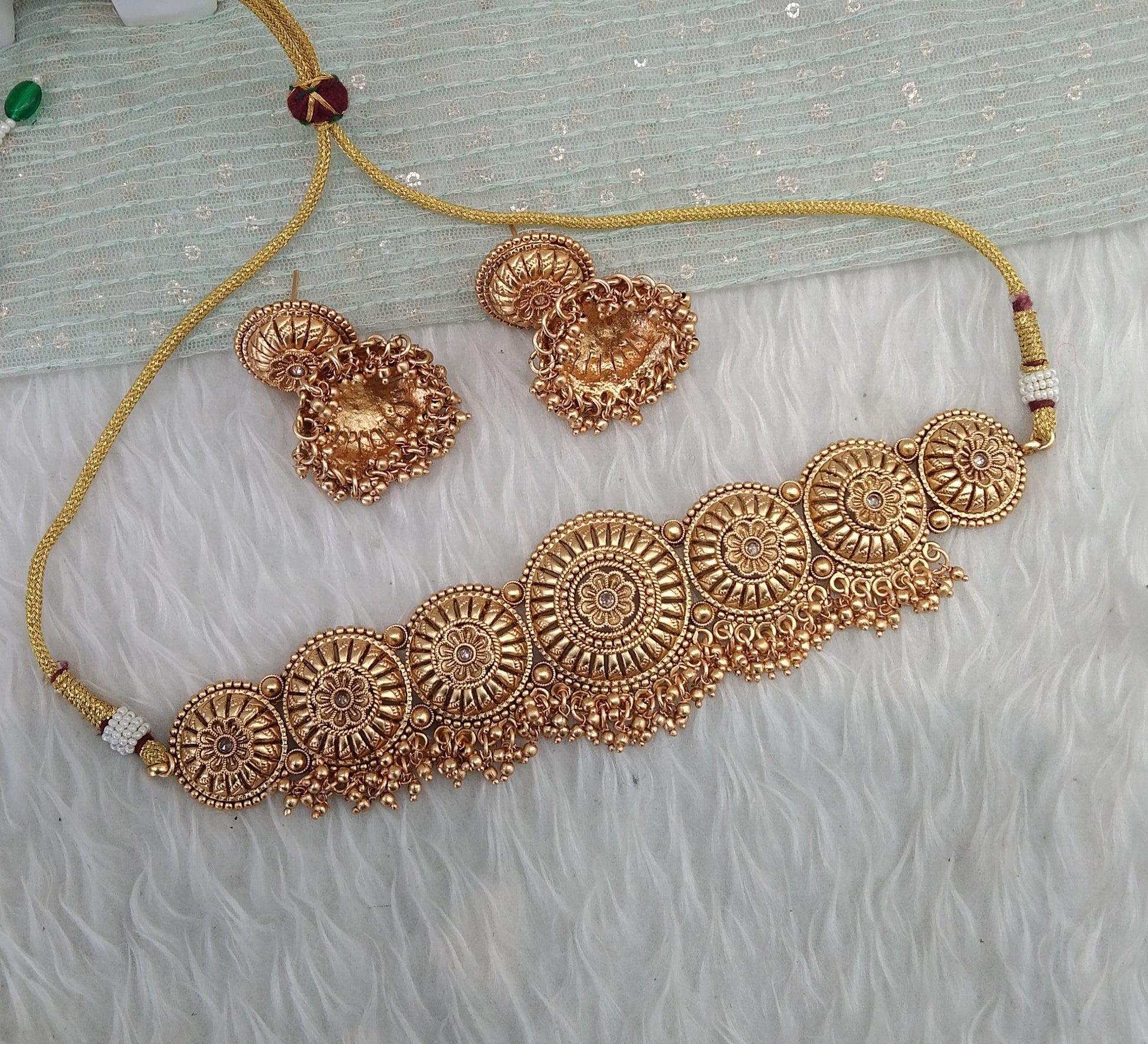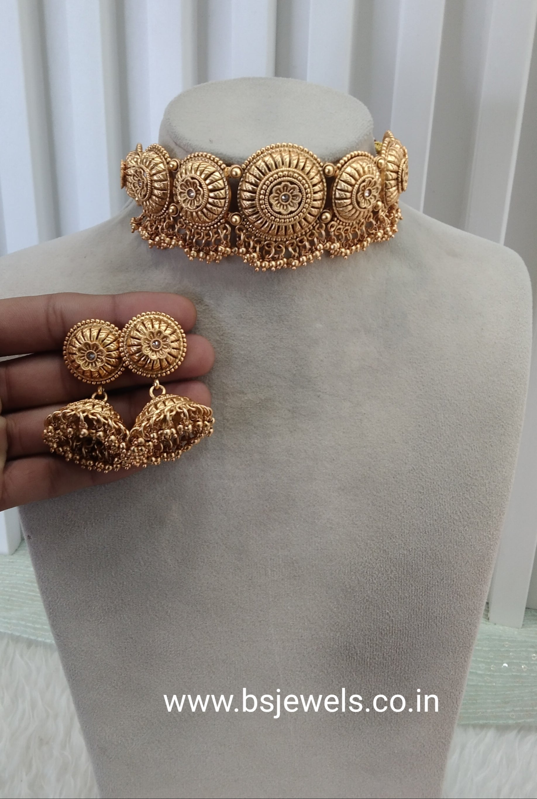 * Gold Finish Polki Choker Set with earrings as shown in the pic.