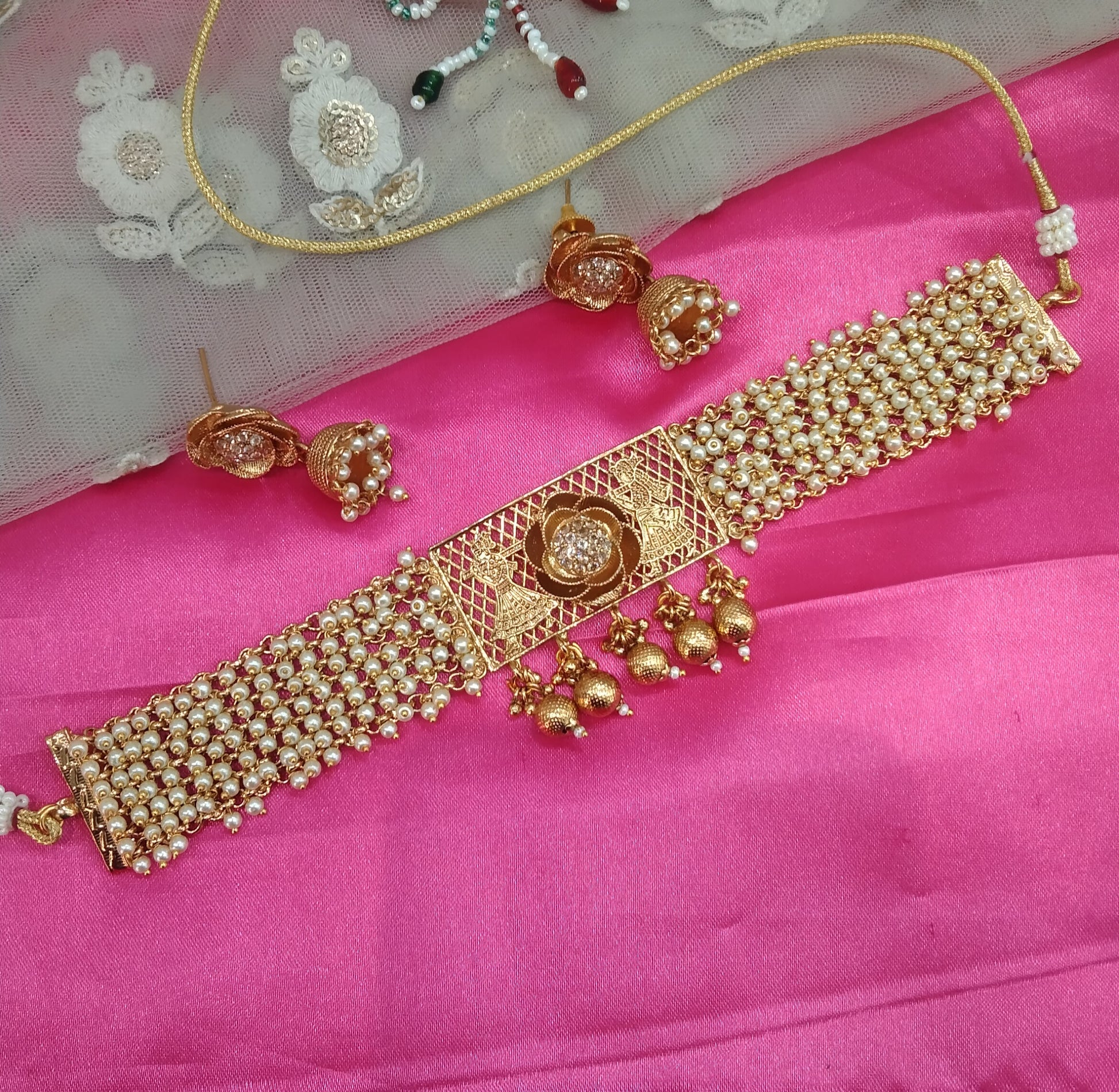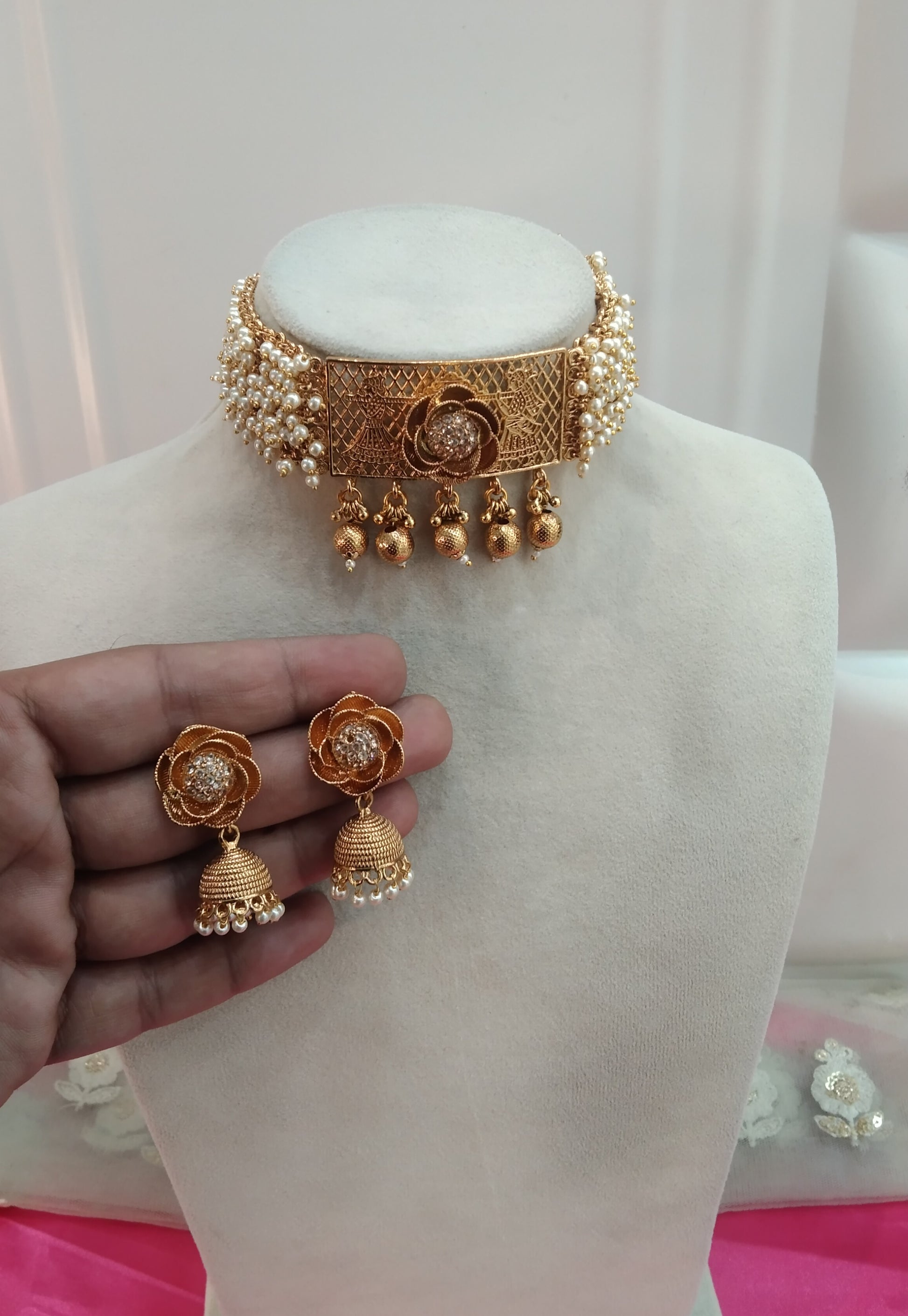 * Gold Finish Polki Choker Set with earrings as shown in the pic.