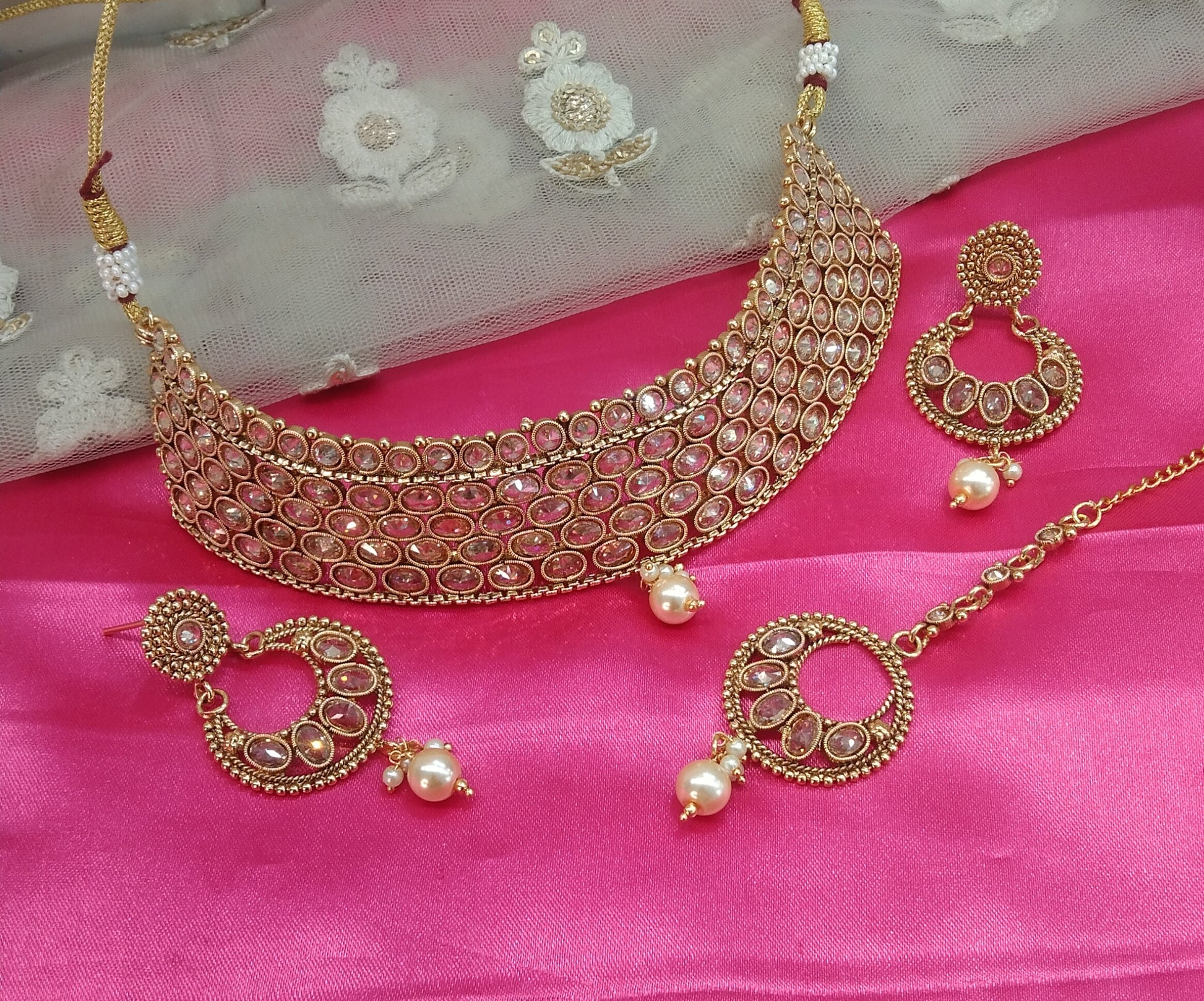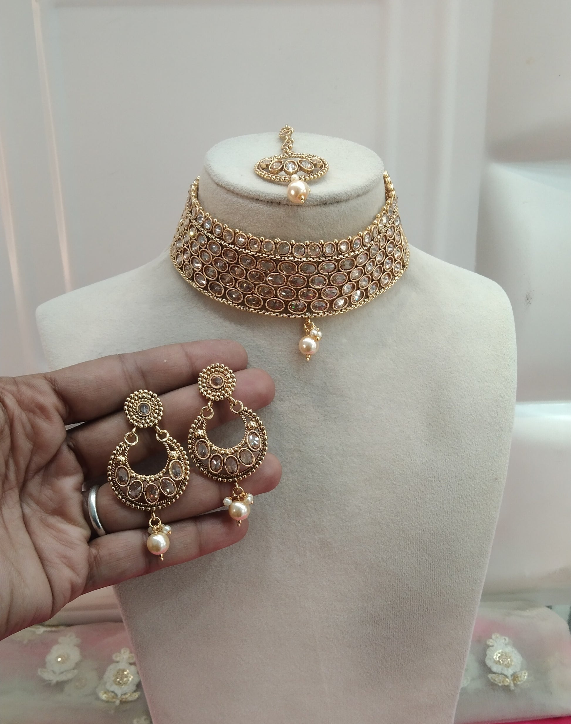 * Gold Finish Polki Choker Set with earrings as shown in the pic.