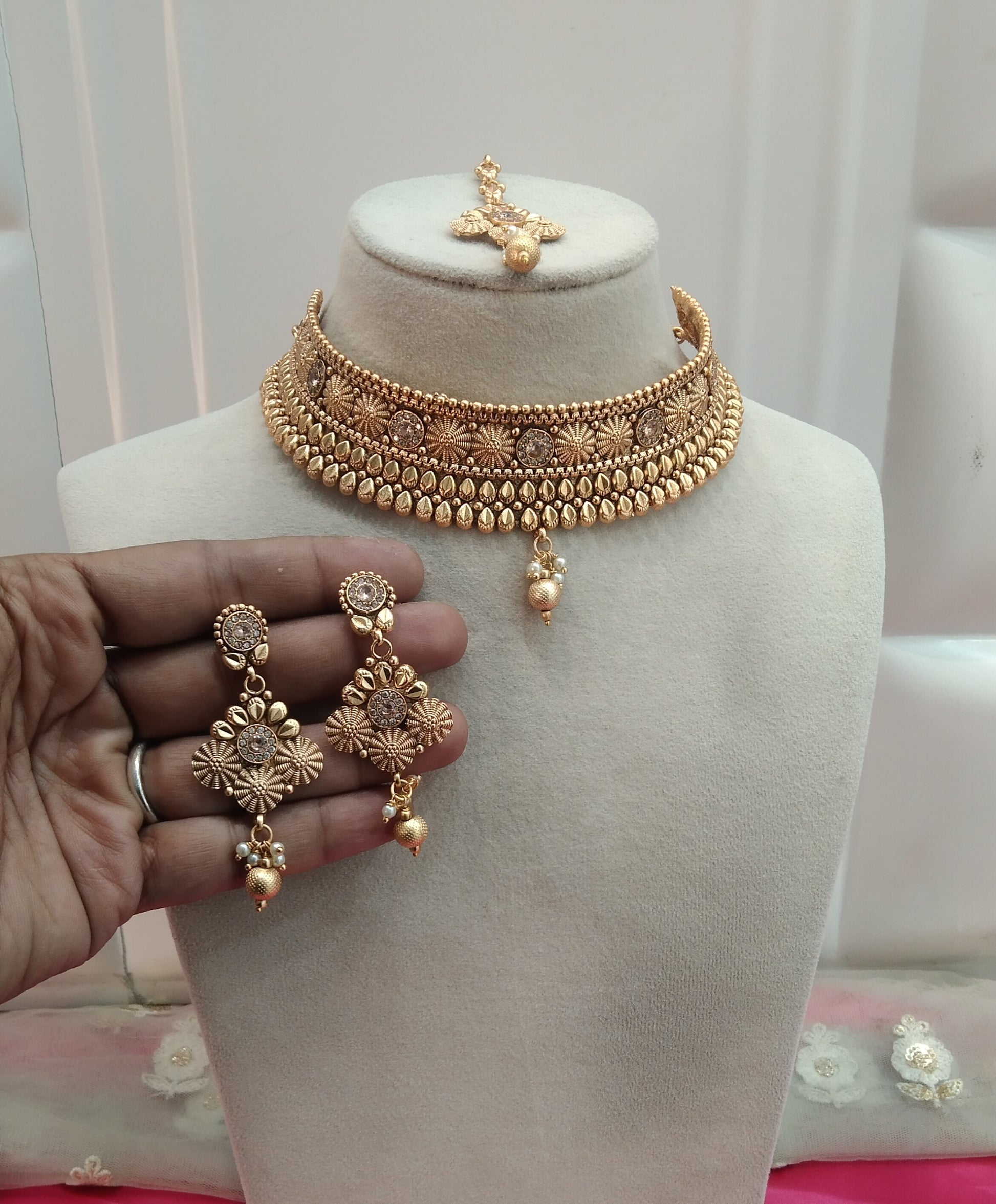 * Gold Finish Polki Choker Set with earrings as shown in the pic.