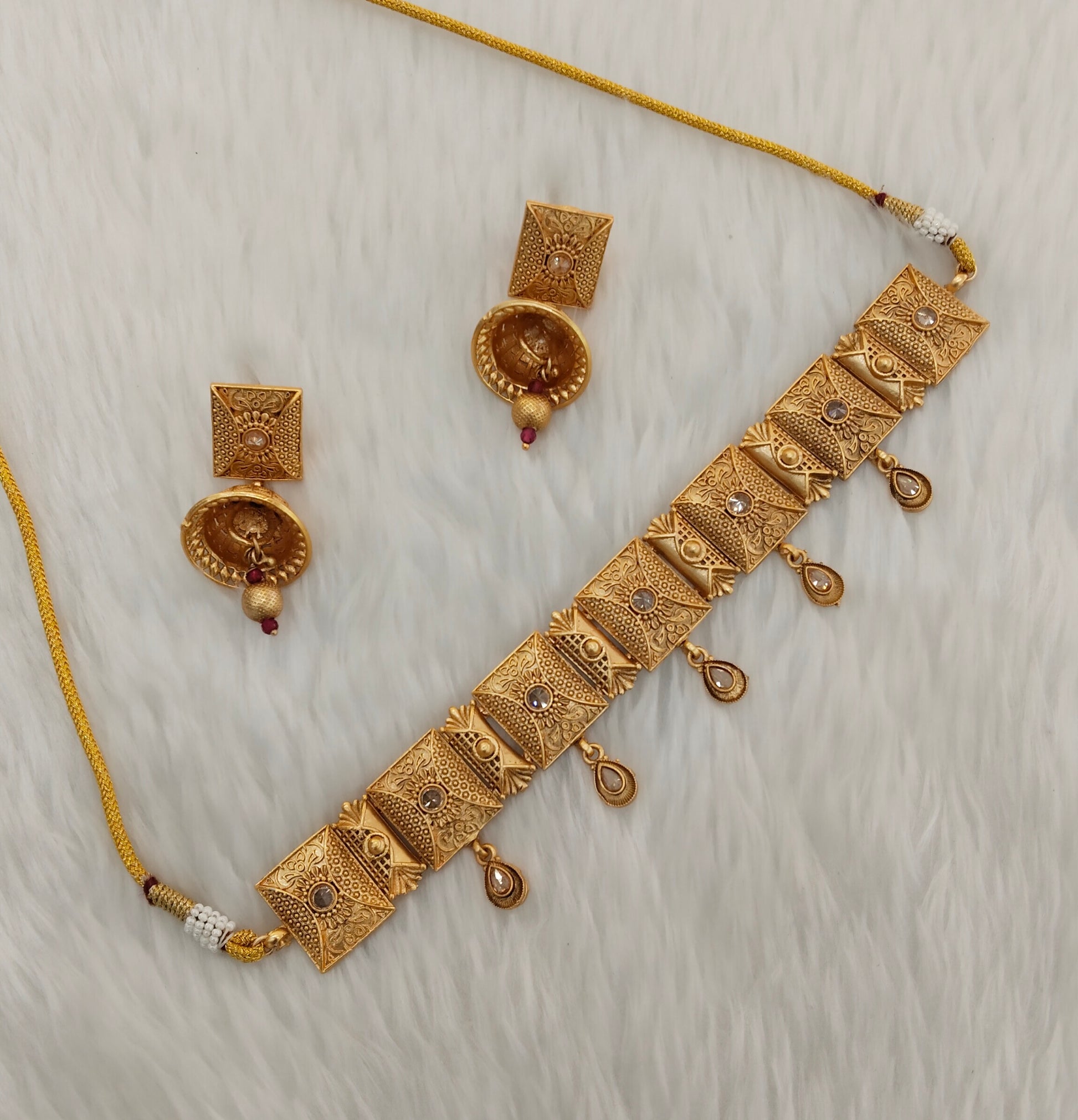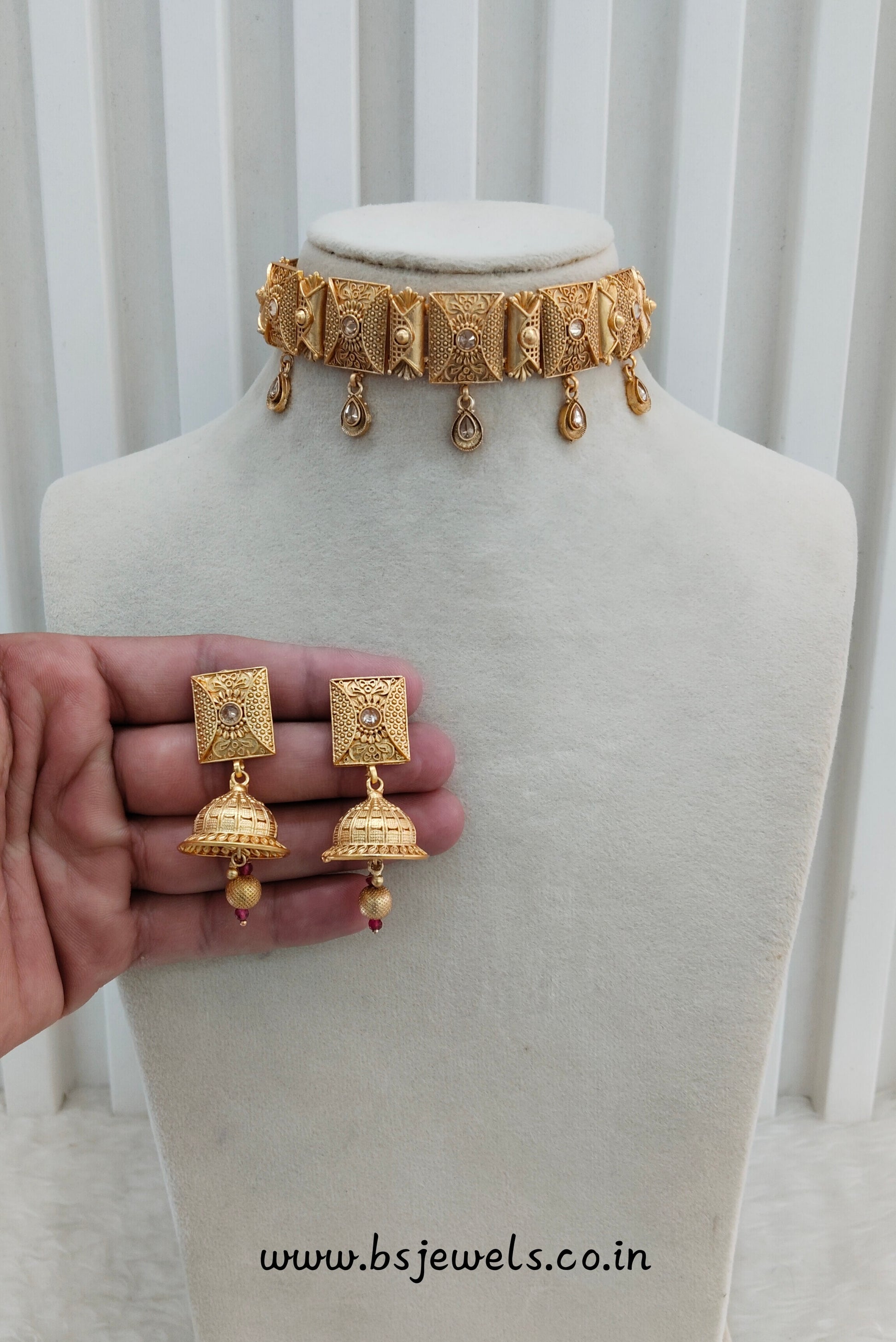 * Gold Finish Polki Choker Set with earrings as shown in the pic.