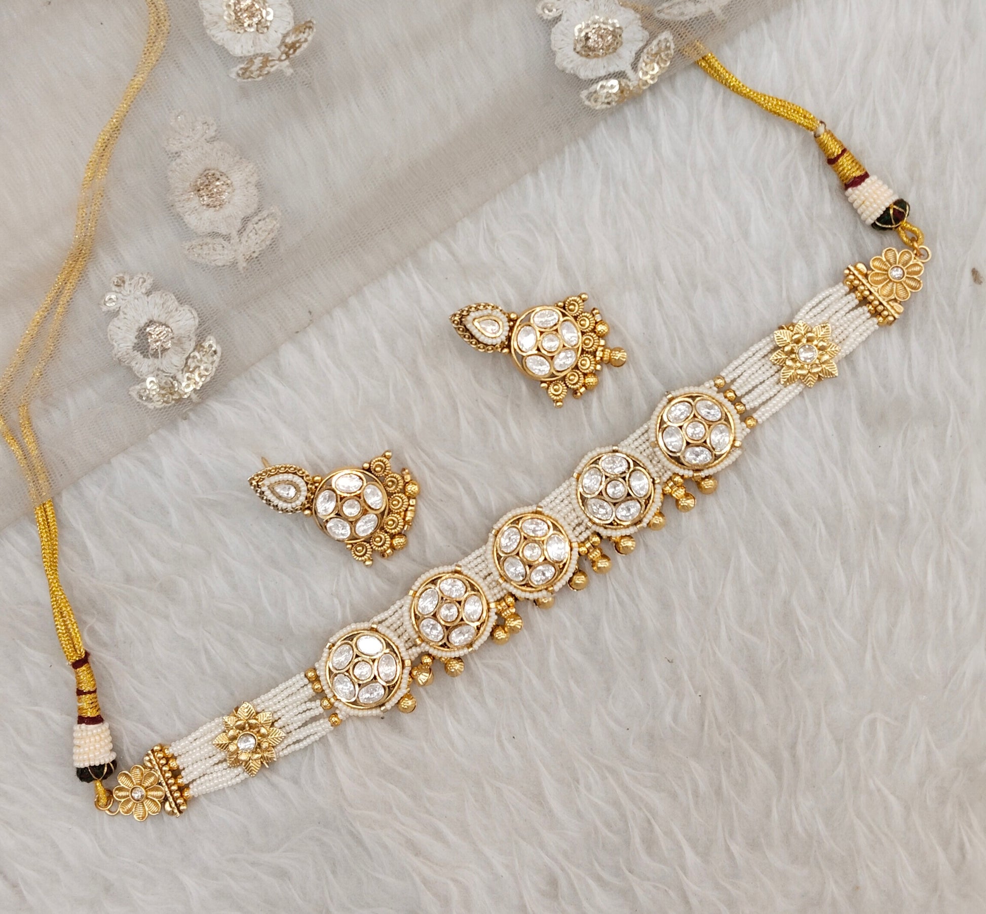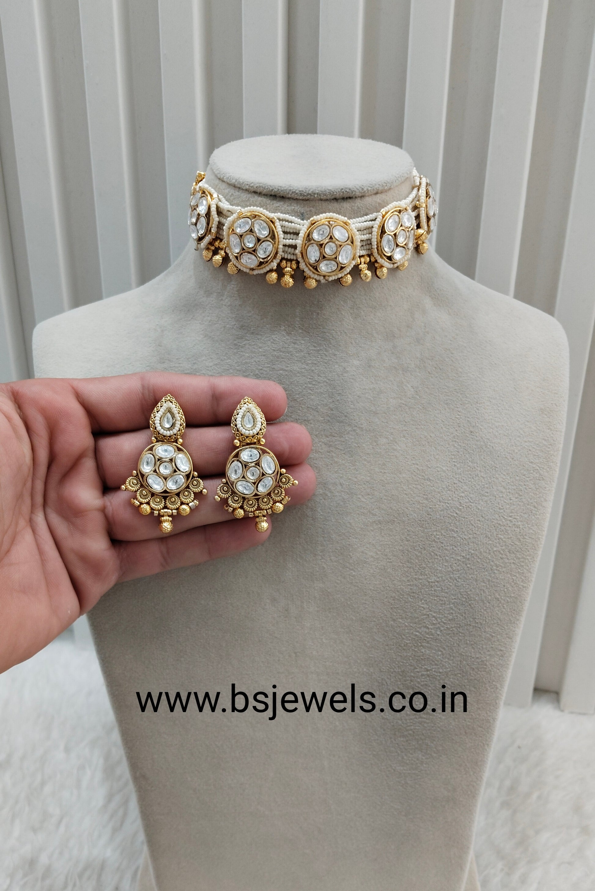 * Gold Finish Polki Choker Set with earrings as shown in the pic.