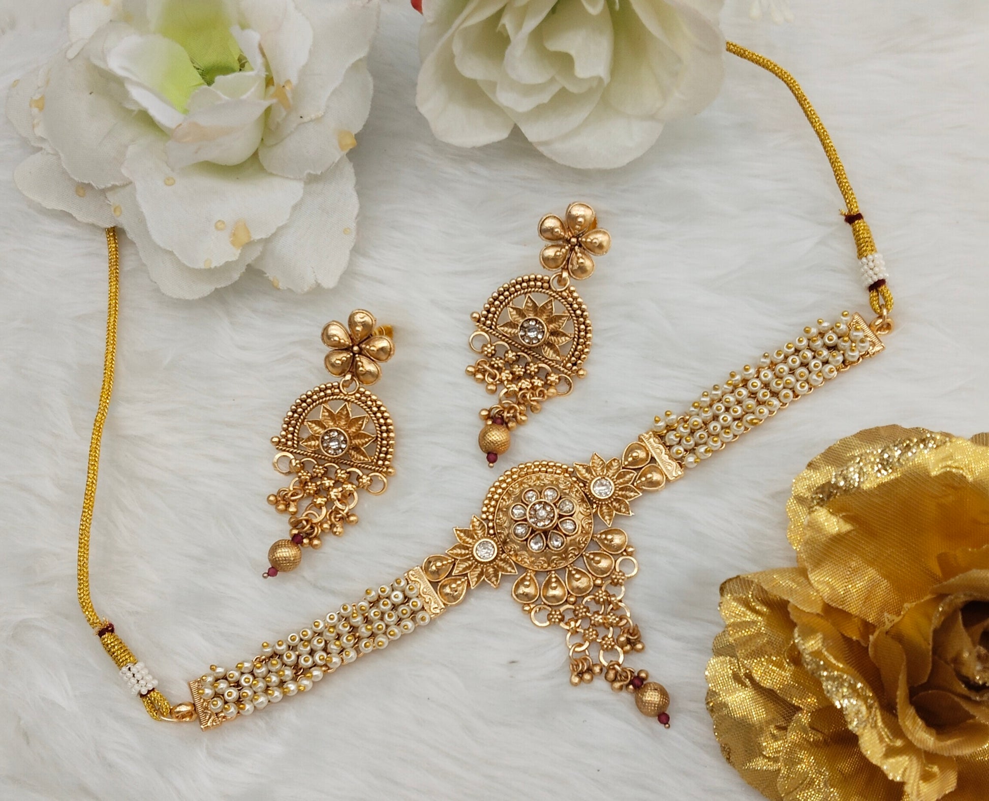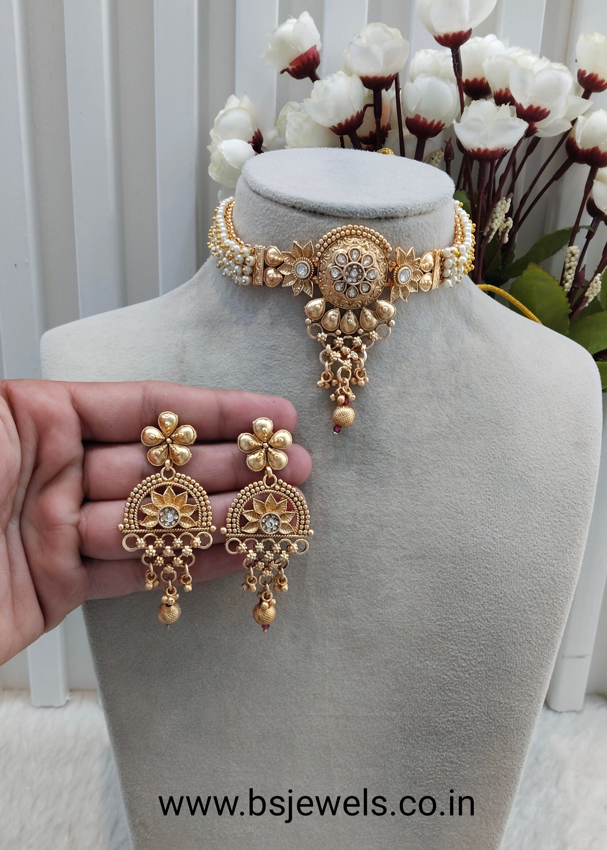 * Gold Finish Polki Choker Set with earrings as shown in the pic.