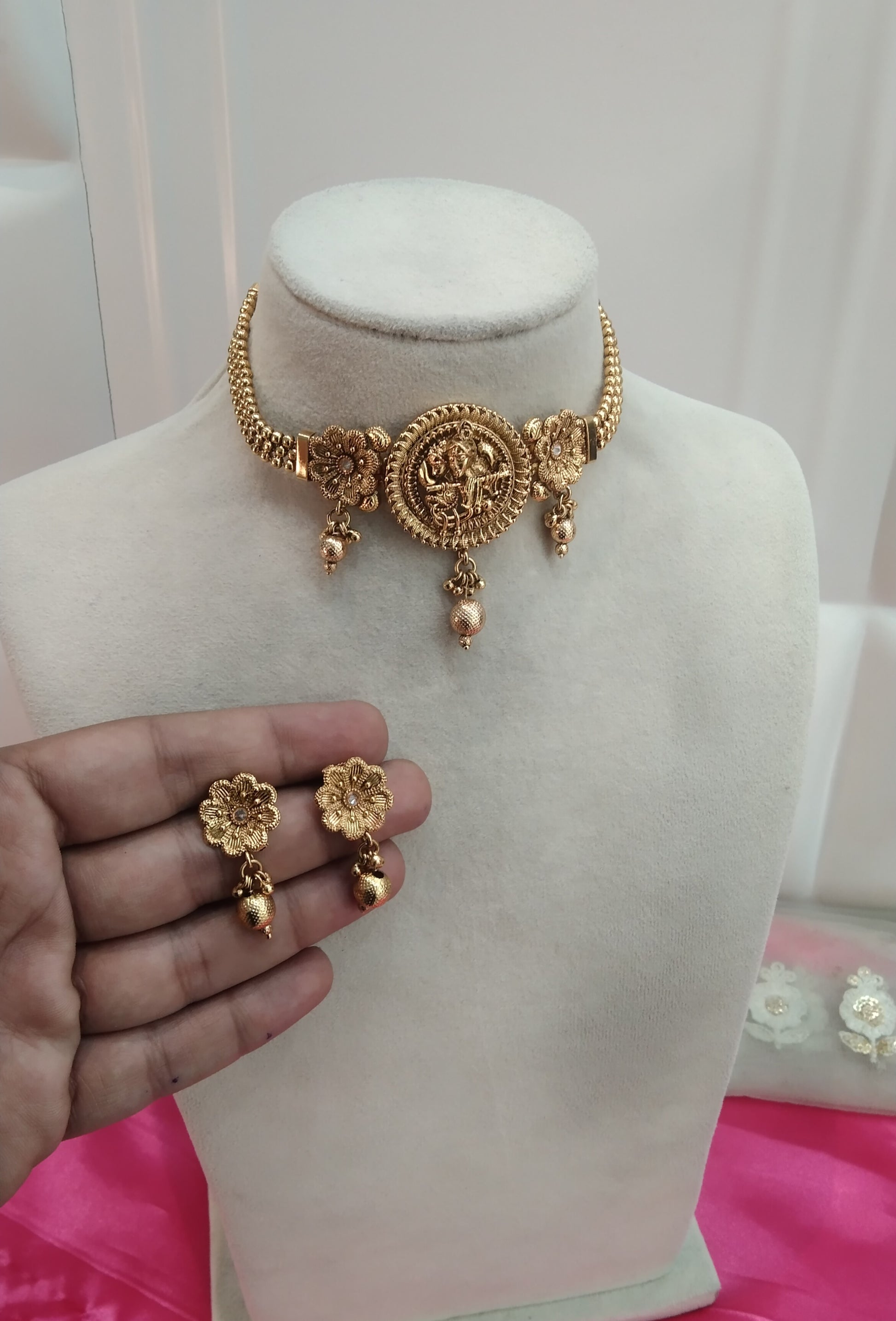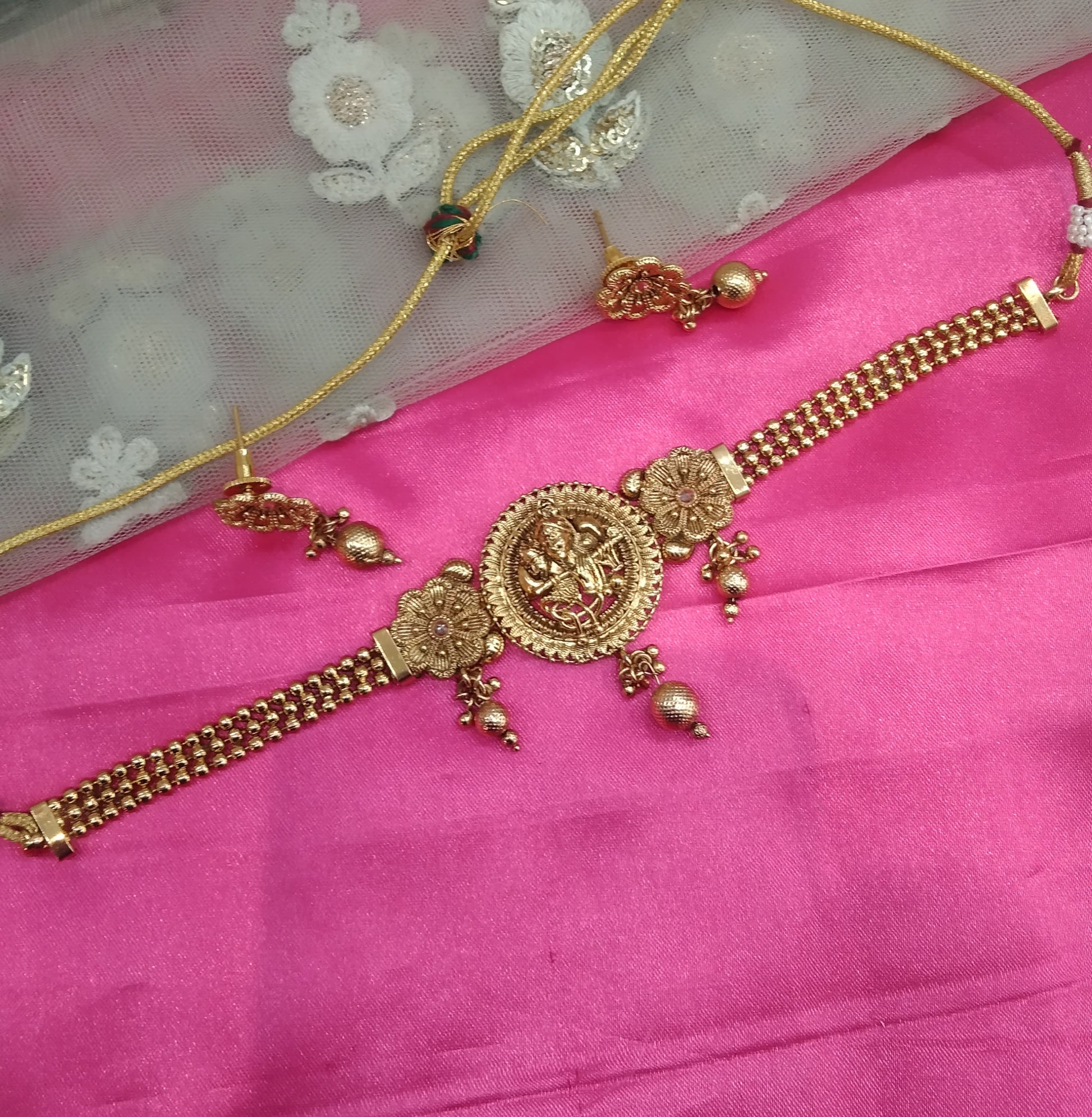 * Gold Finish Polki Choker Set with earrings as shown in the pic.