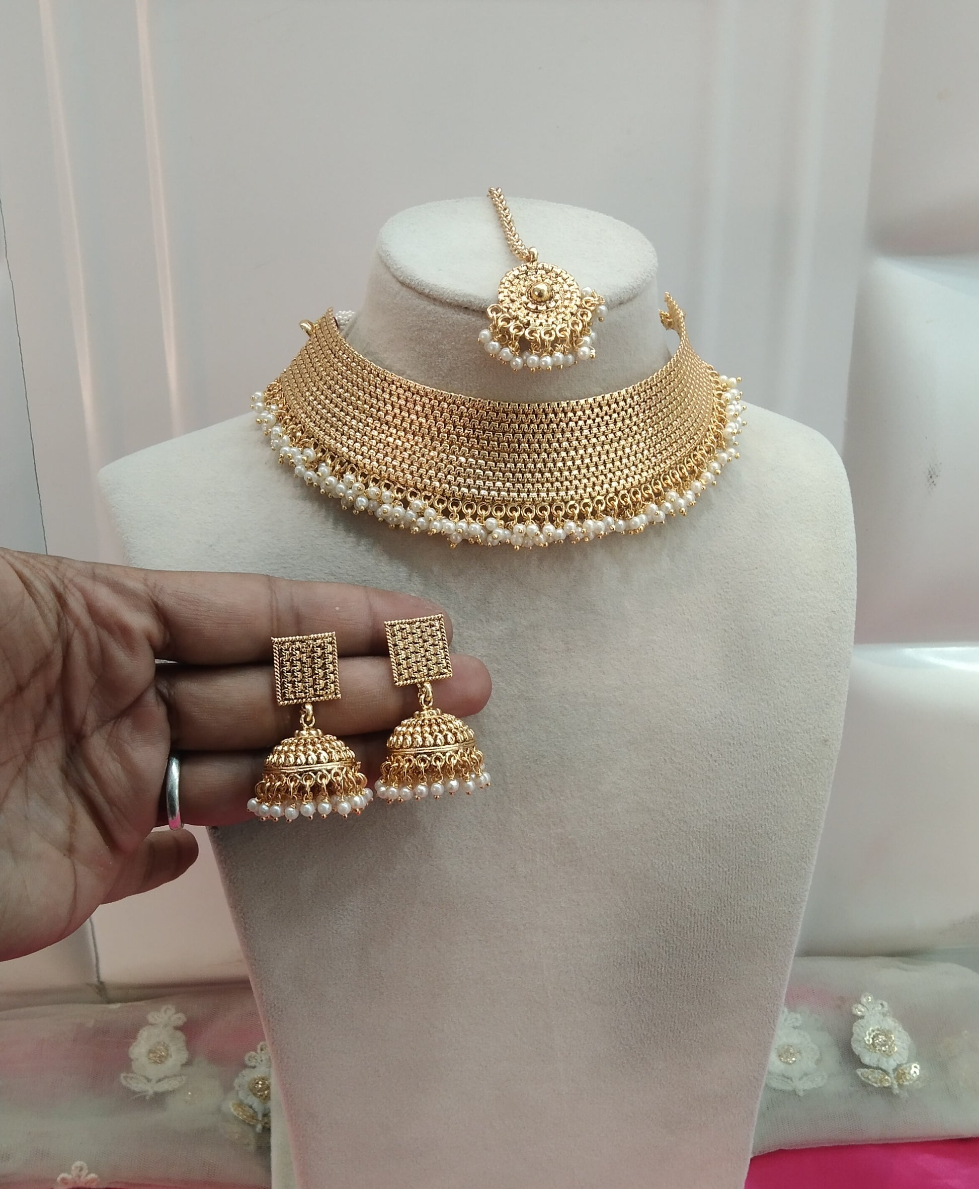 * Gold Finish Polki Choker Set with earrings as shown in the pic.
