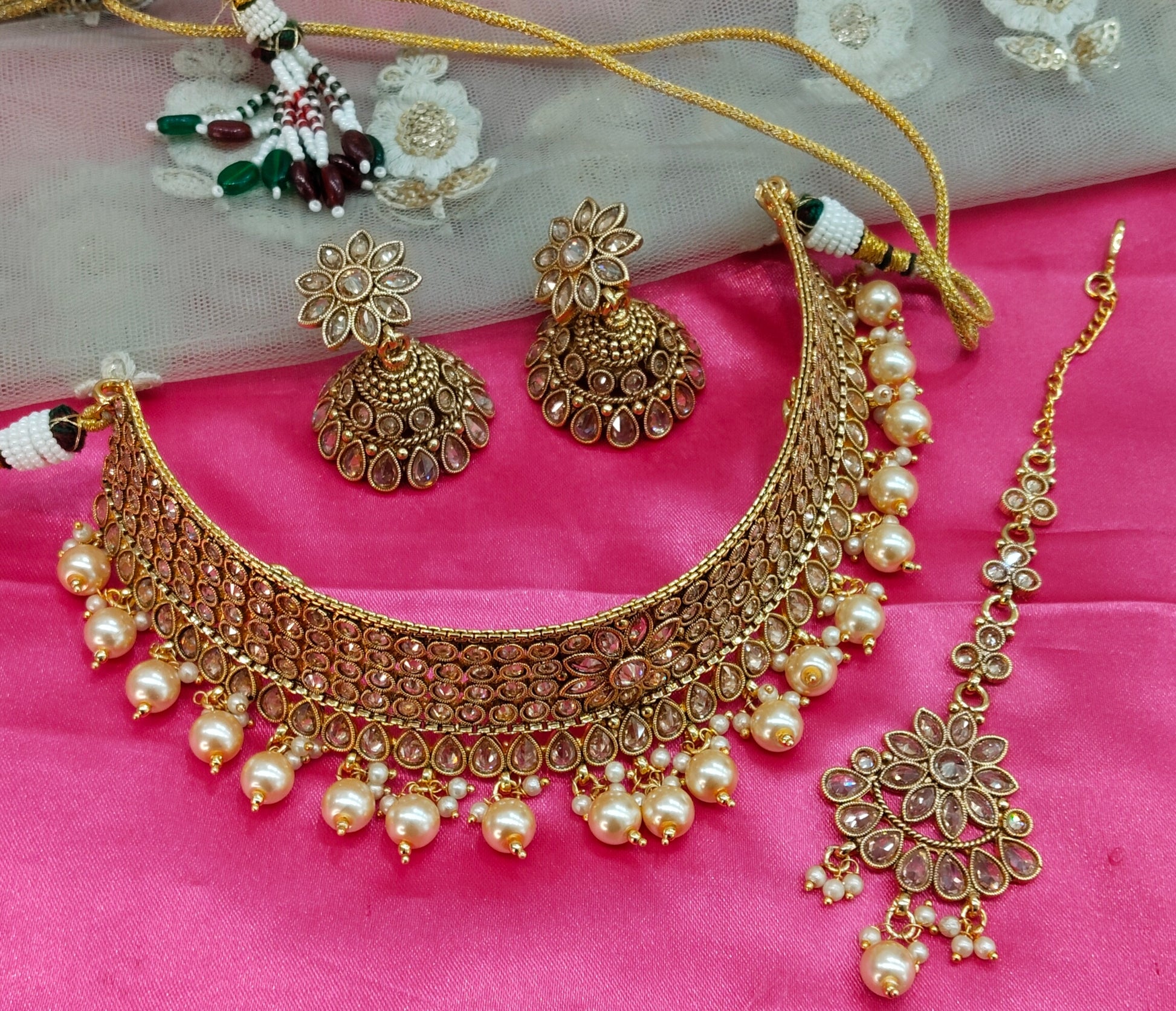 * Gold Finish Polki Choker Set with earrings as shown in the pic.