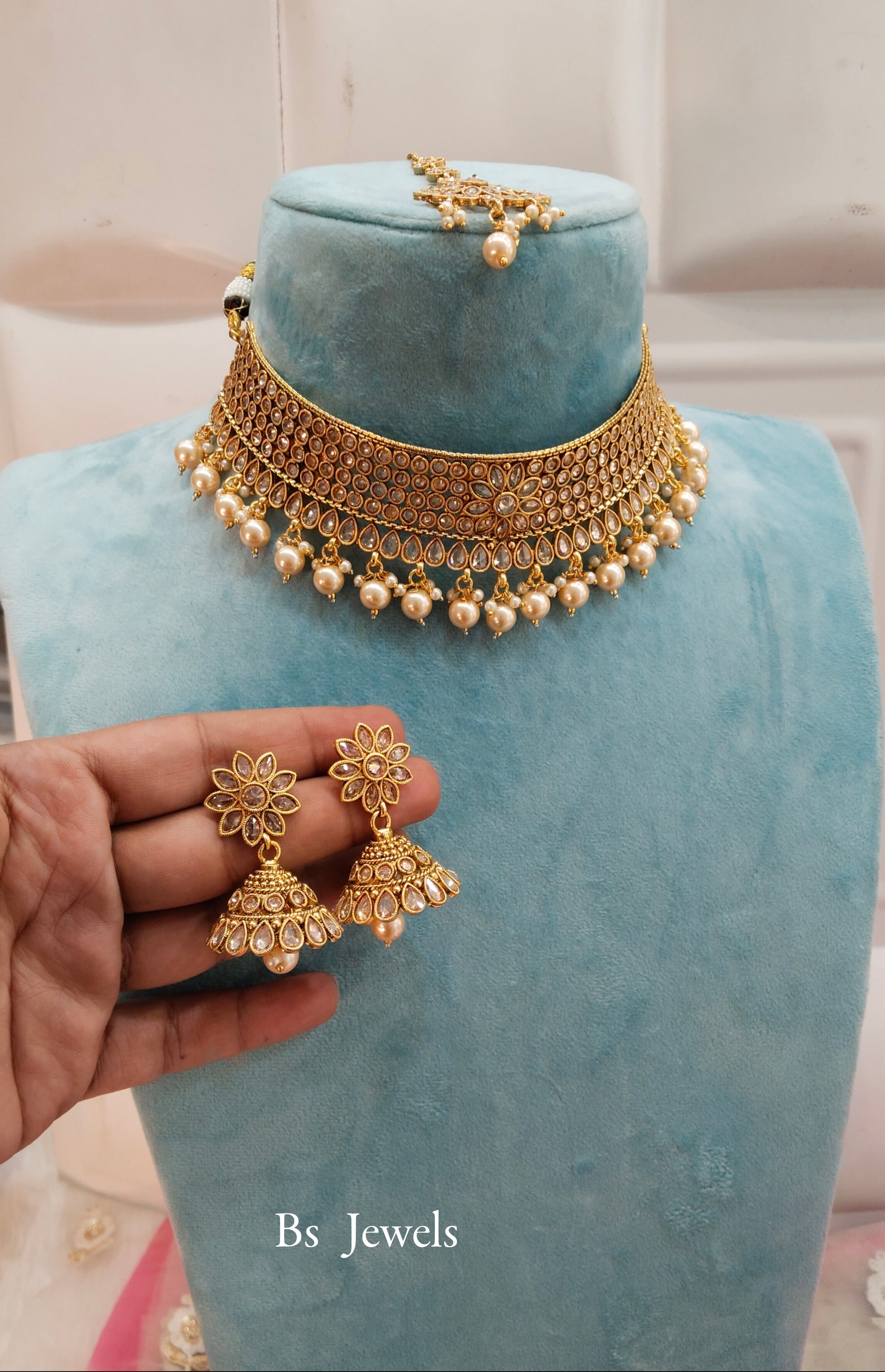 Gold Polki Jhumka Choker Jewellery Beams Set